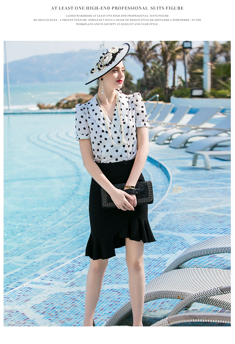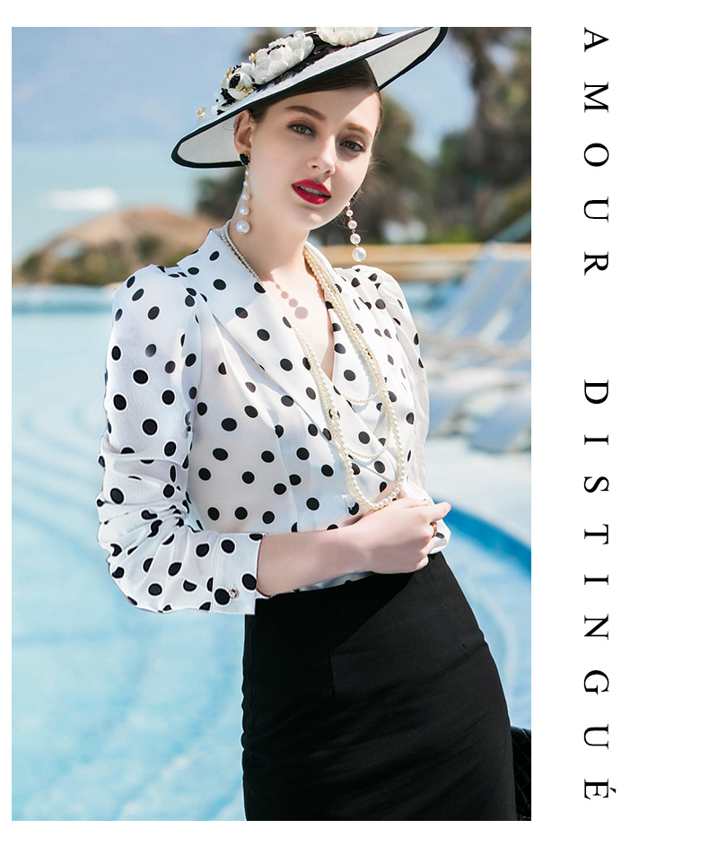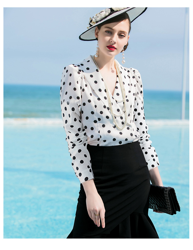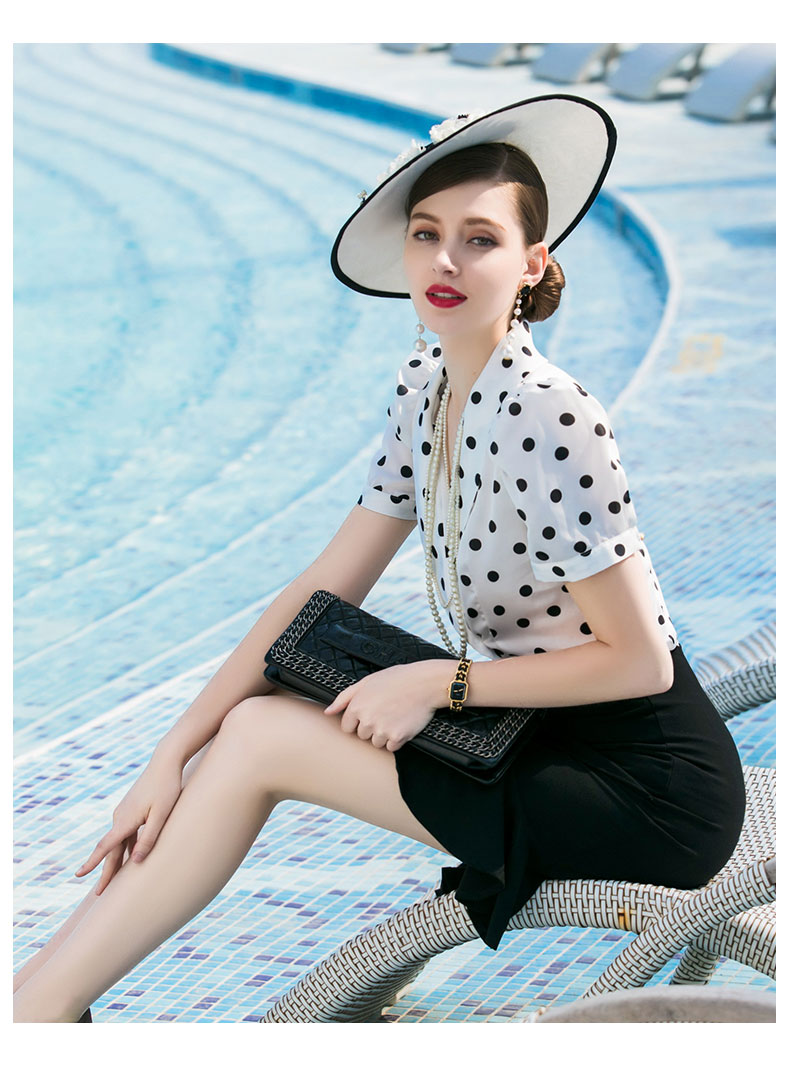 秒杀89元!AD欧美风短袖V领衬衫ol复古时尚波点黑白衬衣雪纺衫夏