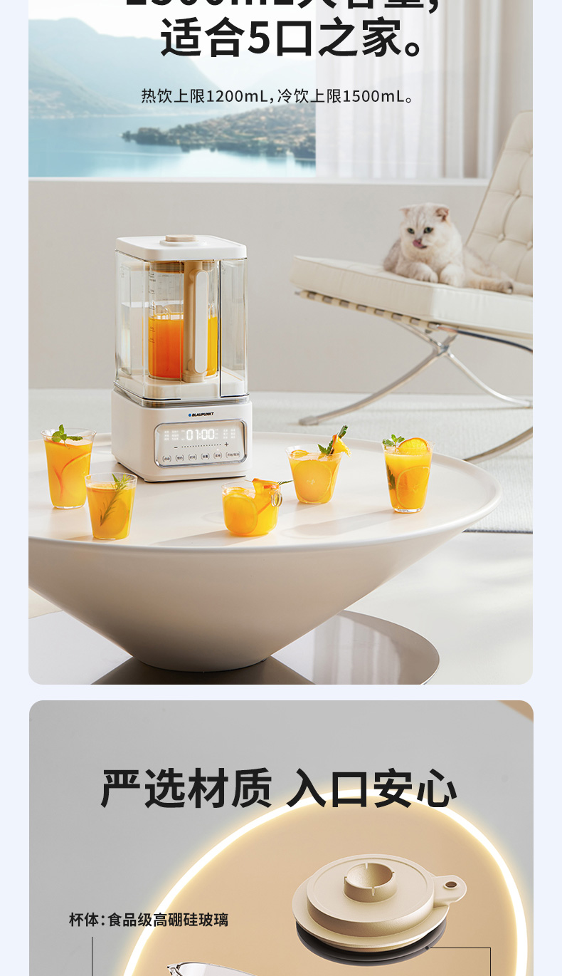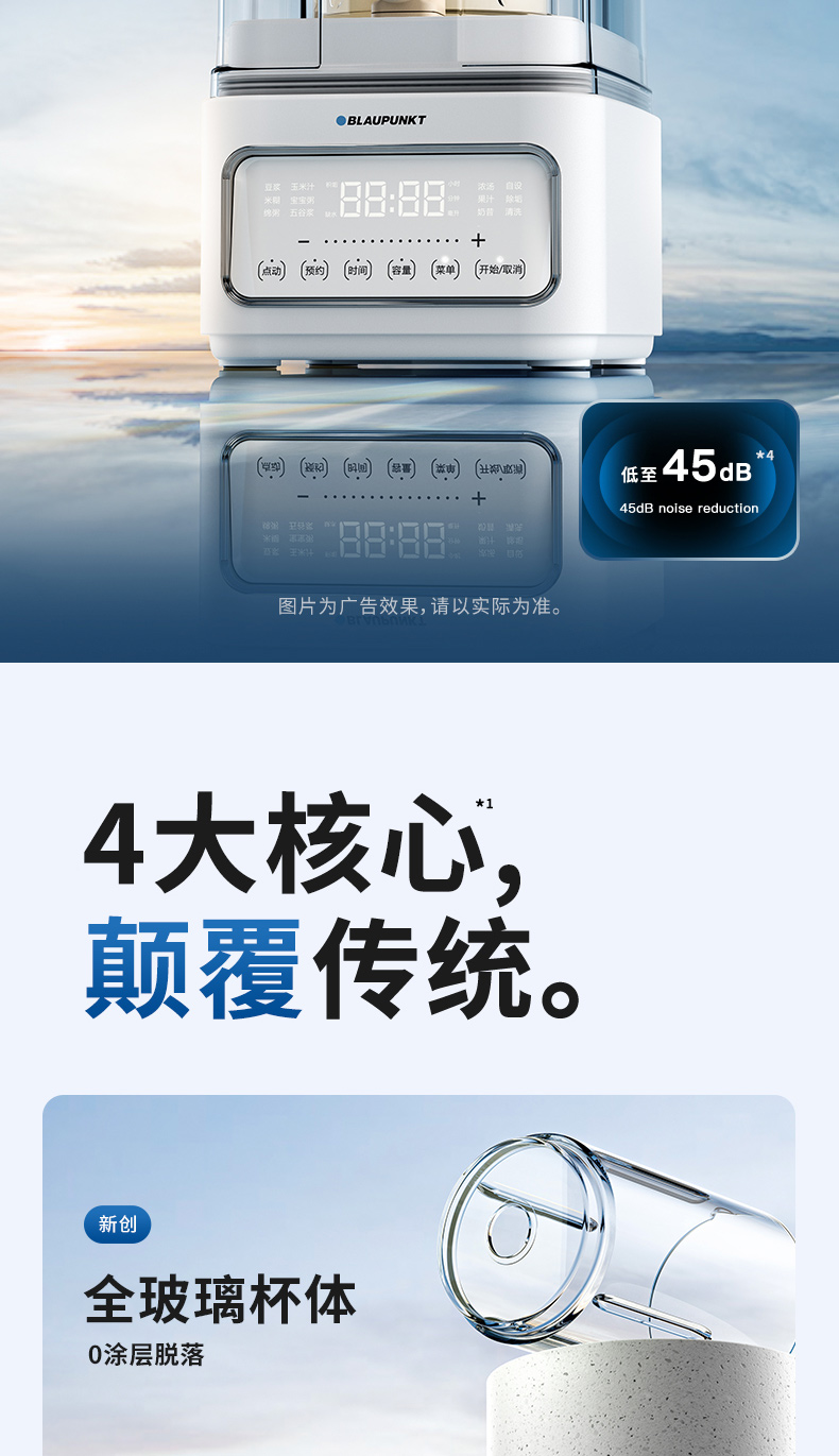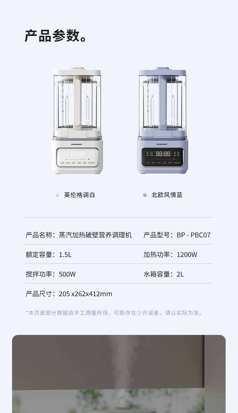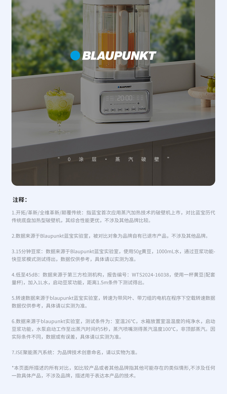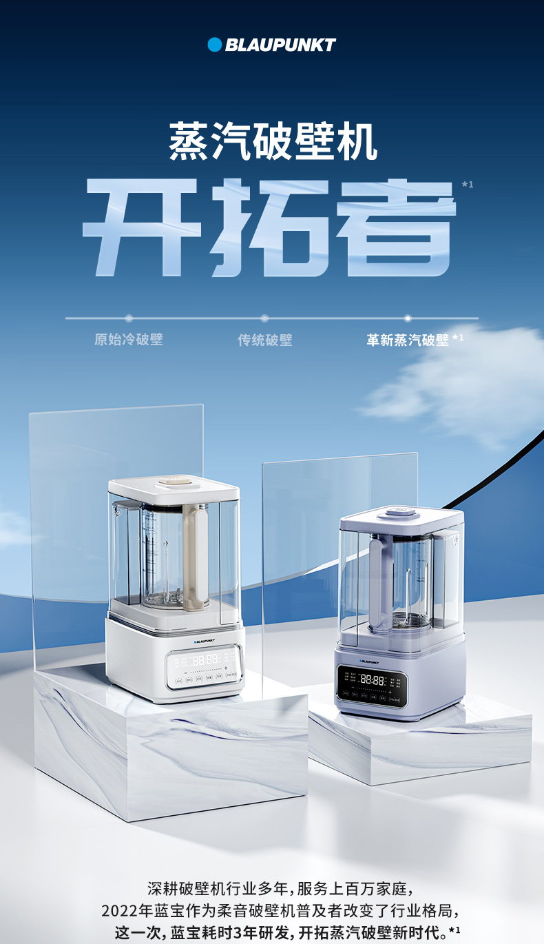 蓝宝0涂层柔音蒸汽破壁机家用全自动料理BP-PBC07