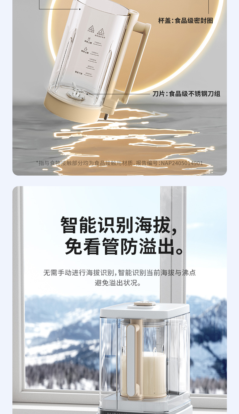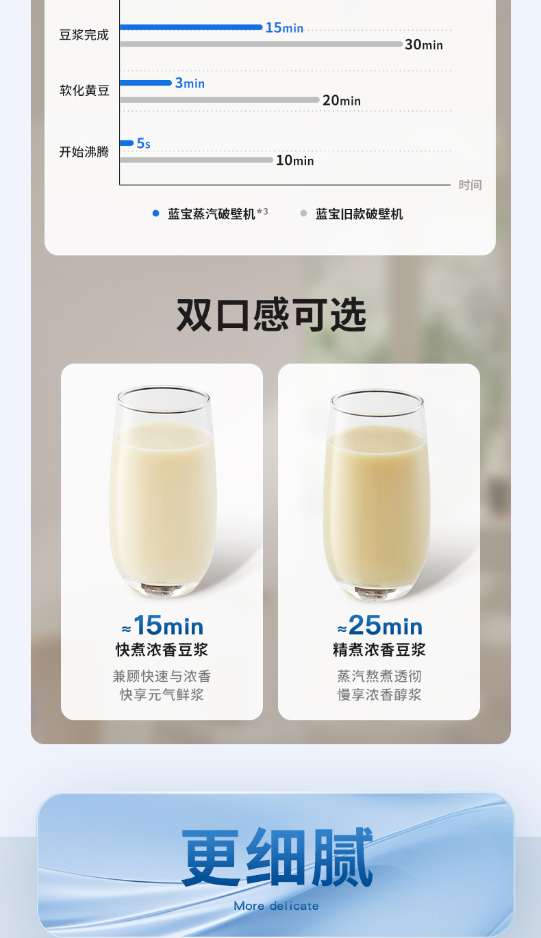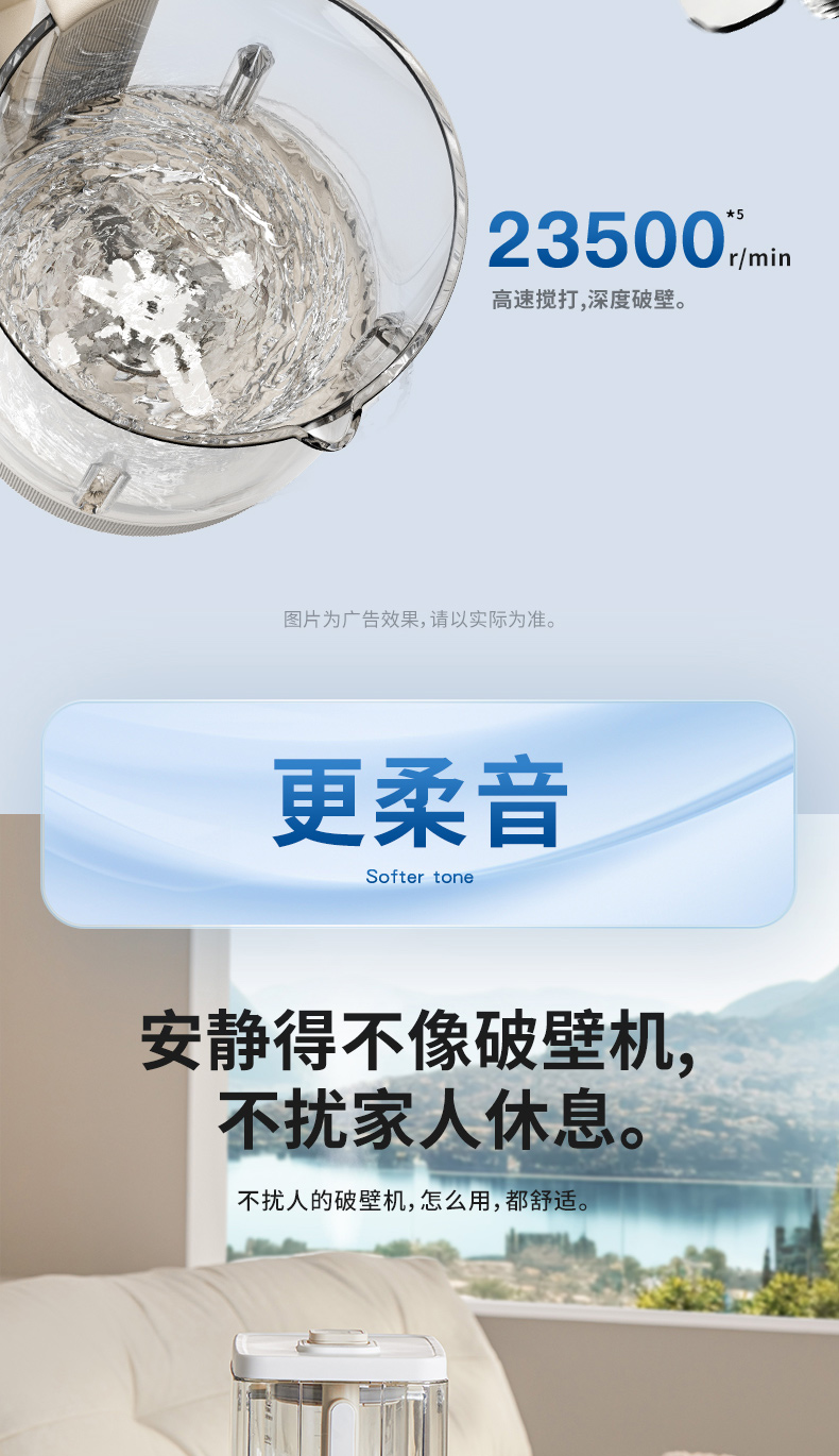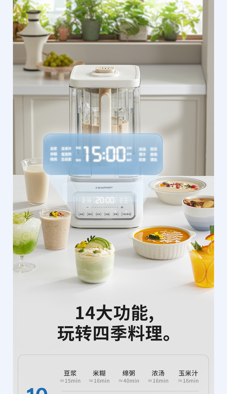 蓝宝0涂层柔音蒸汽破壁机家用全自动料理BP-PBC07