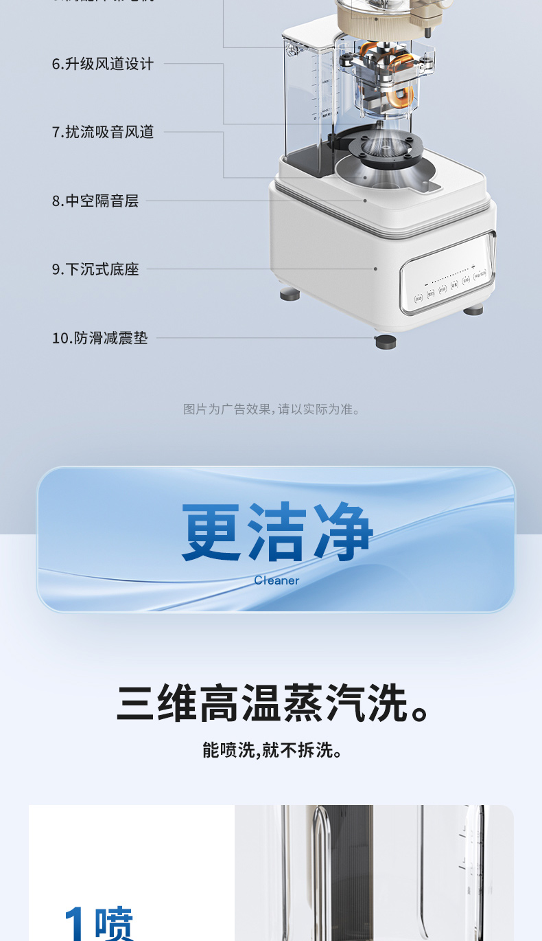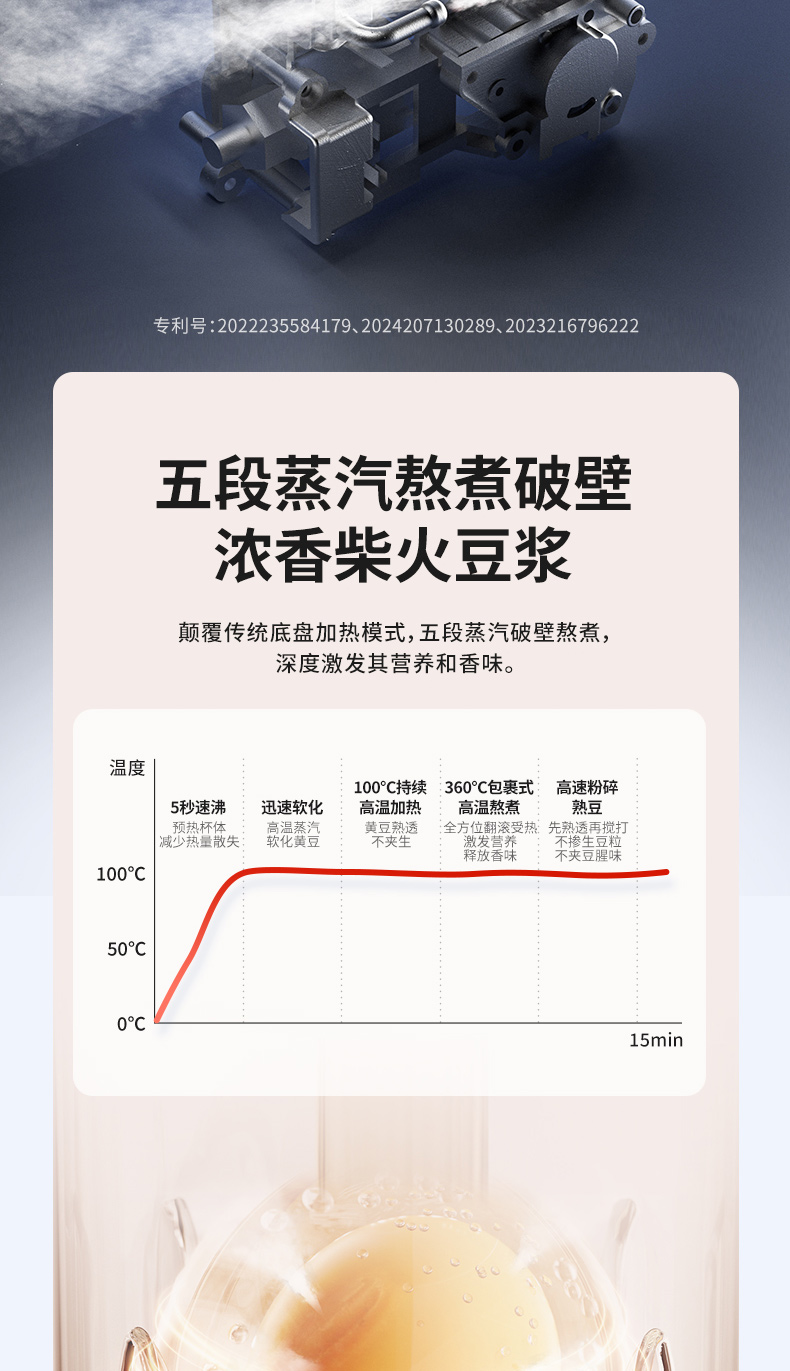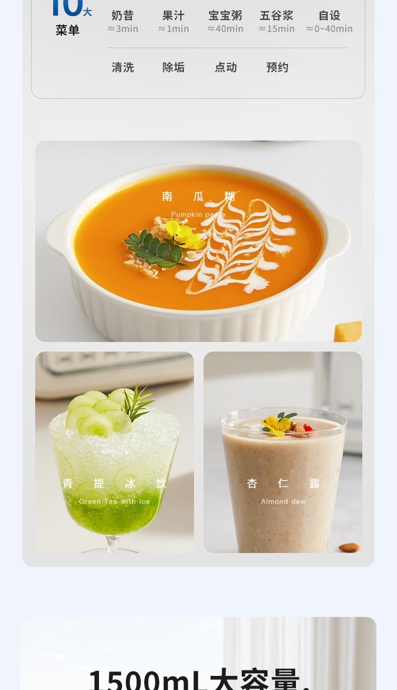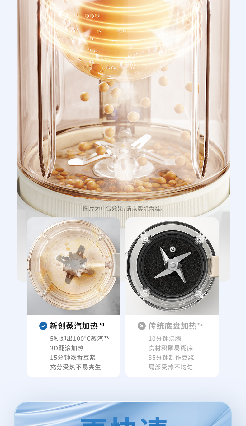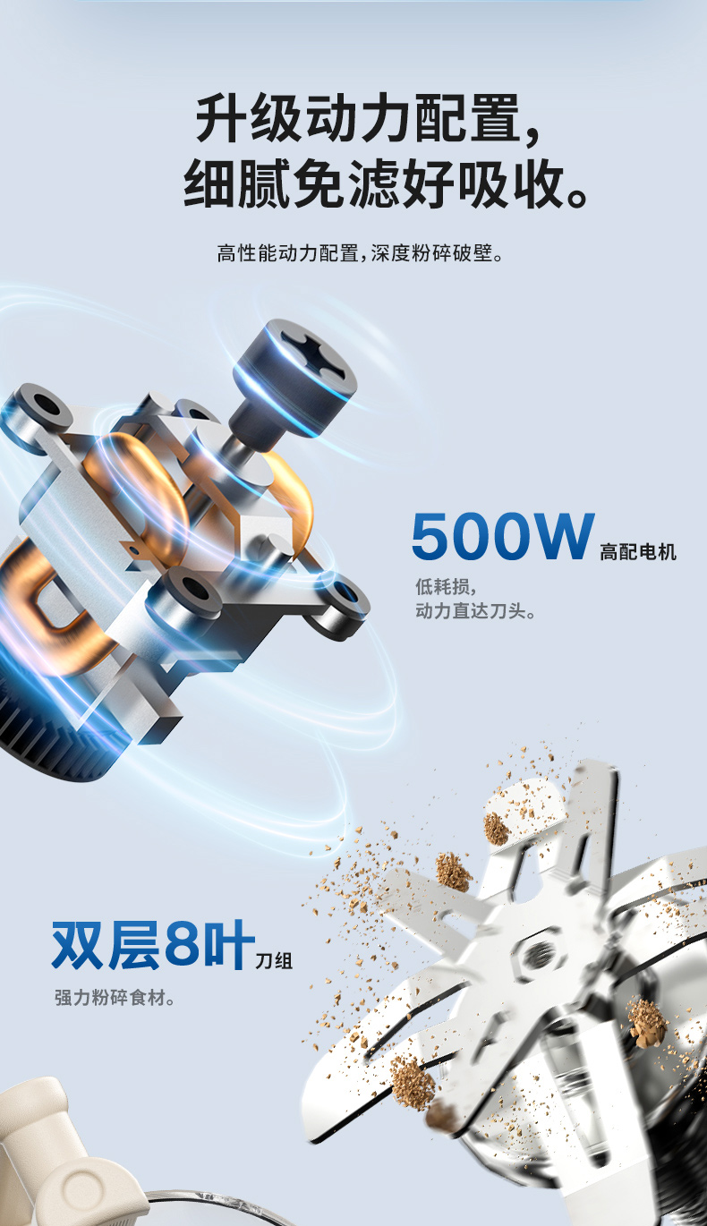 蓝宝0涂层柔音蒸汽破壁机家用全自动料理BP-PBC07