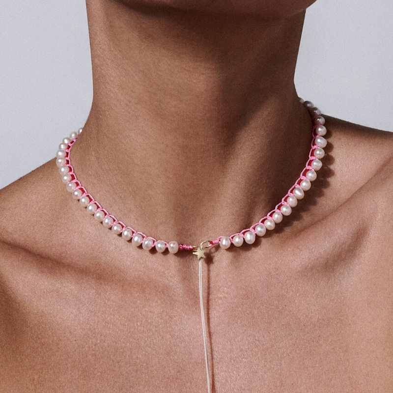 订购10周到|CHRISTIANA KAFA-pulse-粉线 星星 白色淡水珍珠 项链[希腊设计师]