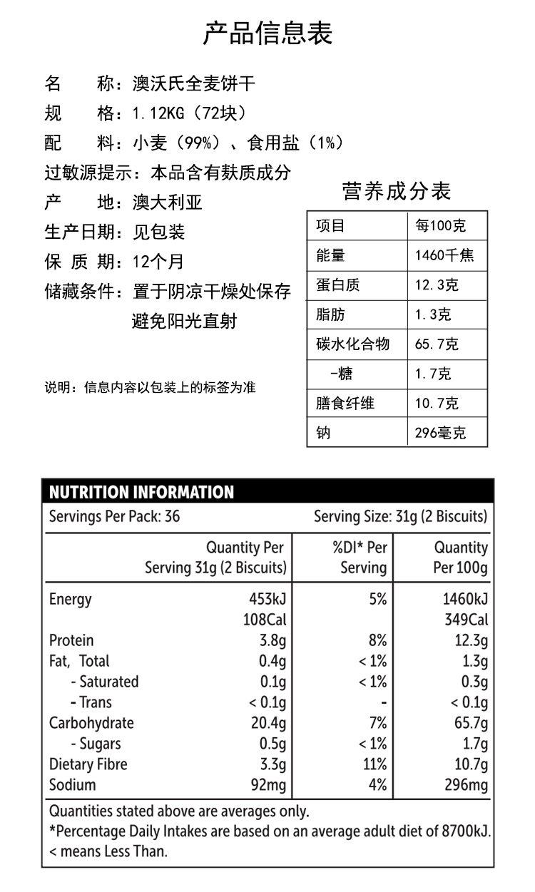 澳洲进口Woolworths澳沃氏即食谷物全麦麦片1.12kg 2023.9–2024.9