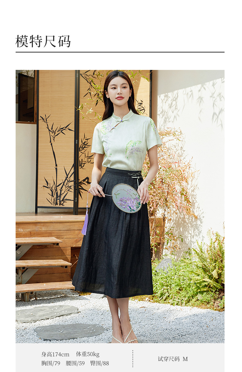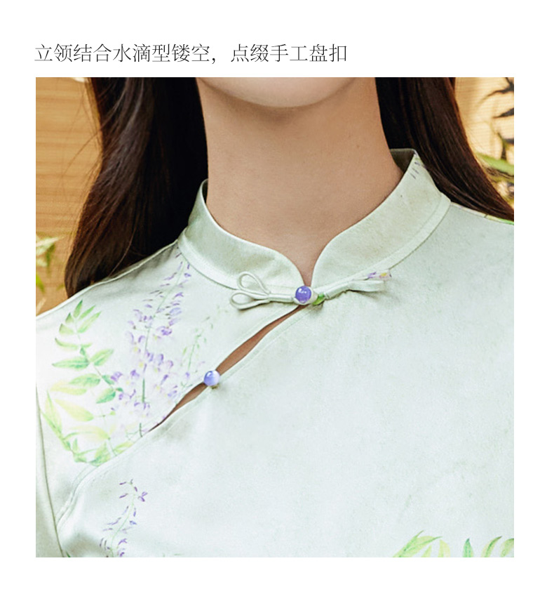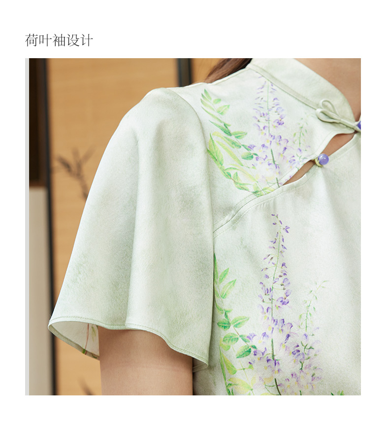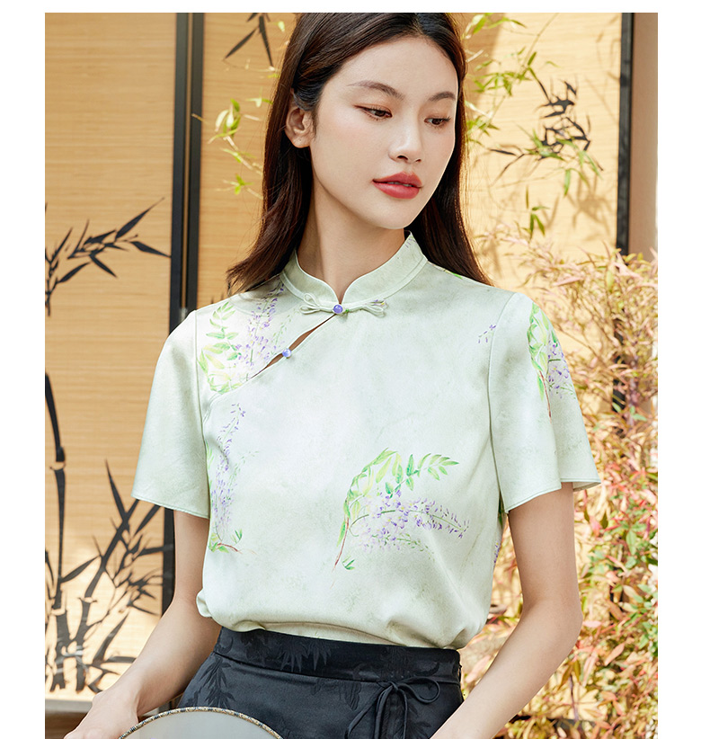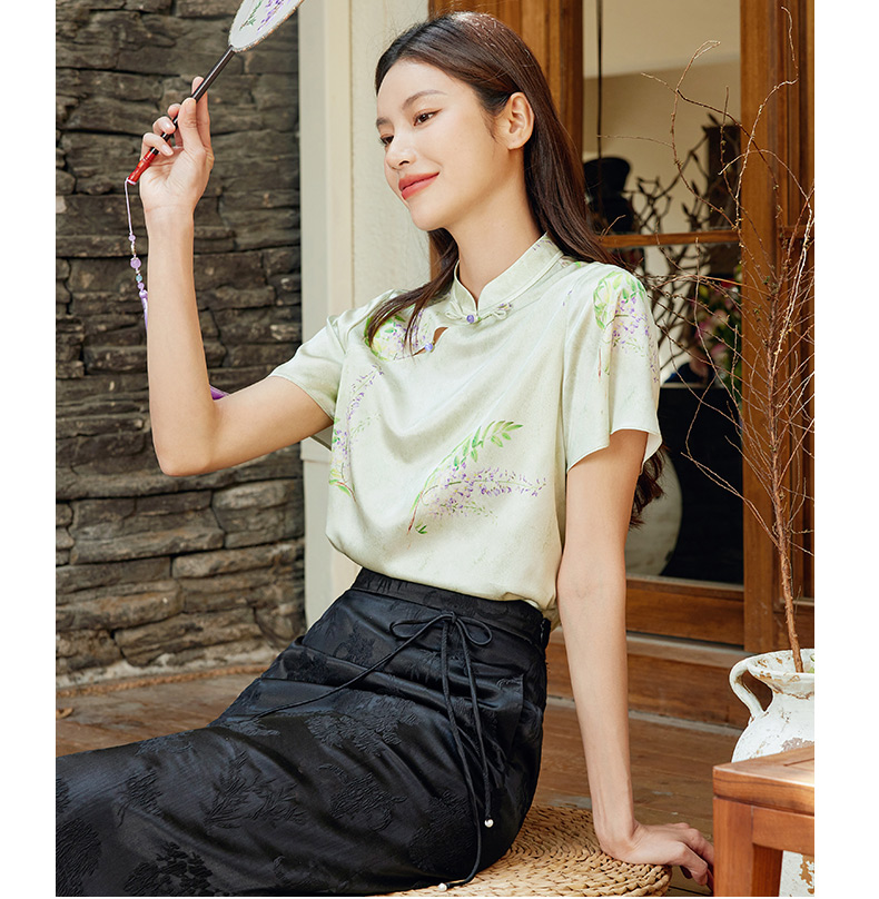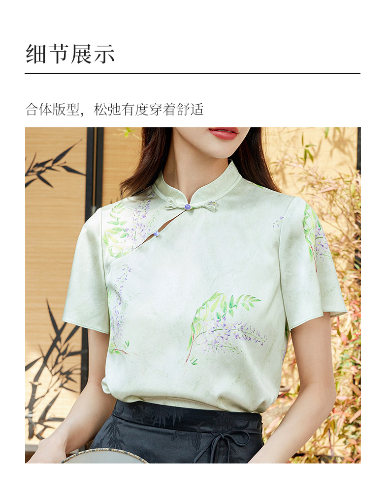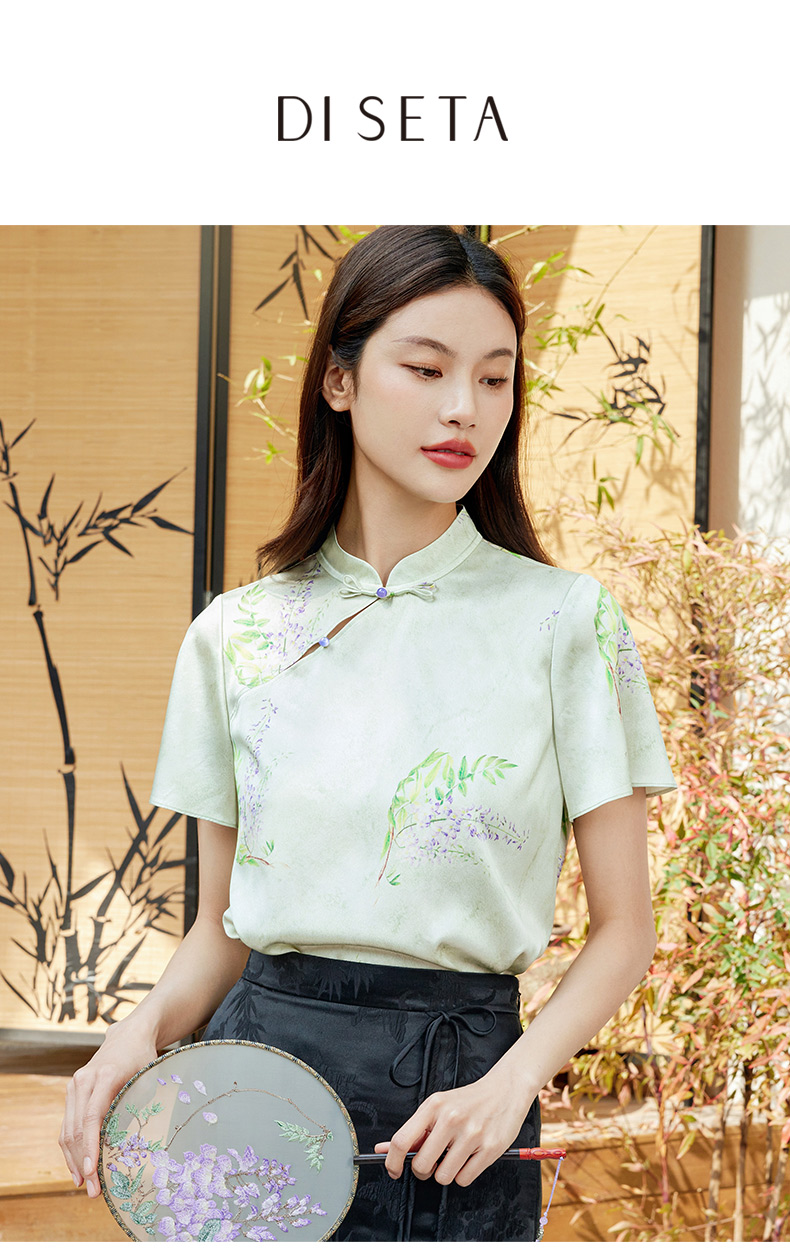 玳莎中式立领真丝小衫女2024夏季新款盘扣设计感小众优雅印花上衣 EB31101