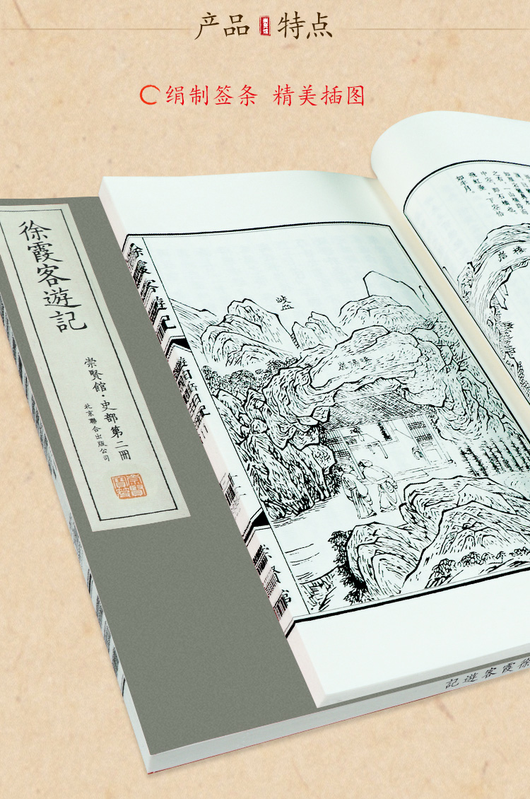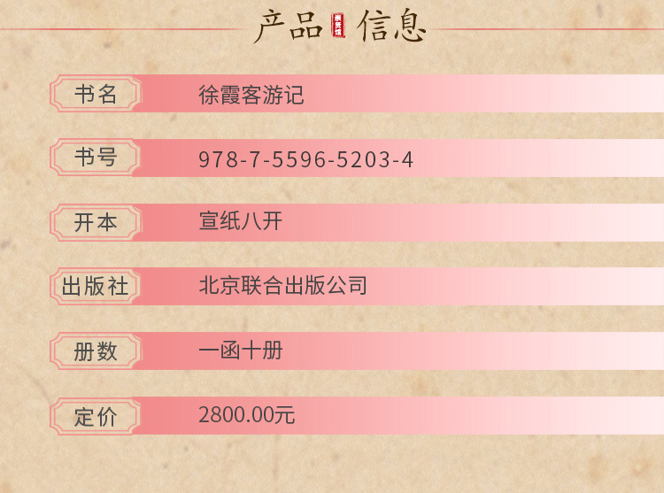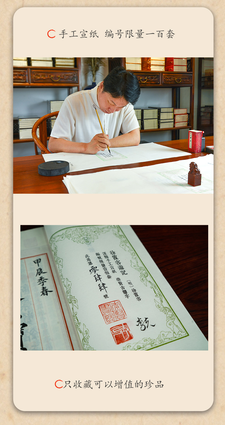【崇贤宝笈】徐霞客游记(一函十册)编号限量版 手工宣纸线装繁体 随书赠送游览图拉页