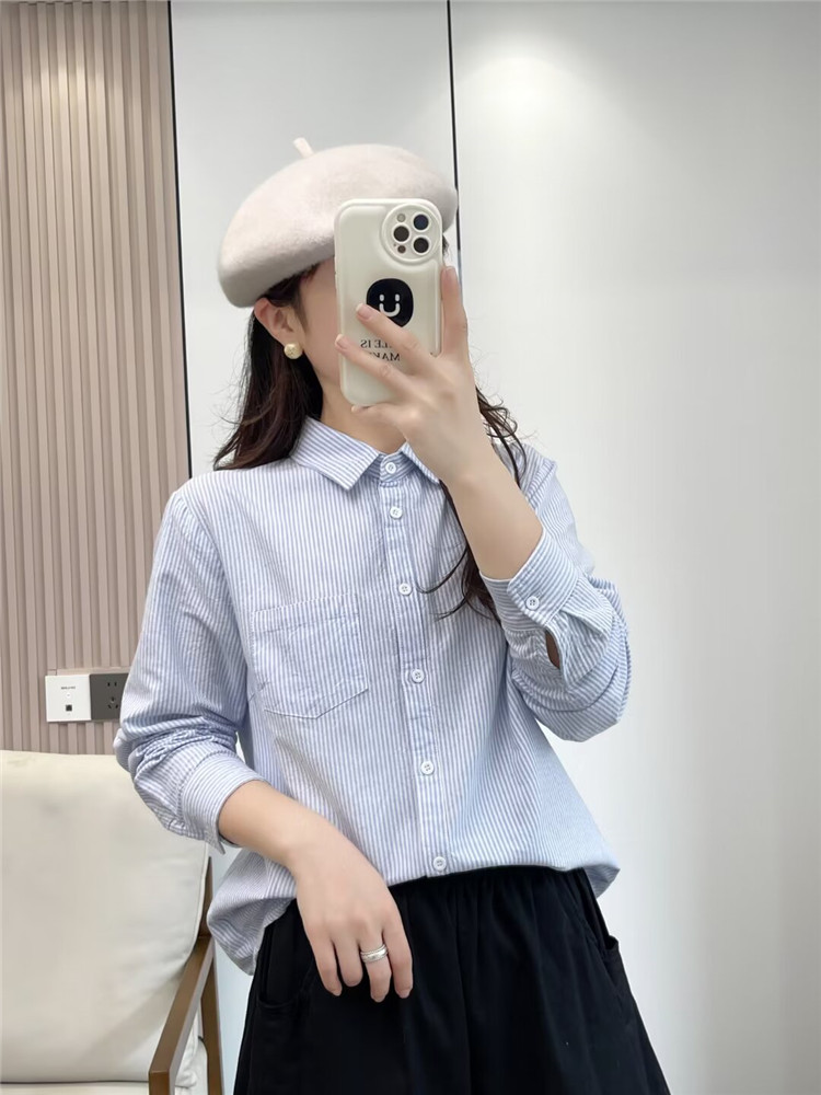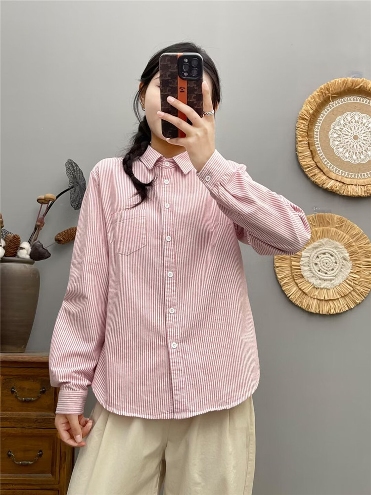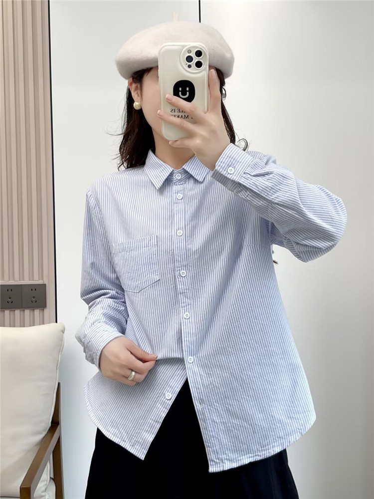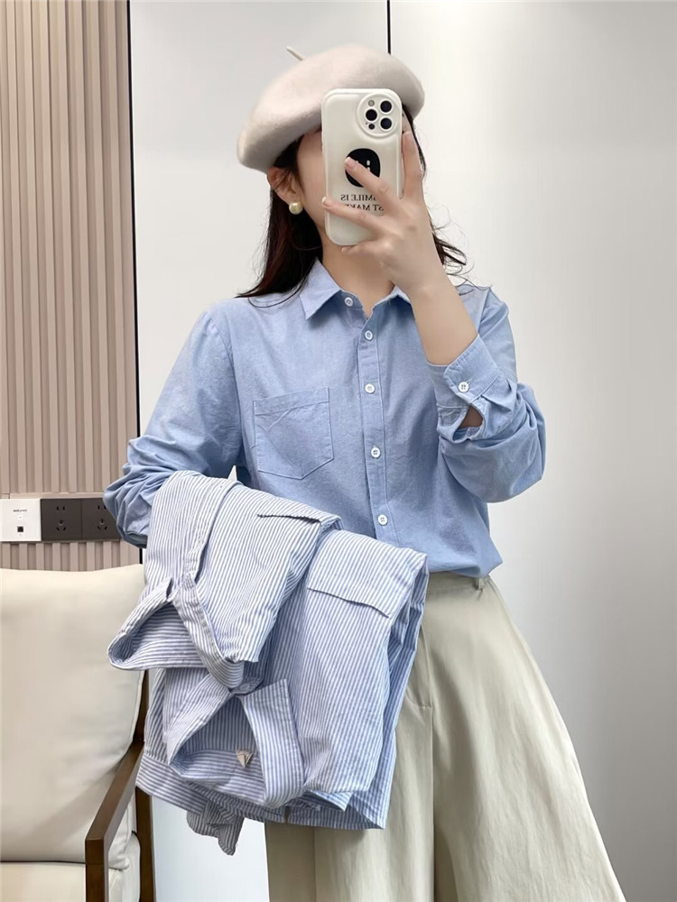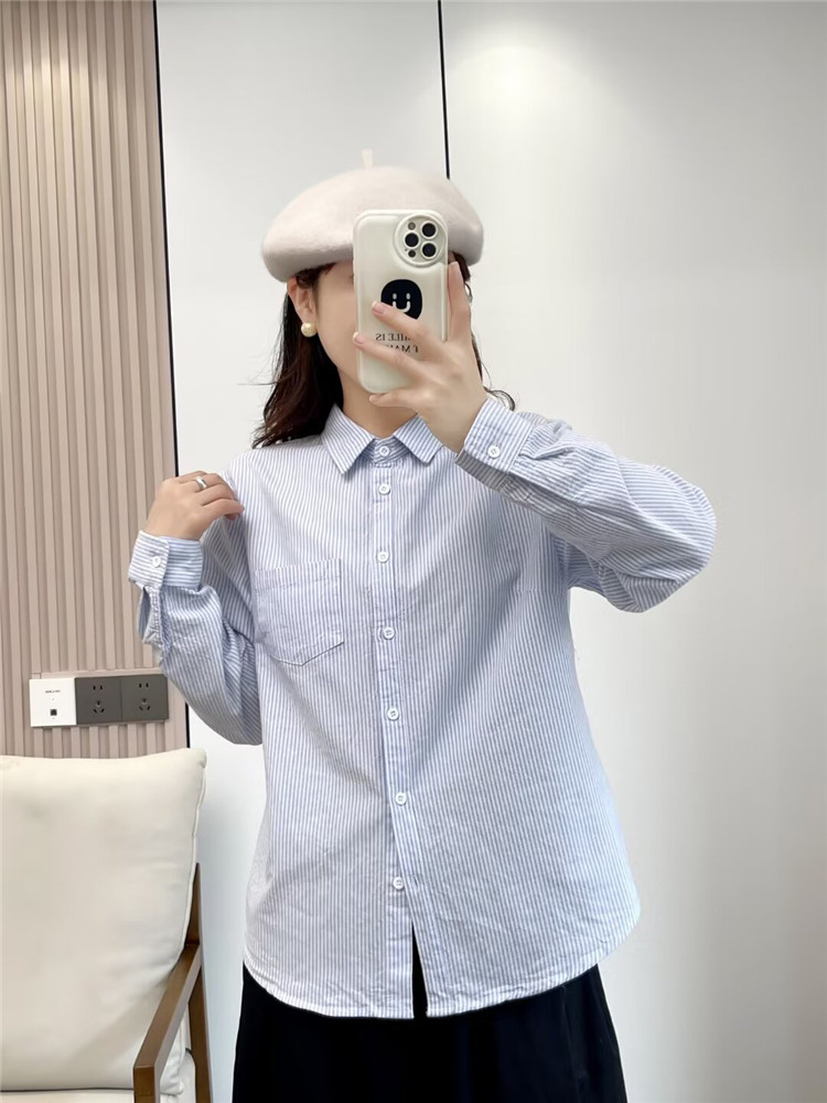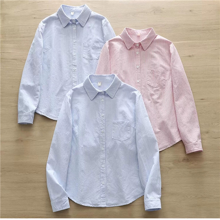 文艺小清新条纹牛津纺衬衫!2026正肩长袖纯棉衬衫女春秋宽松休闲衬衫!