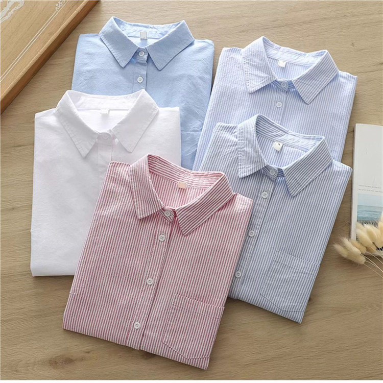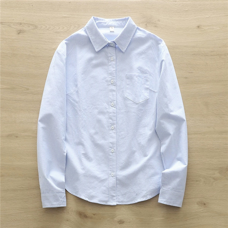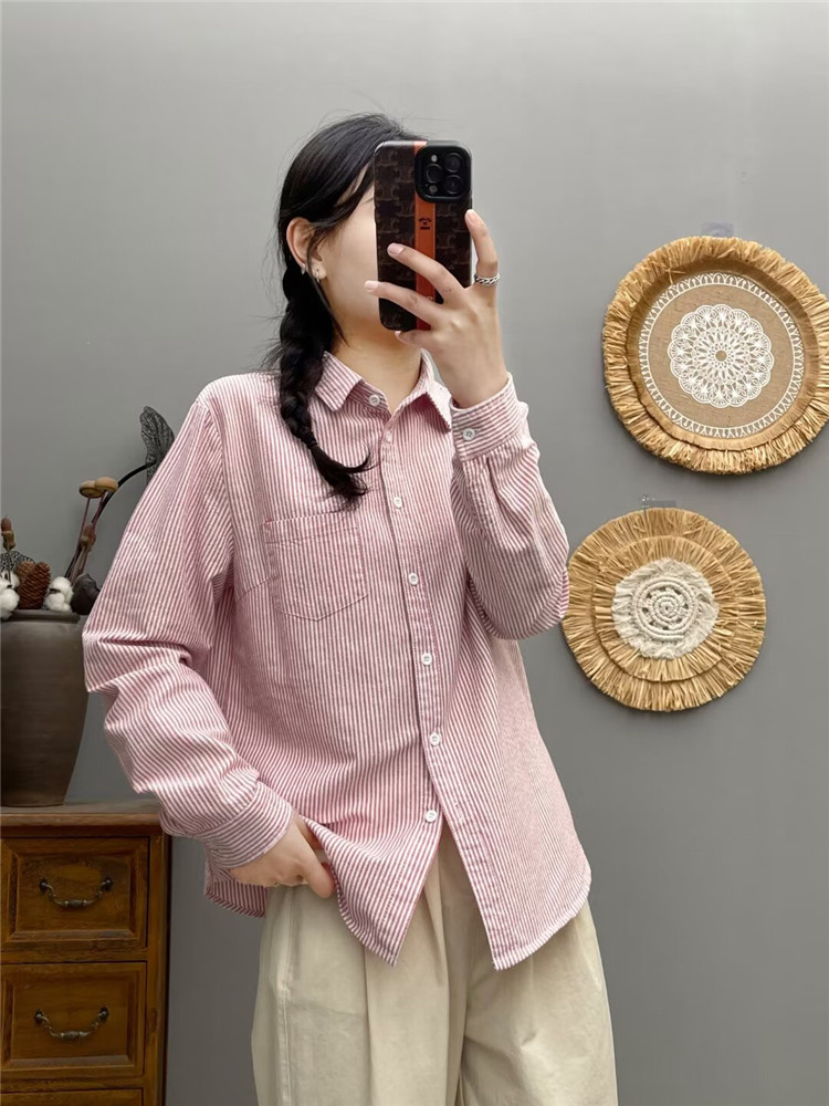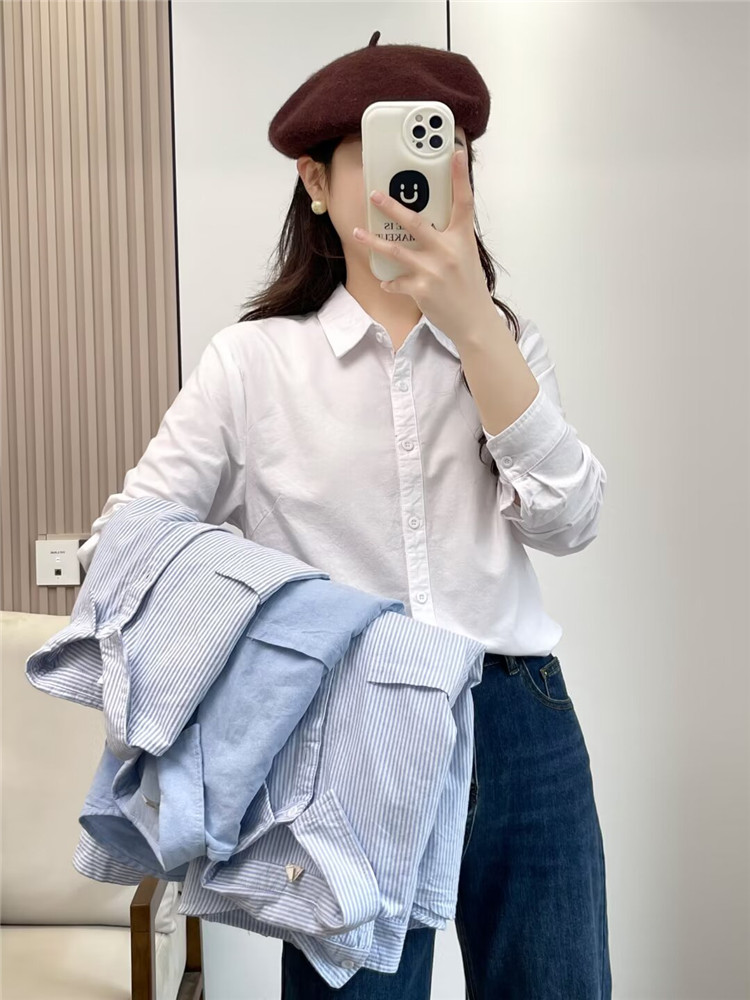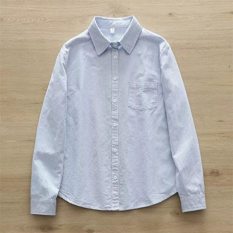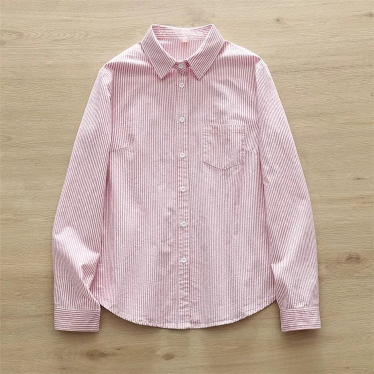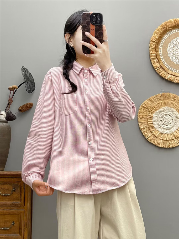文艺小清新条纹牛津纺衬衫!2026正肩长袖纯棉衬衫女春秋宽松休闲衬衫!