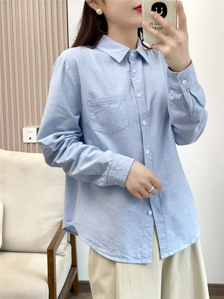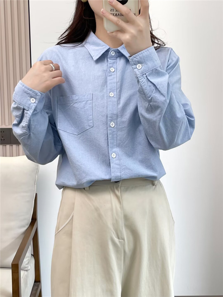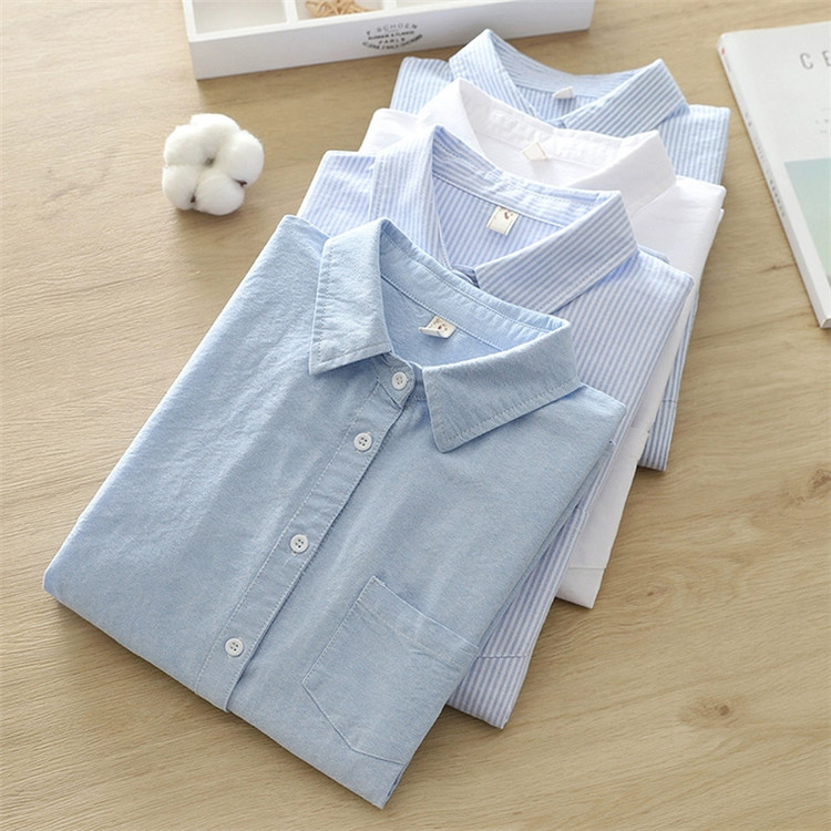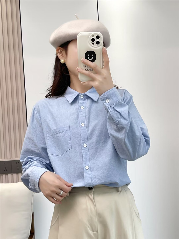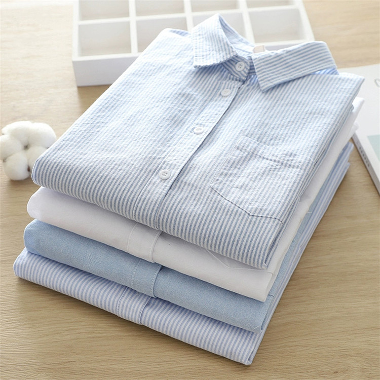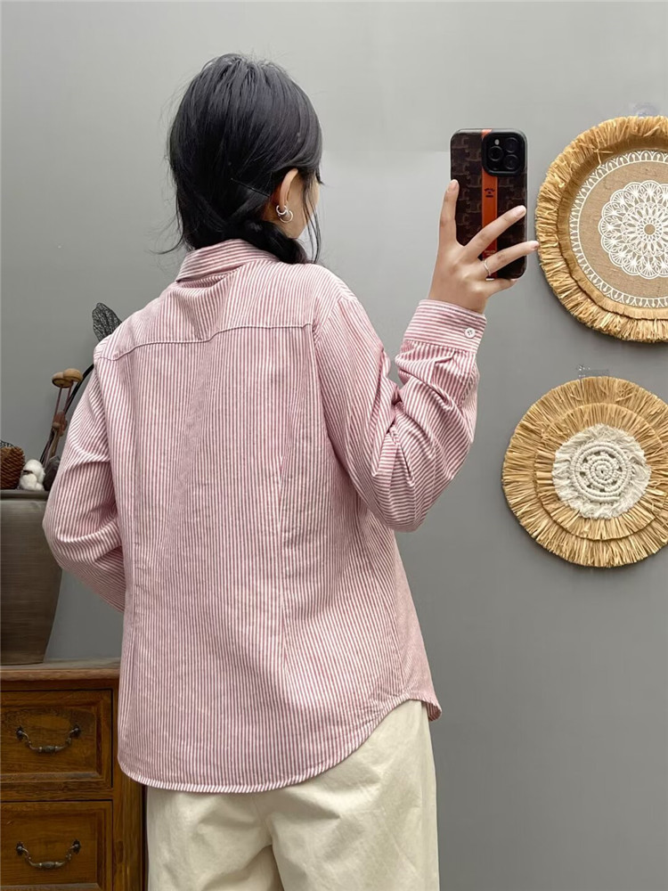 文艺小清新条纹牛津纺衬衫!2026正肩长袖纯棉衬衫女春秋宽松休闲衬衫!