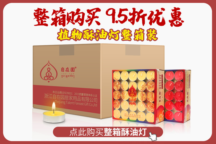 自在园酥油灯2/4/8/12小时100粒无烟长明蜡烛