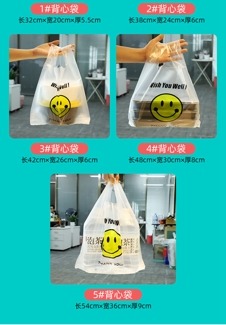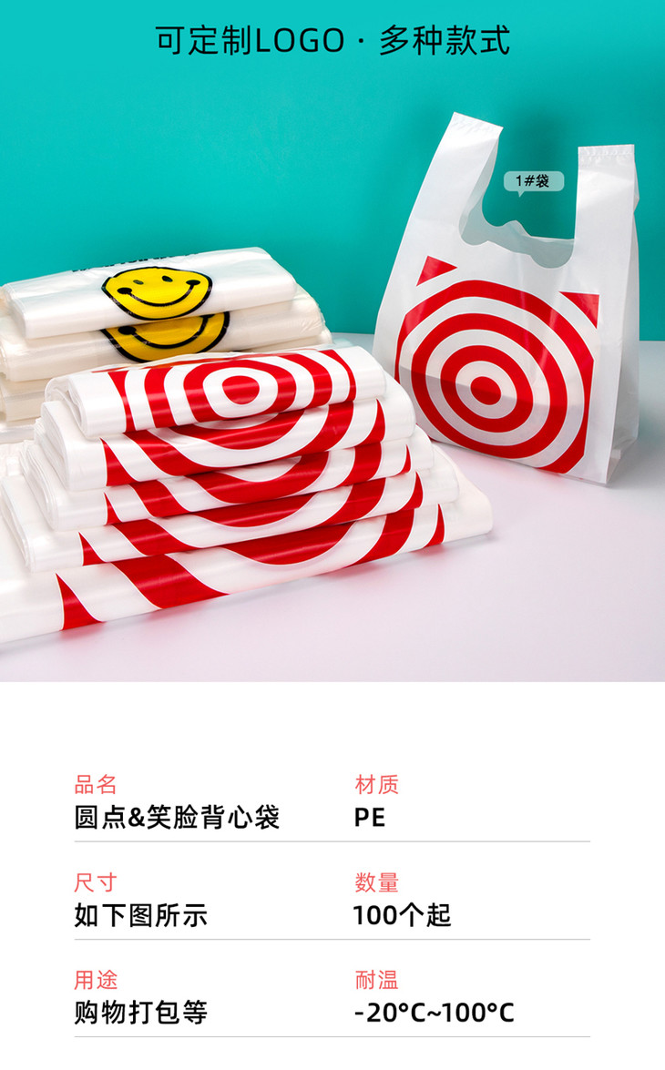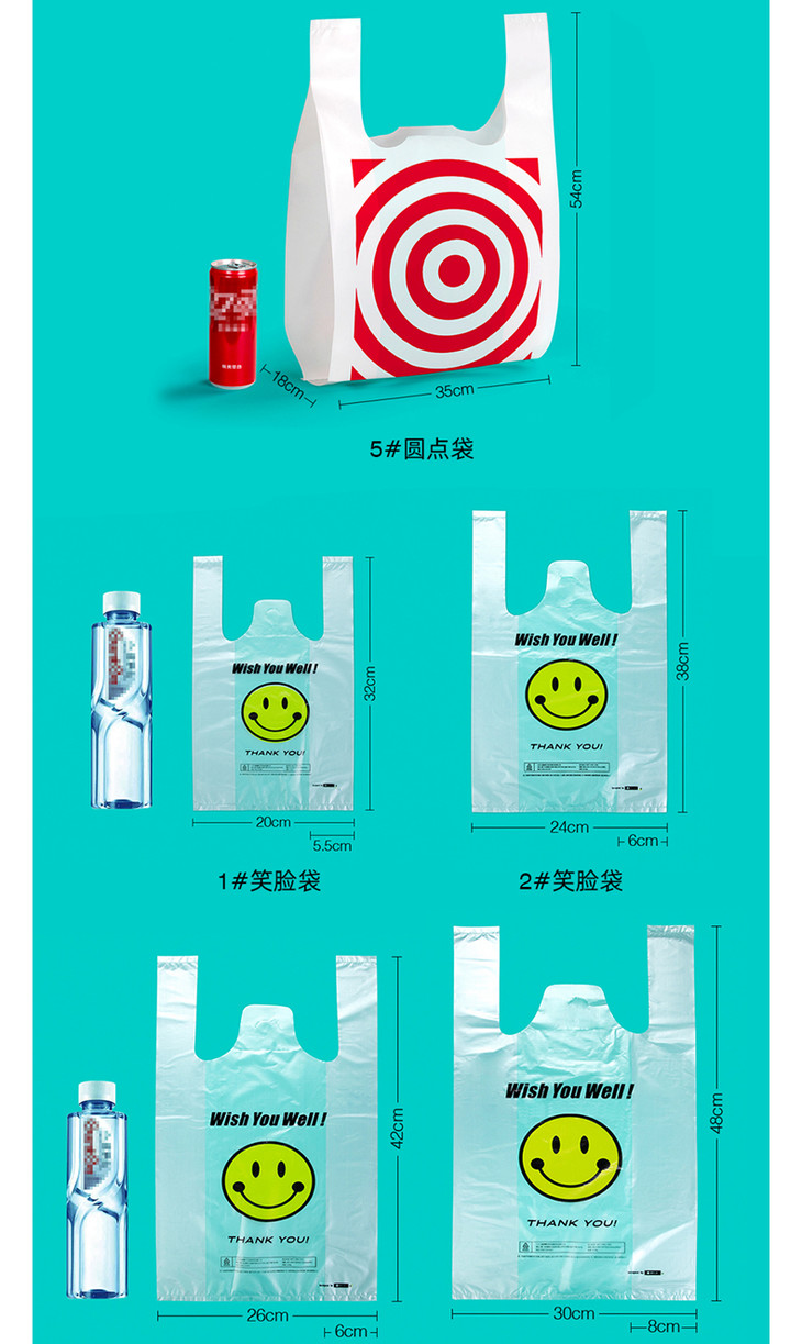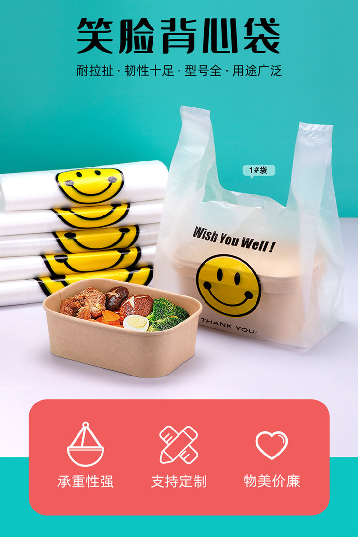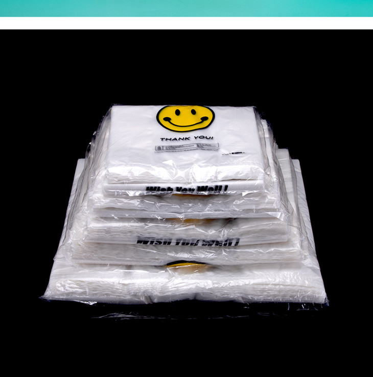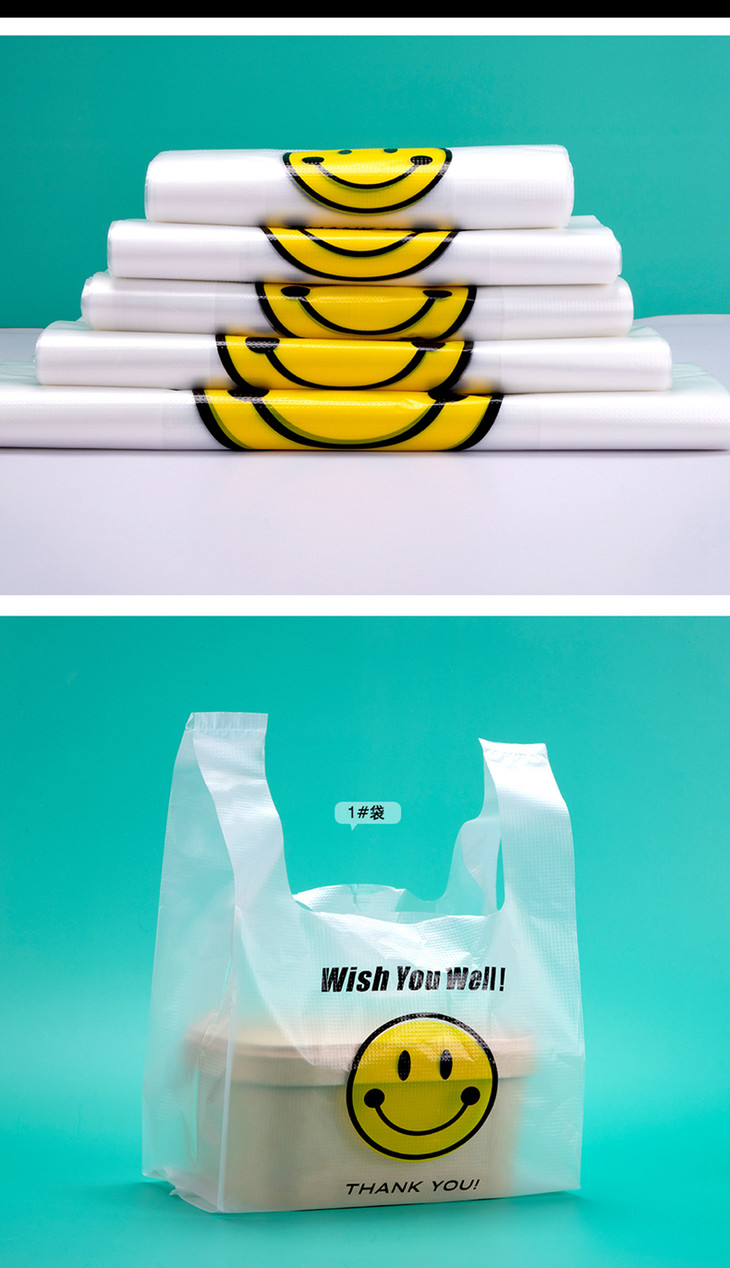 喇叭花笑脸塑料袋背心方便手提购物袋打包袋小号透明食品袋子定制