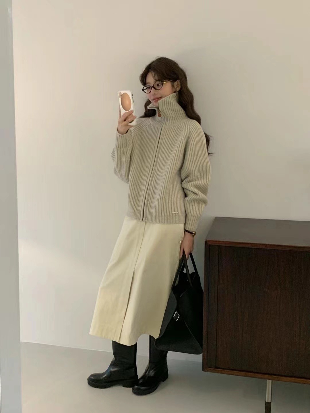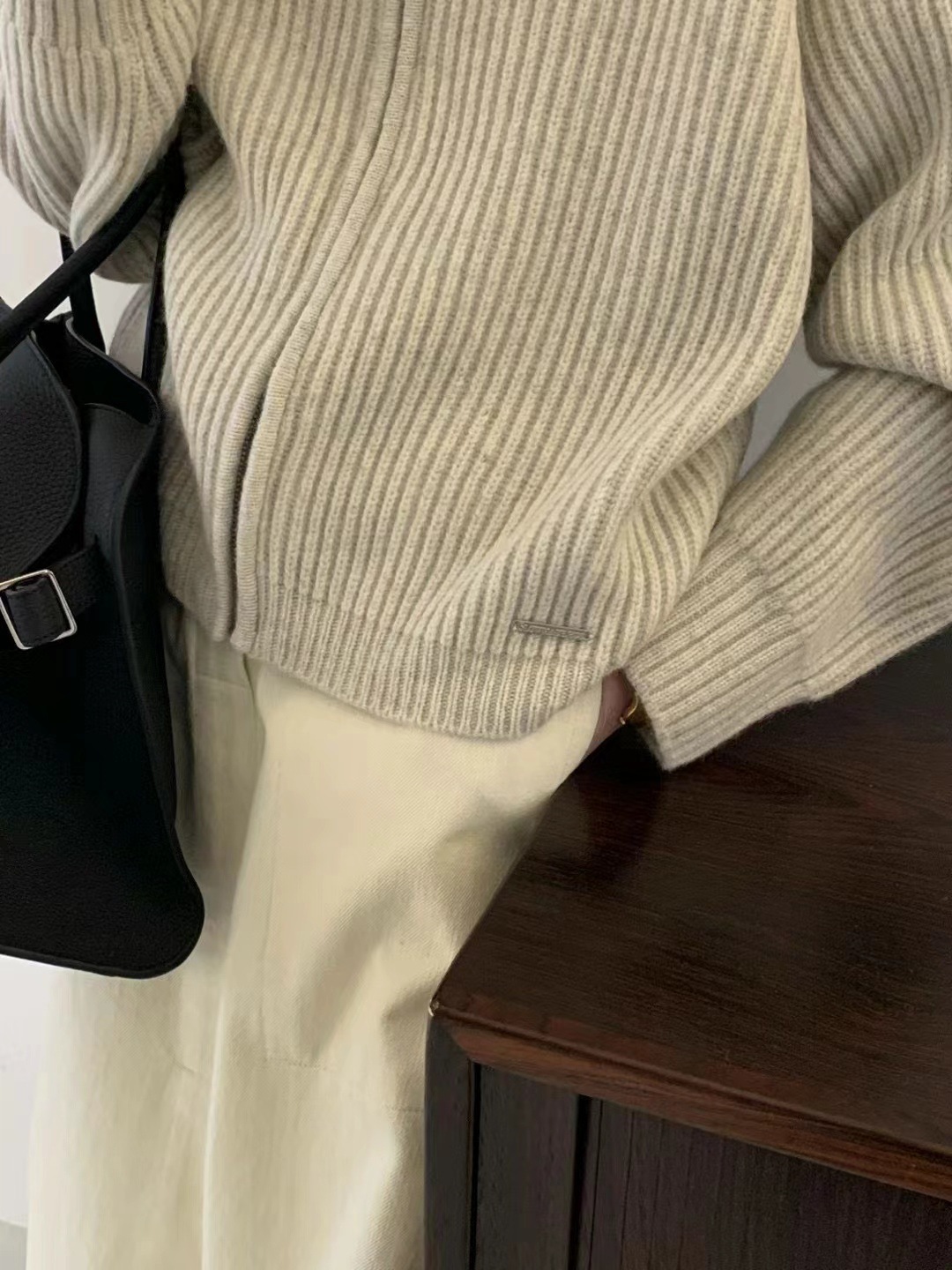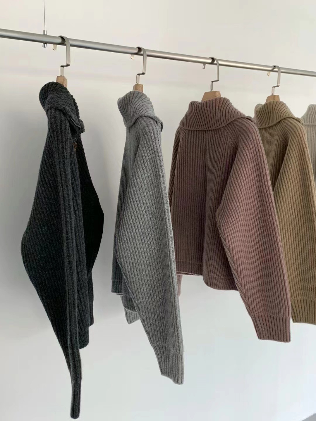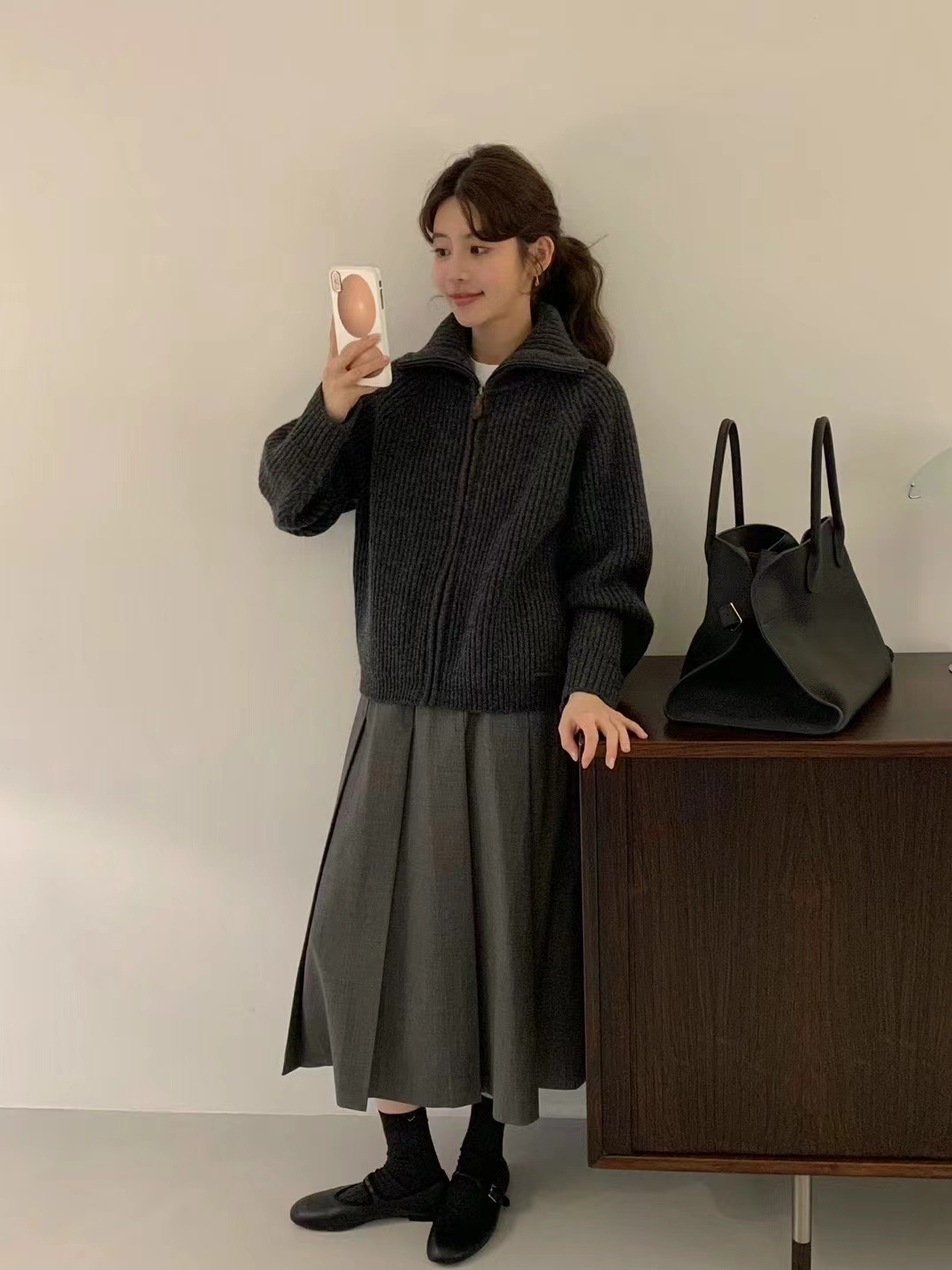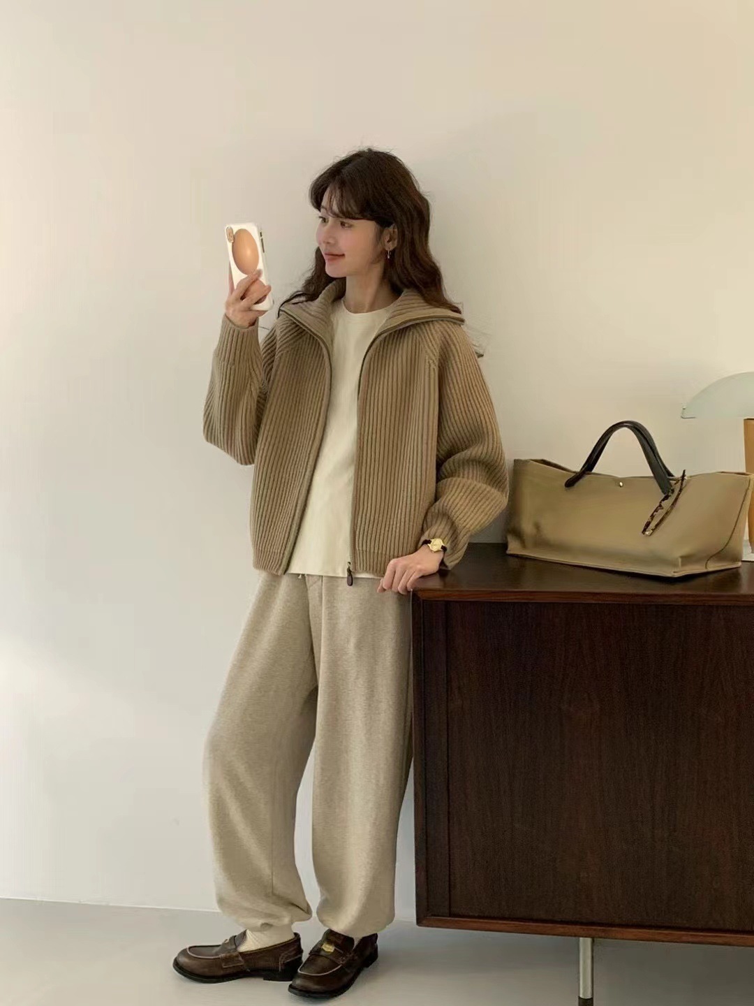 韩代同款!EGG东大门新款翻领拉链羊毛针织开衫长袖毛衣女外套!