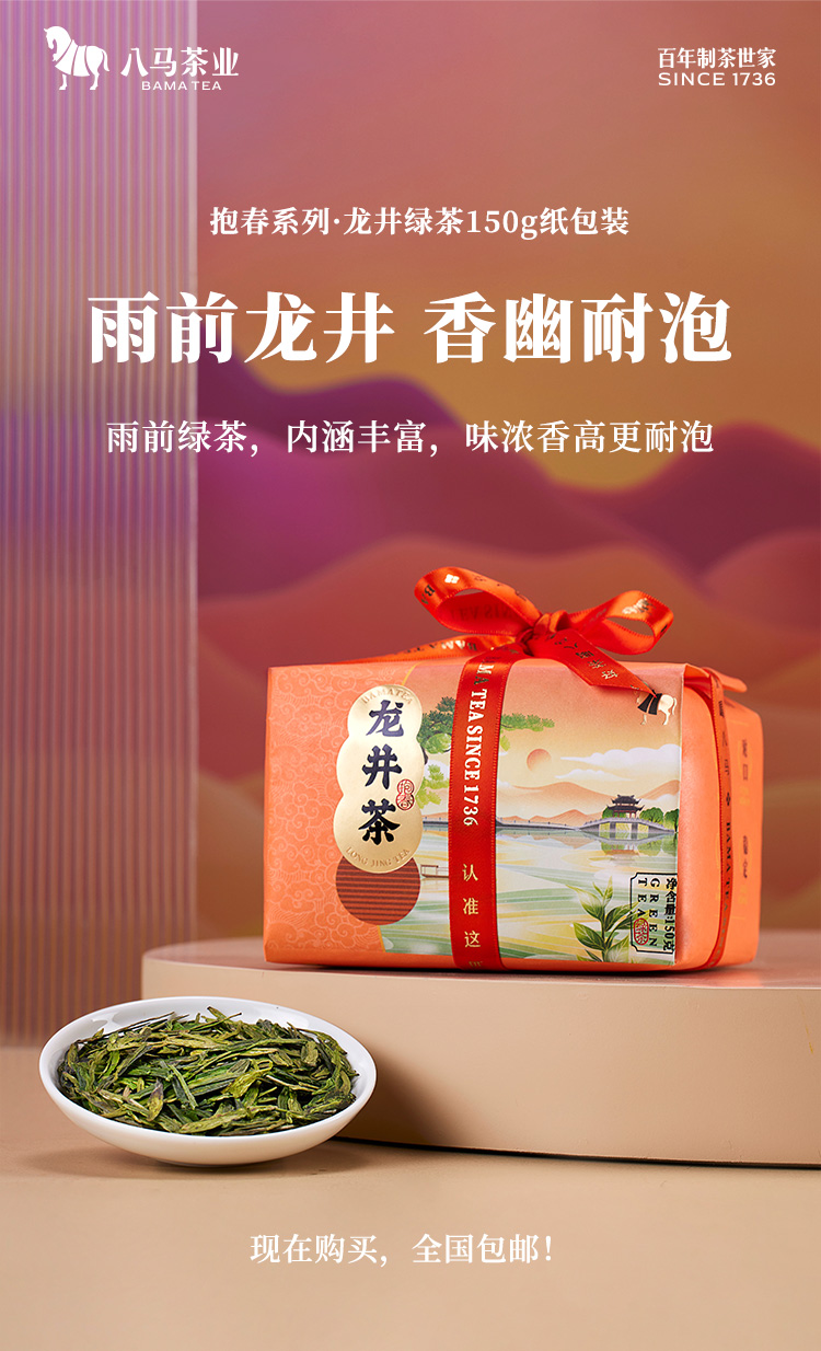 【2026年春茶】八马茶业 | 浙江龙井绿茶雨前绿茶纸袋包装150g