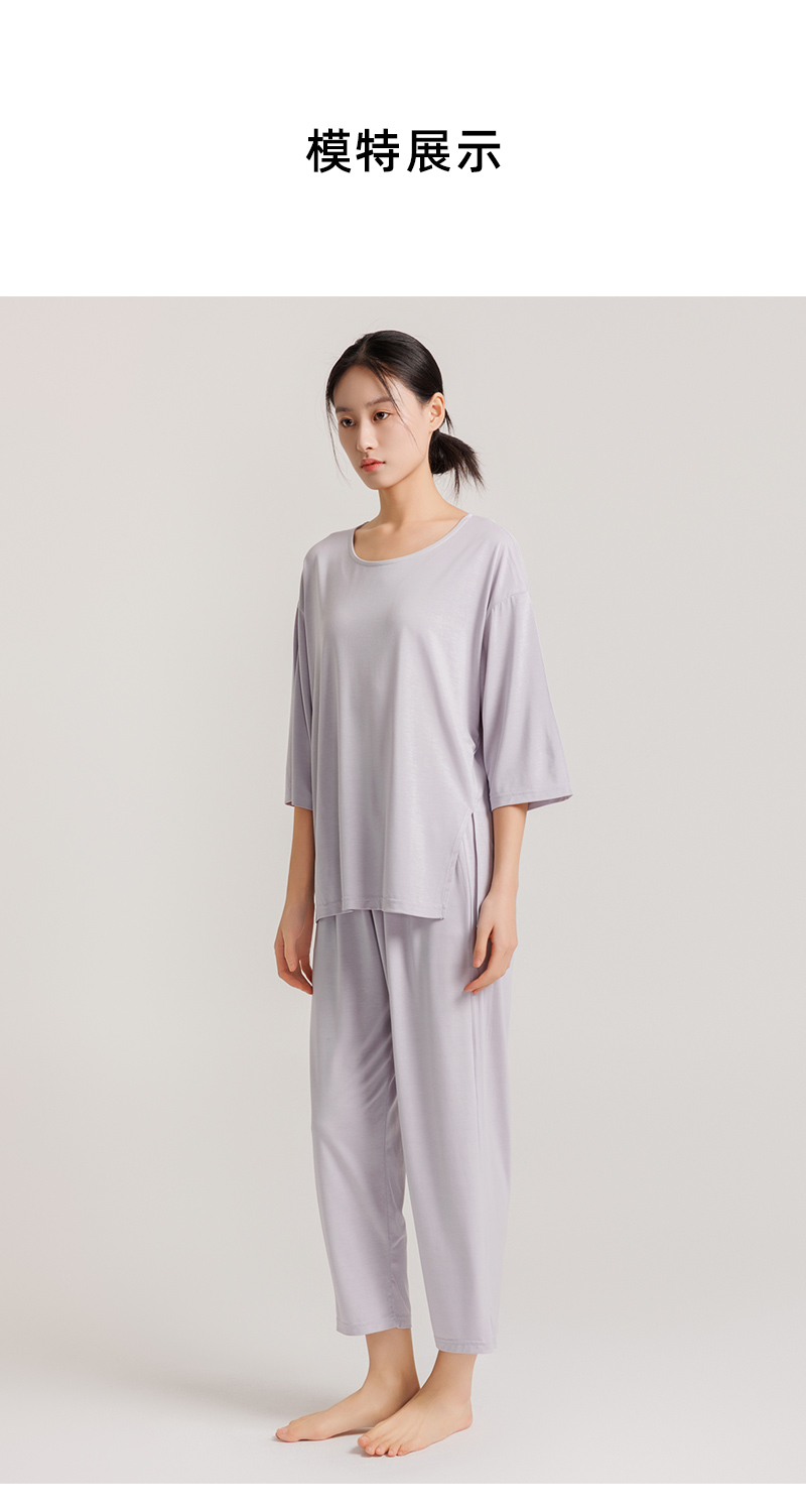 weyo女士夏季款冰丝棉宽松开叉长袖长裤套装1578 商品图2