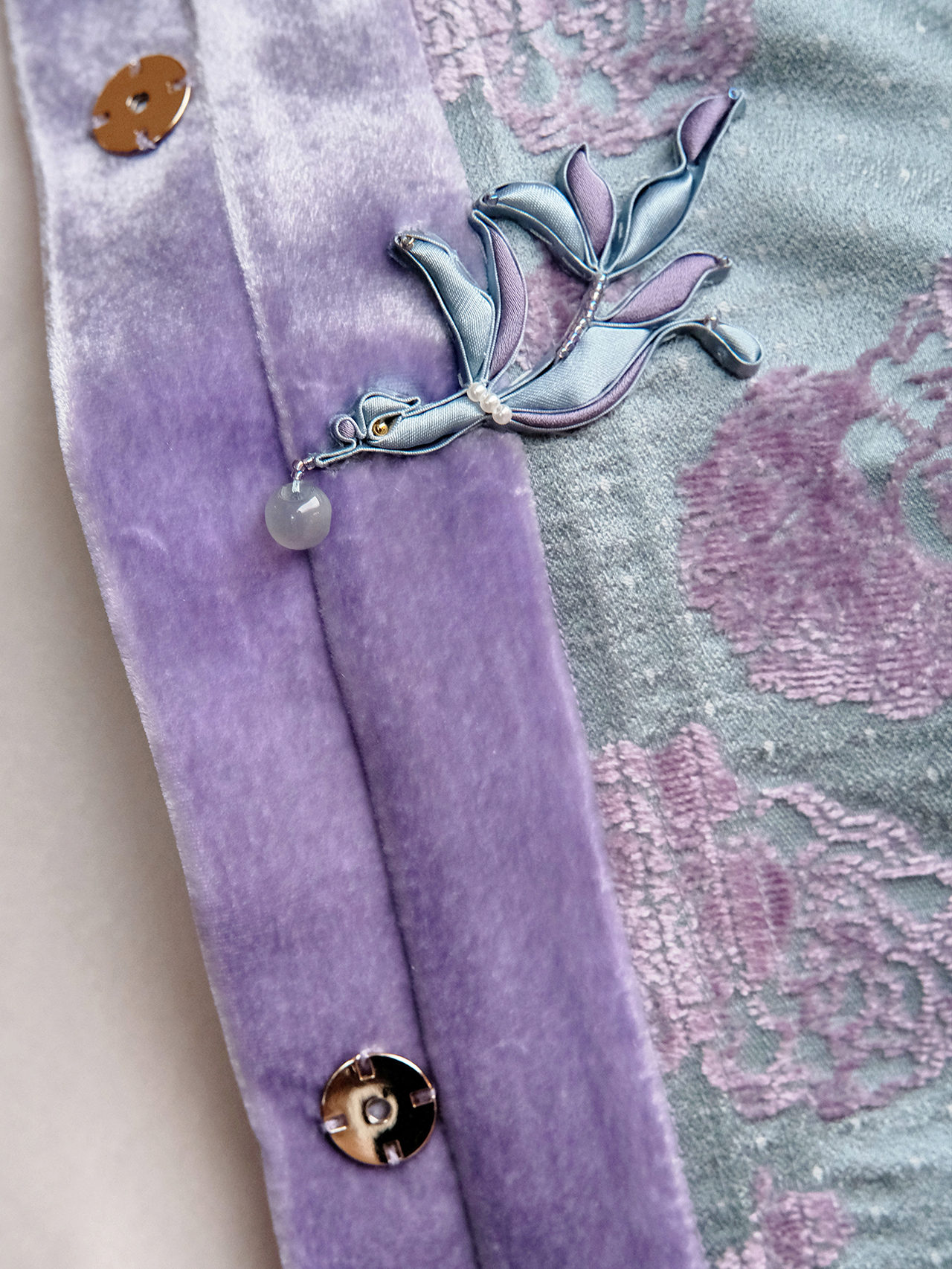 盛唐牡丹 | 秋波蓝牡丹亭真丝漳缎外套