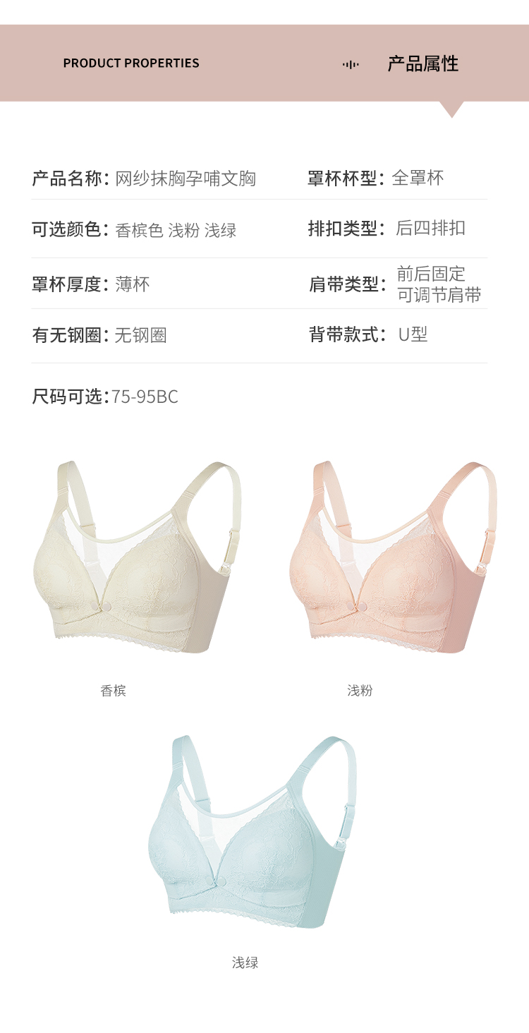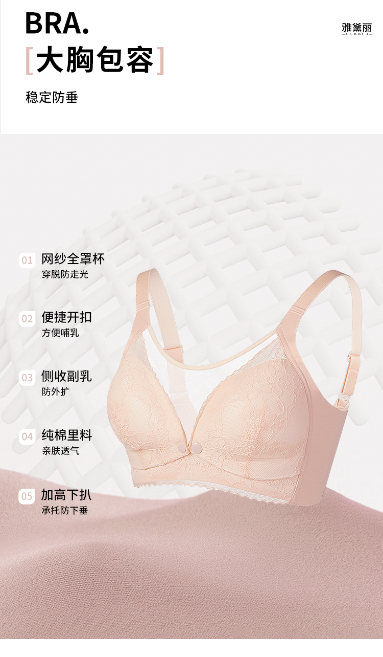雅黛丽孕妇内衣孕期哺乳期专用前开扣大胸显小全罩杯薄款文胸罩