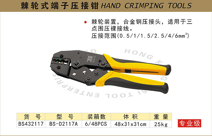 波斯 棘轮式端子压接钳 适用于三点围压裸接线 0.5-10mm² BS432117