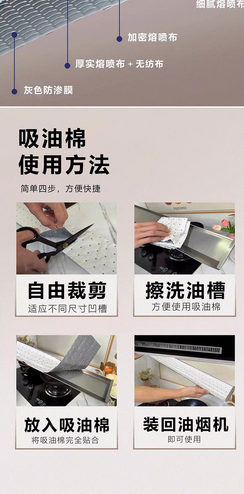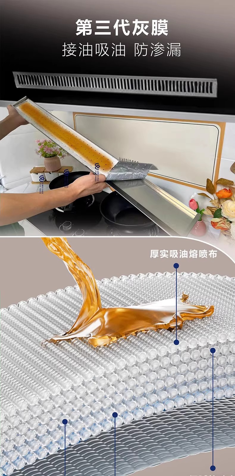 【19.9抢30条装❗升级超厚防透油灰膜】第三代灰膜吸油棉「既吸油又储油」新款家用吸抽烟机油杯,油槽洁净隔油垫,油烟机第三代灰膜防渗透吸油L