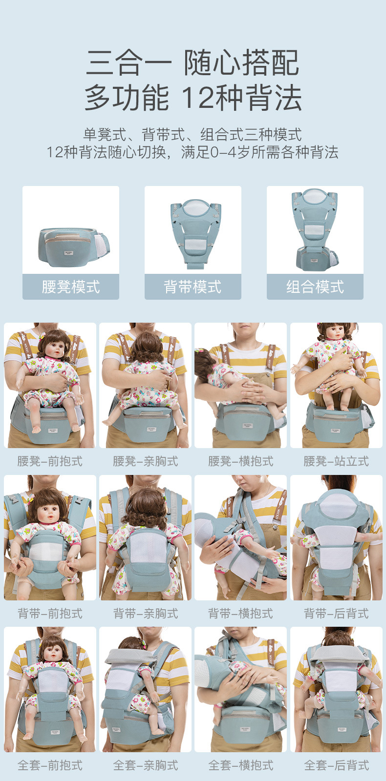 母婴用品-婴儿背带新生儿宝宝前横抱式透气抱娃腰凳坐凳多功能