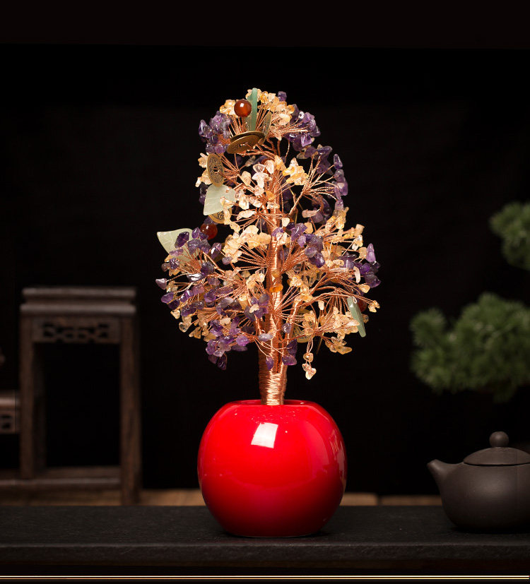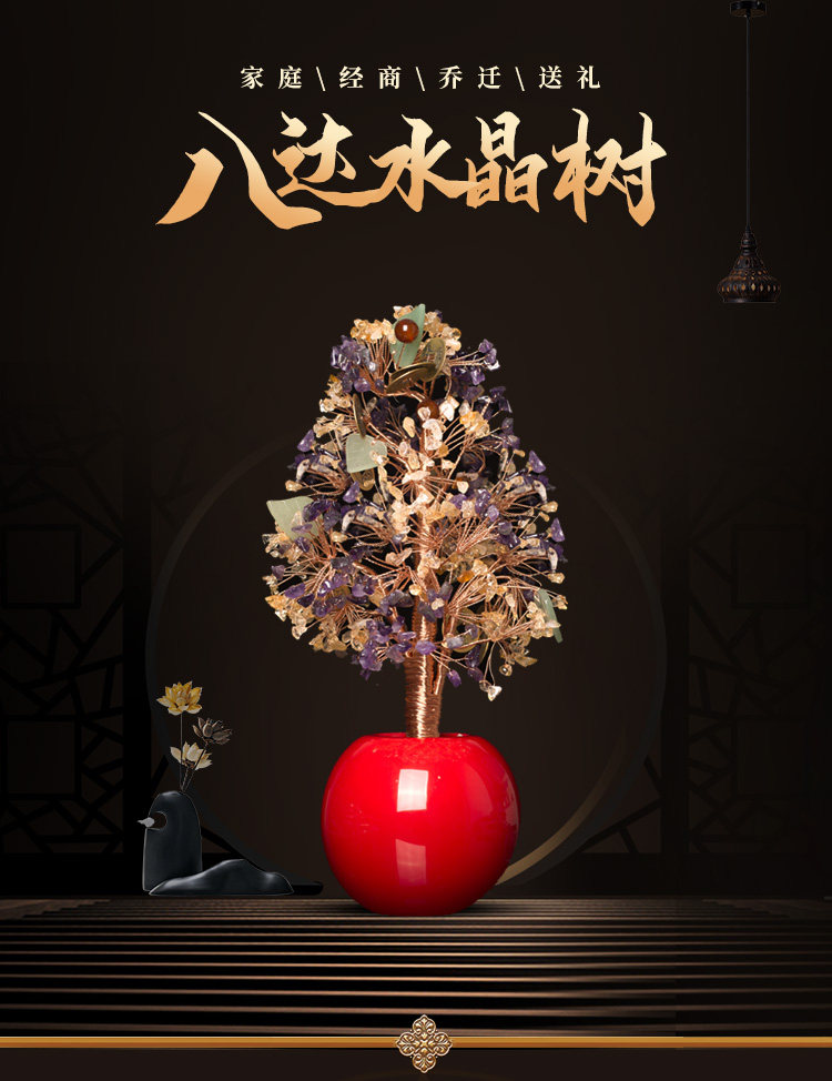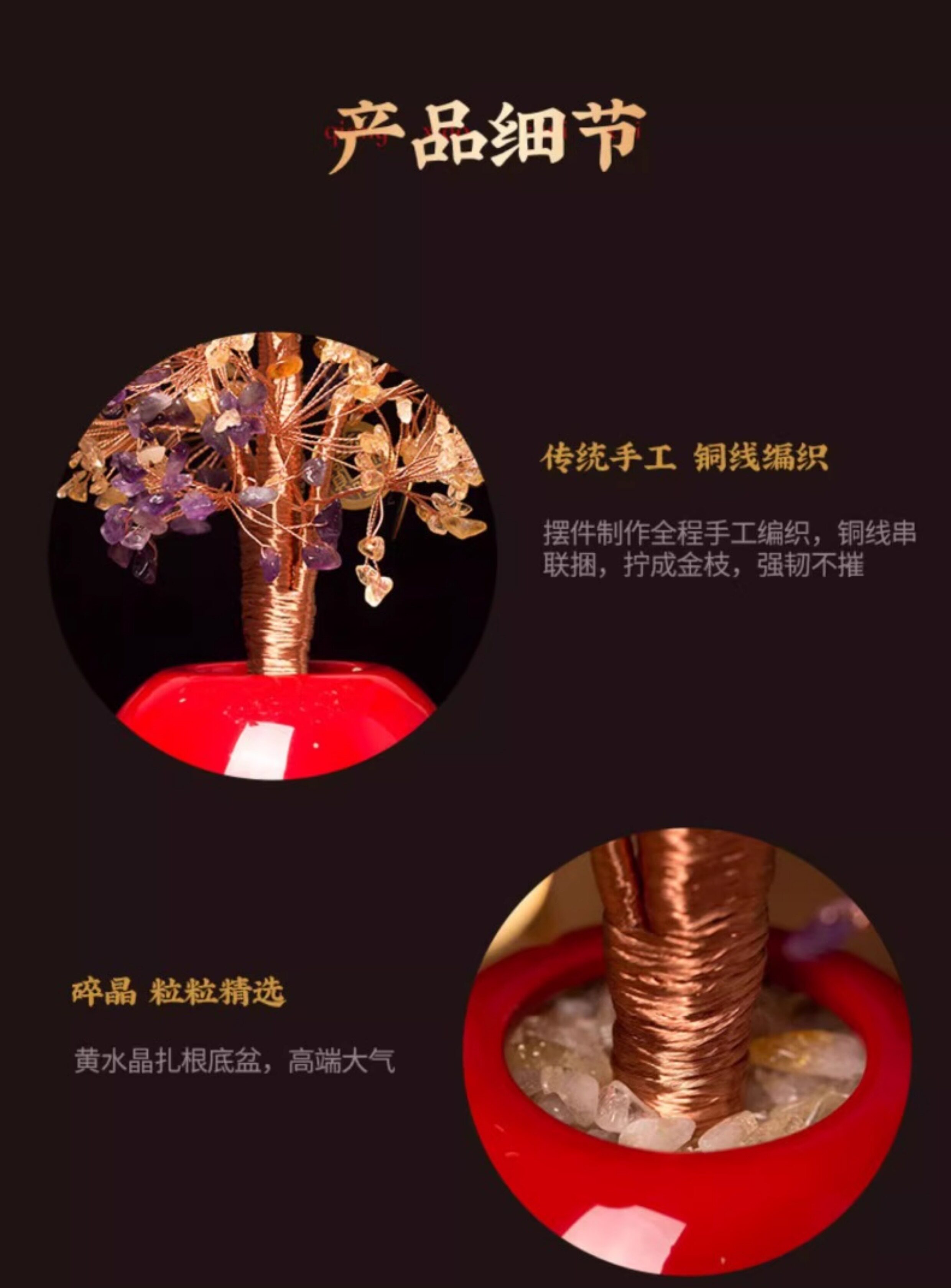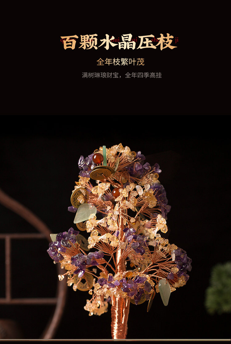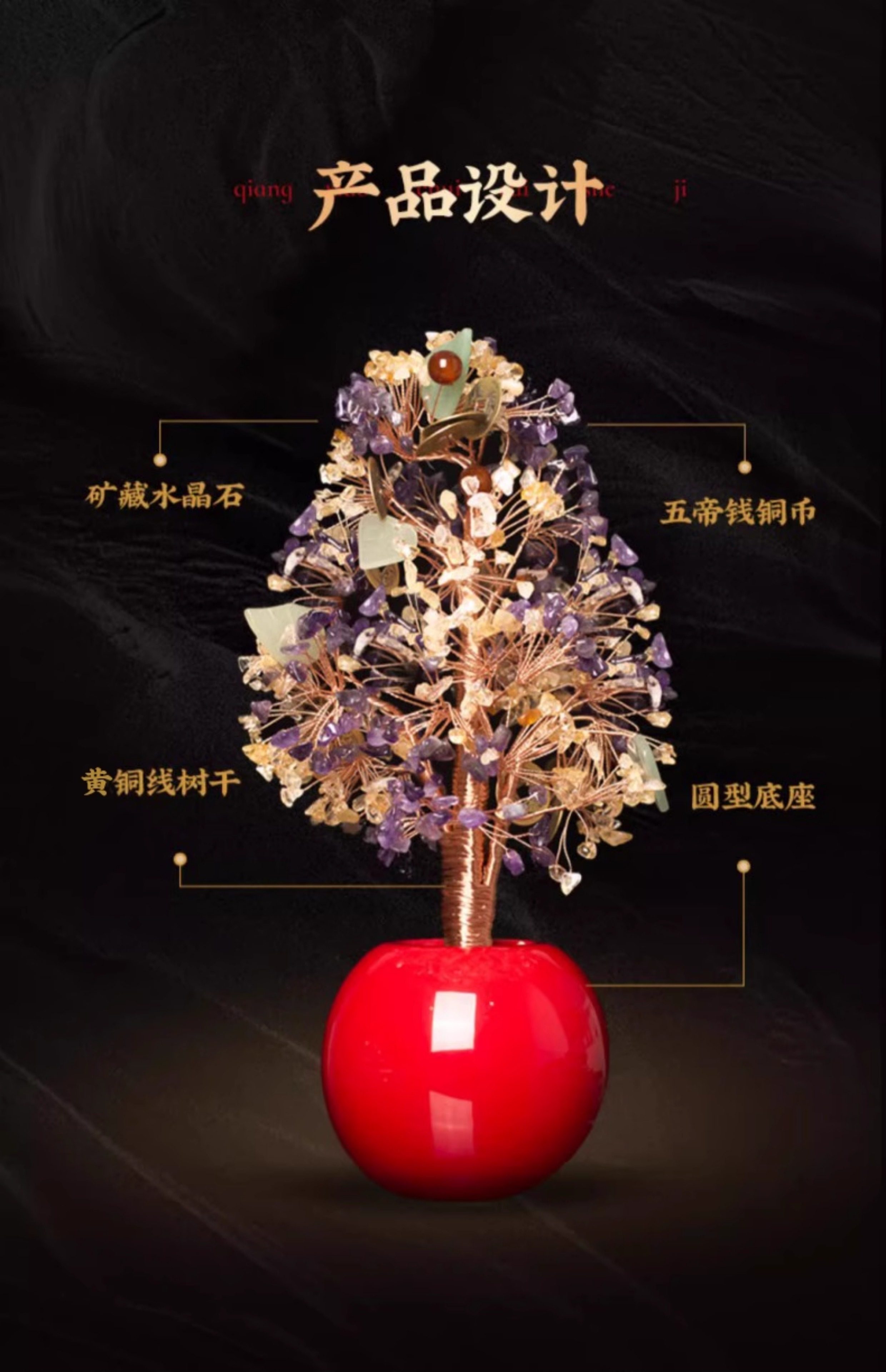 【祈愿吉品】八达水晶树摆件五帝钱摇钱树客厅办公送礼财神