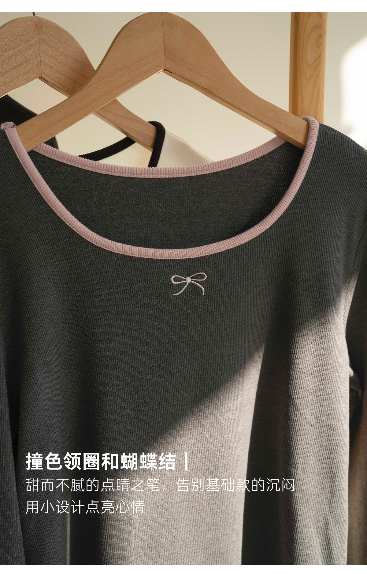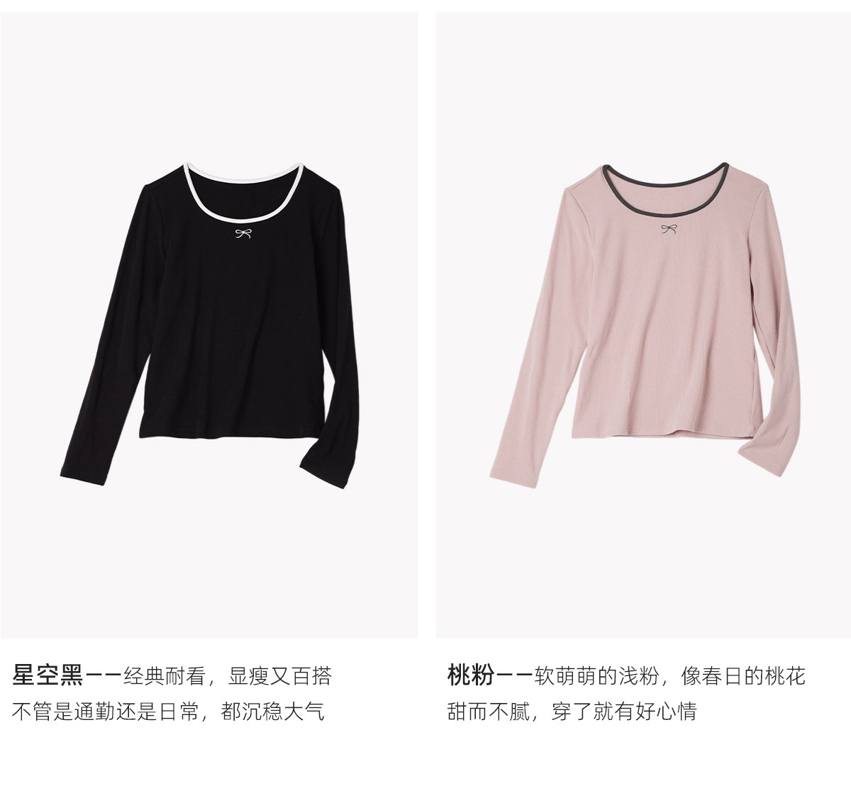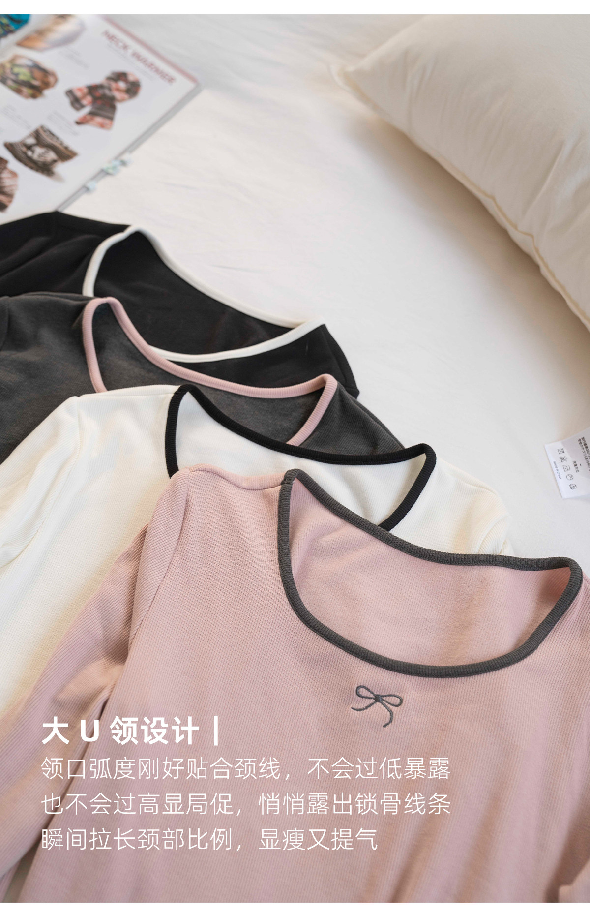 靴下物日系大U领显瘦舒适打底衫撞色领秋冬保暖内搭长袖t恤上衣