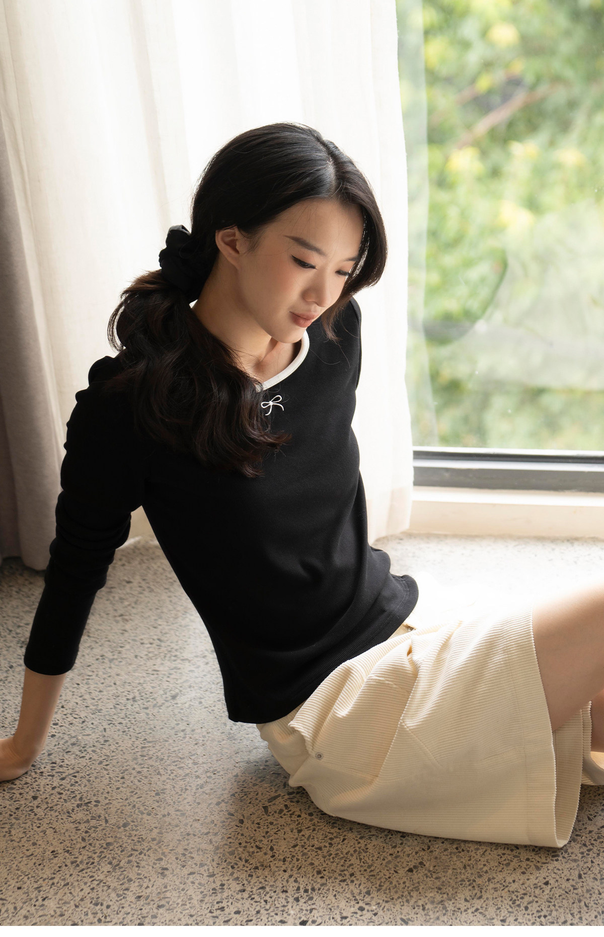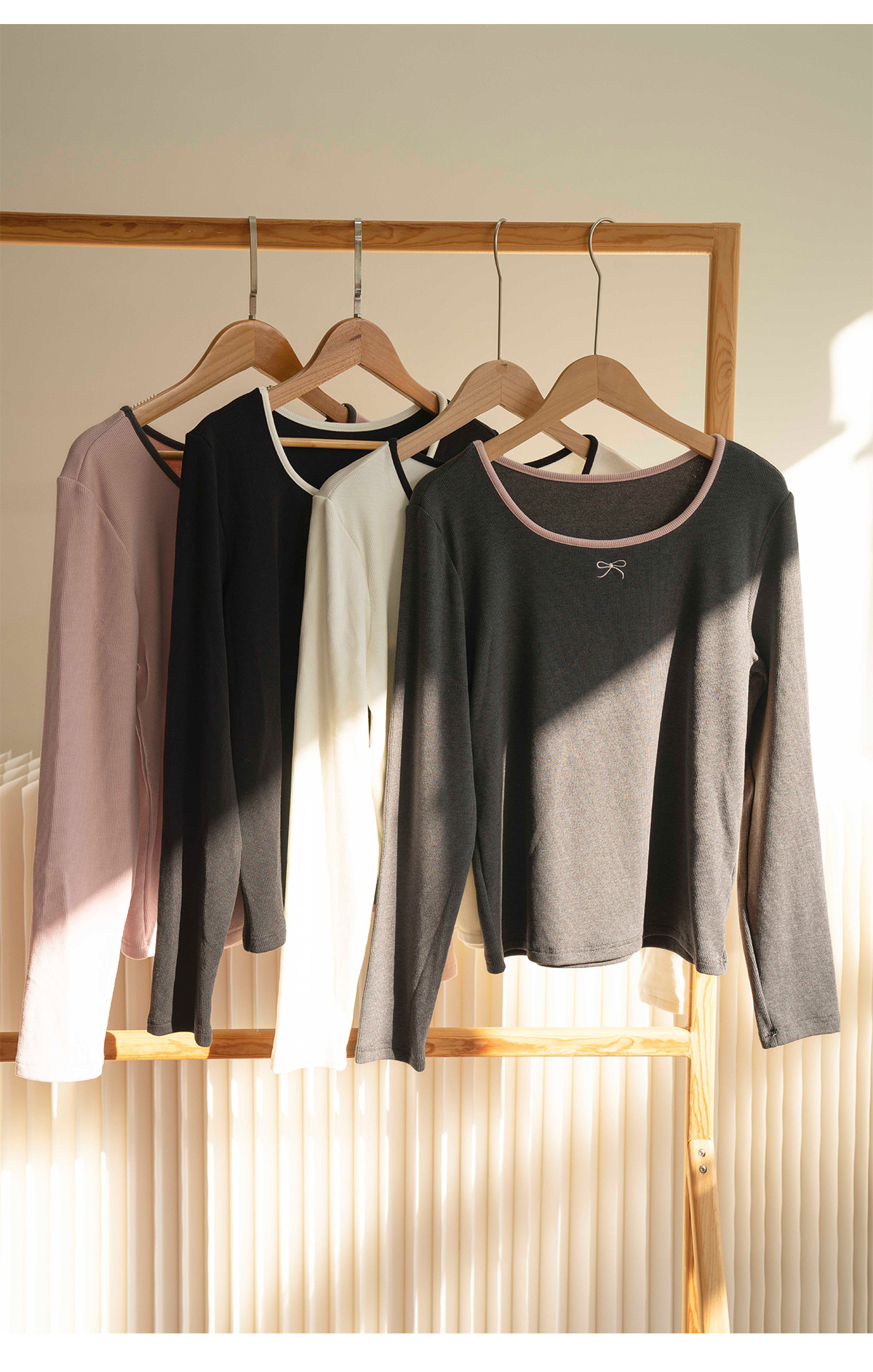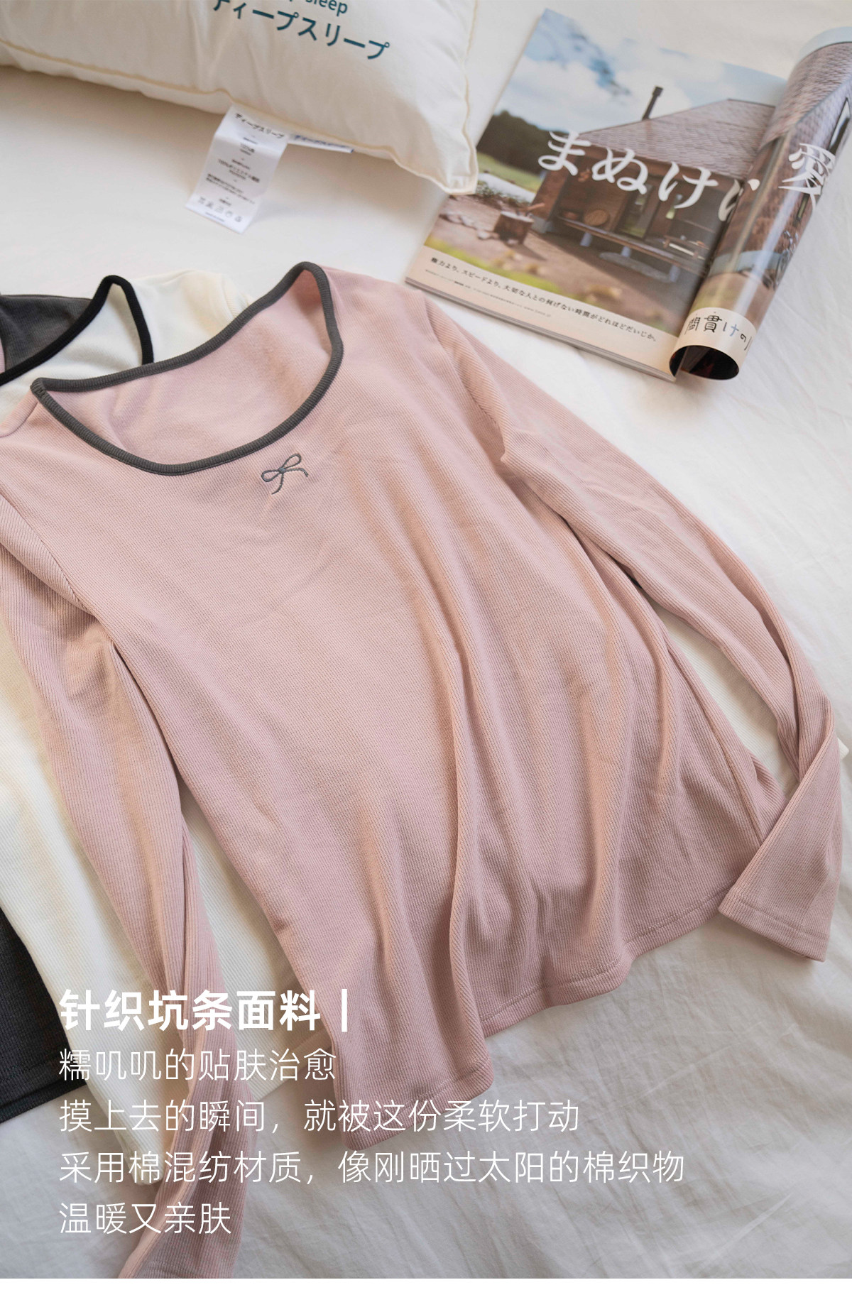 靴下物日系大U领显瘦舒适打底衫撞色领秋冬保暖内搭长袖t恤上衣