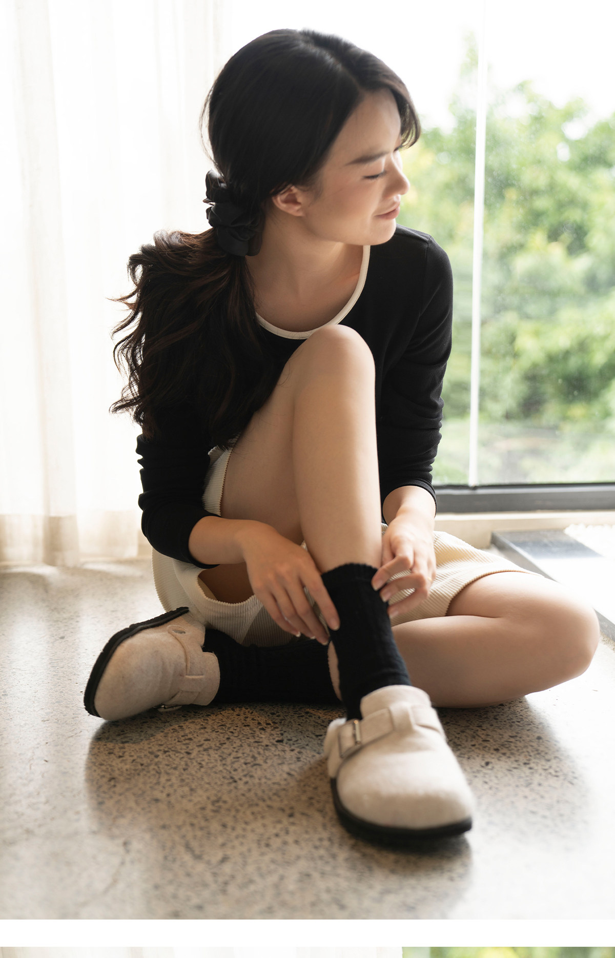 靴下物袜子女中筒袜春秋薄款精梳棉运动短袜ins袜潮堆堆袜月子袜