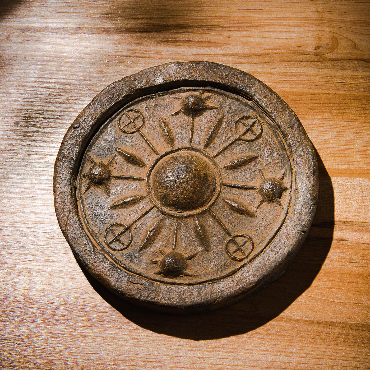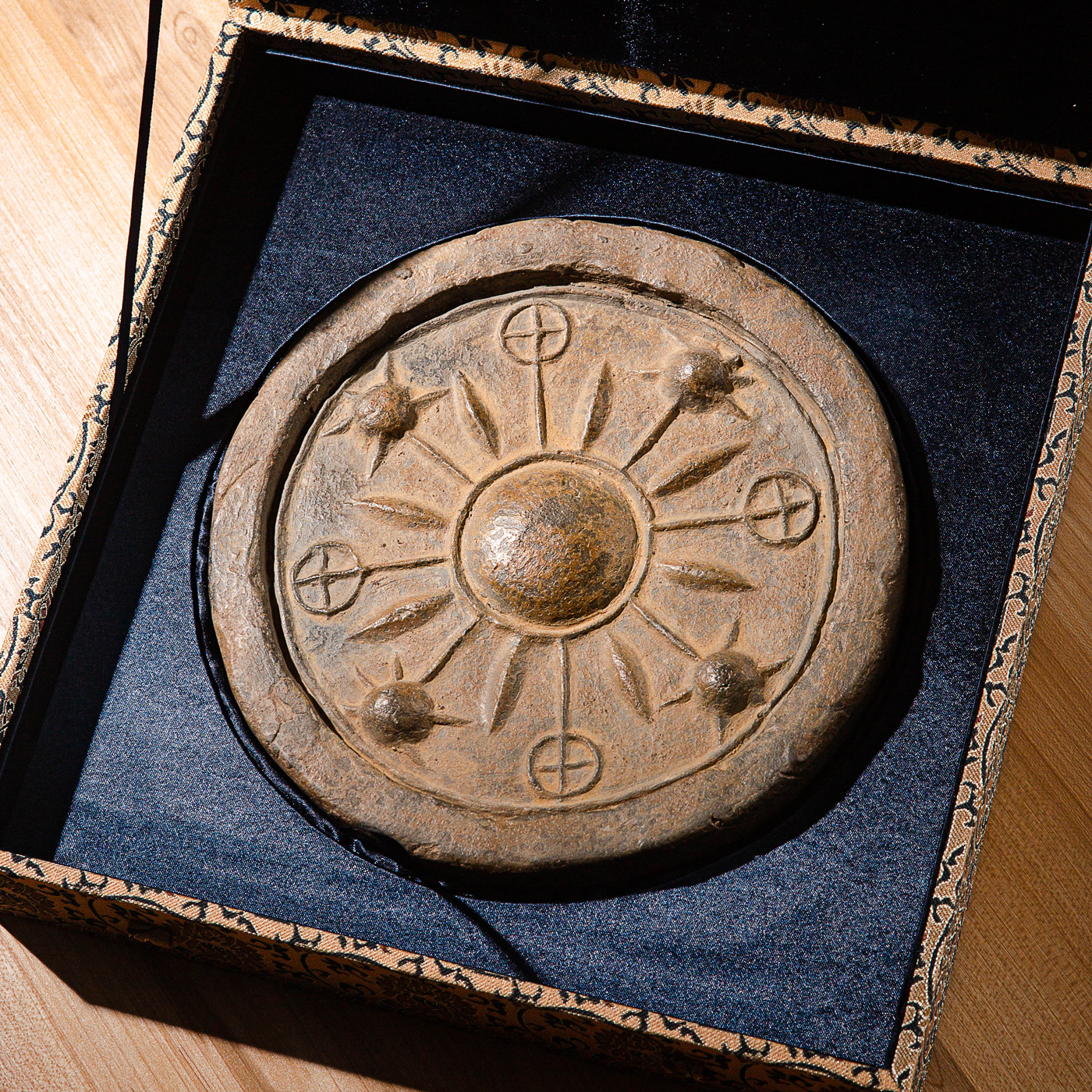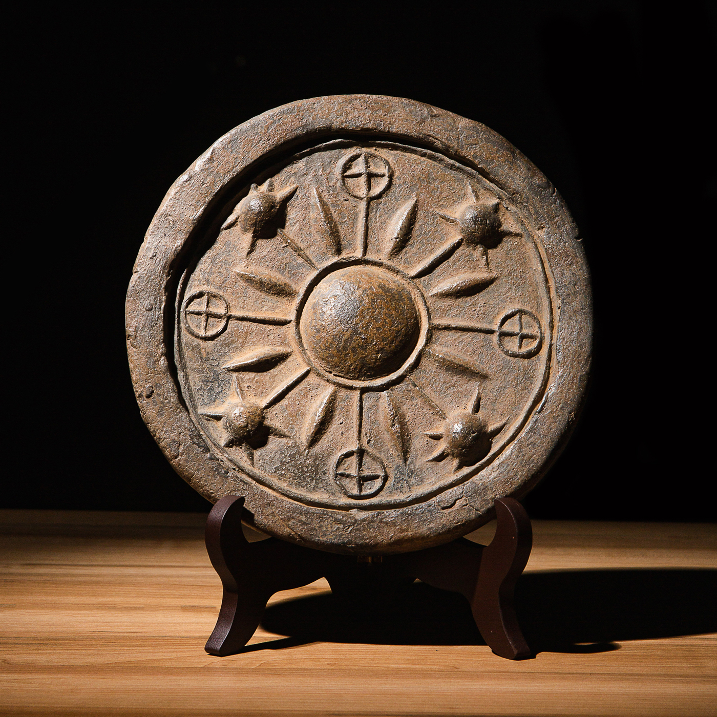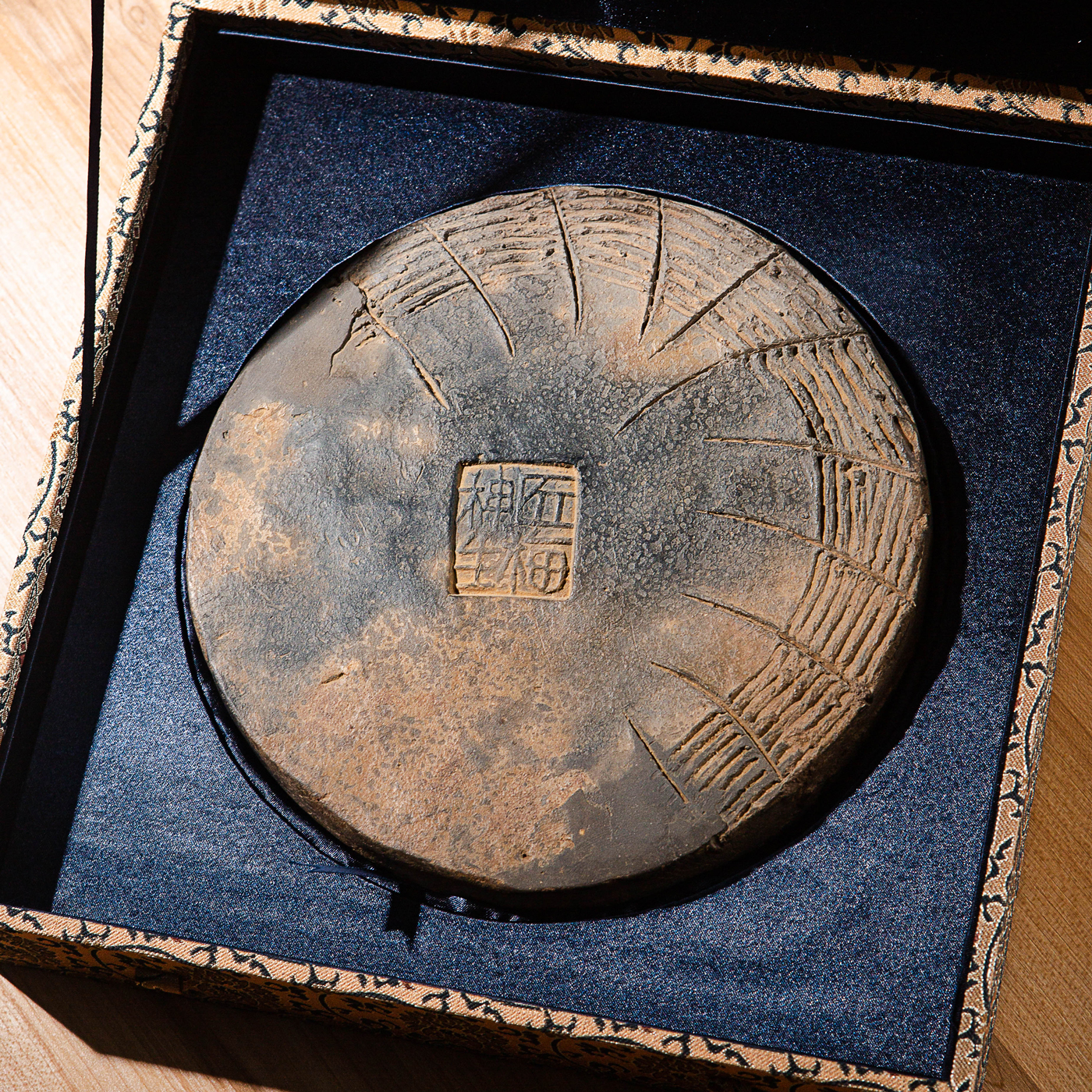 南北朝“星宿”瓦当,存世少见。其纹饰古朴奇妙,品相保存完整,尺寸大。瓦当背面有“匠神梅生”四字印章,极为珍贵。此物是收藏之佳品,可遇而不可求。