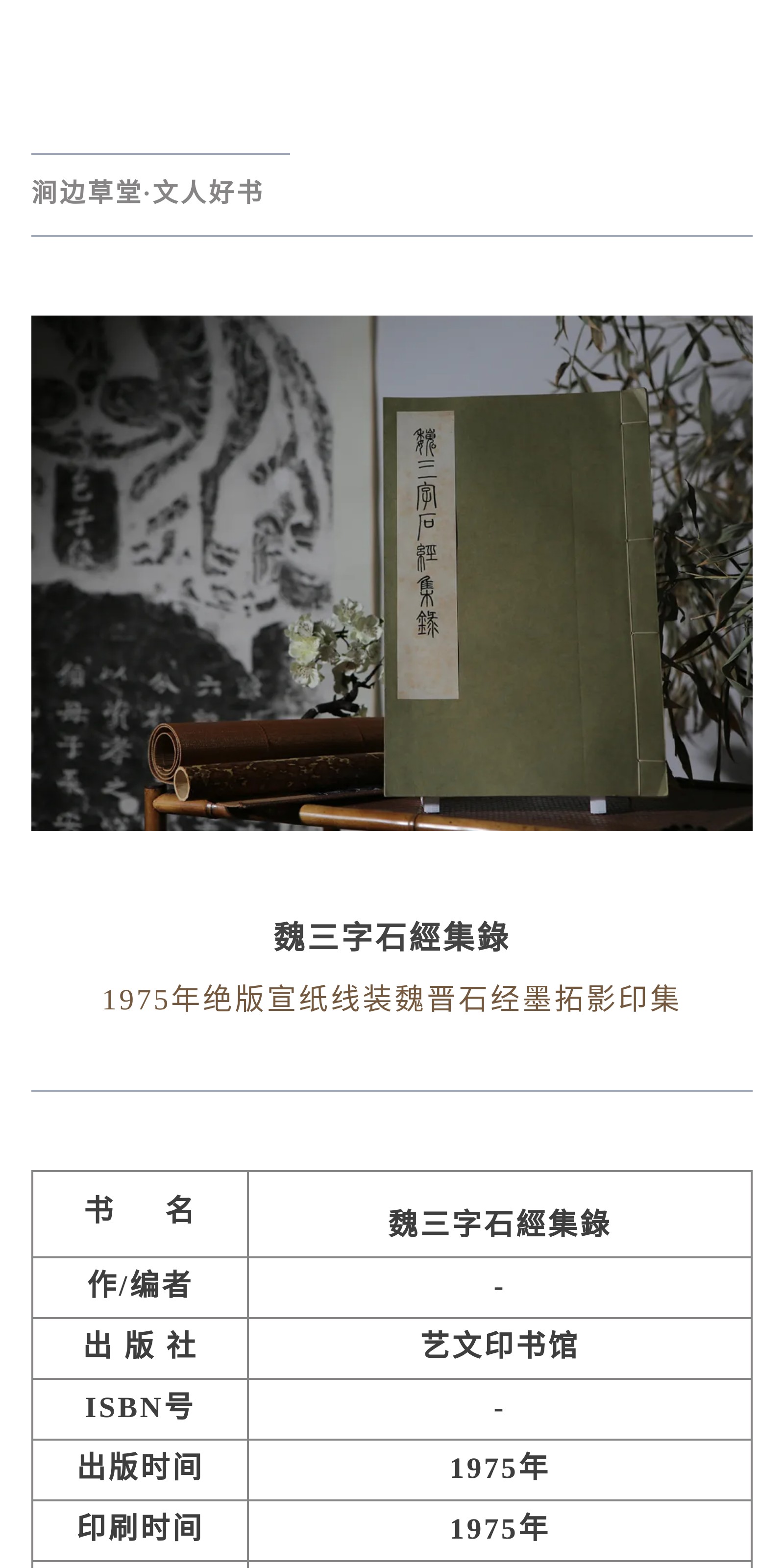 绝版好书《魏三字石经集录》八开宣纸线装厚册192页(版图112页),1975年艺文印书馆初版