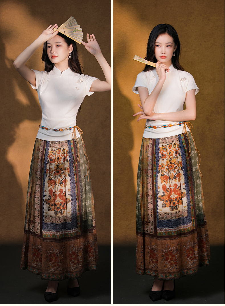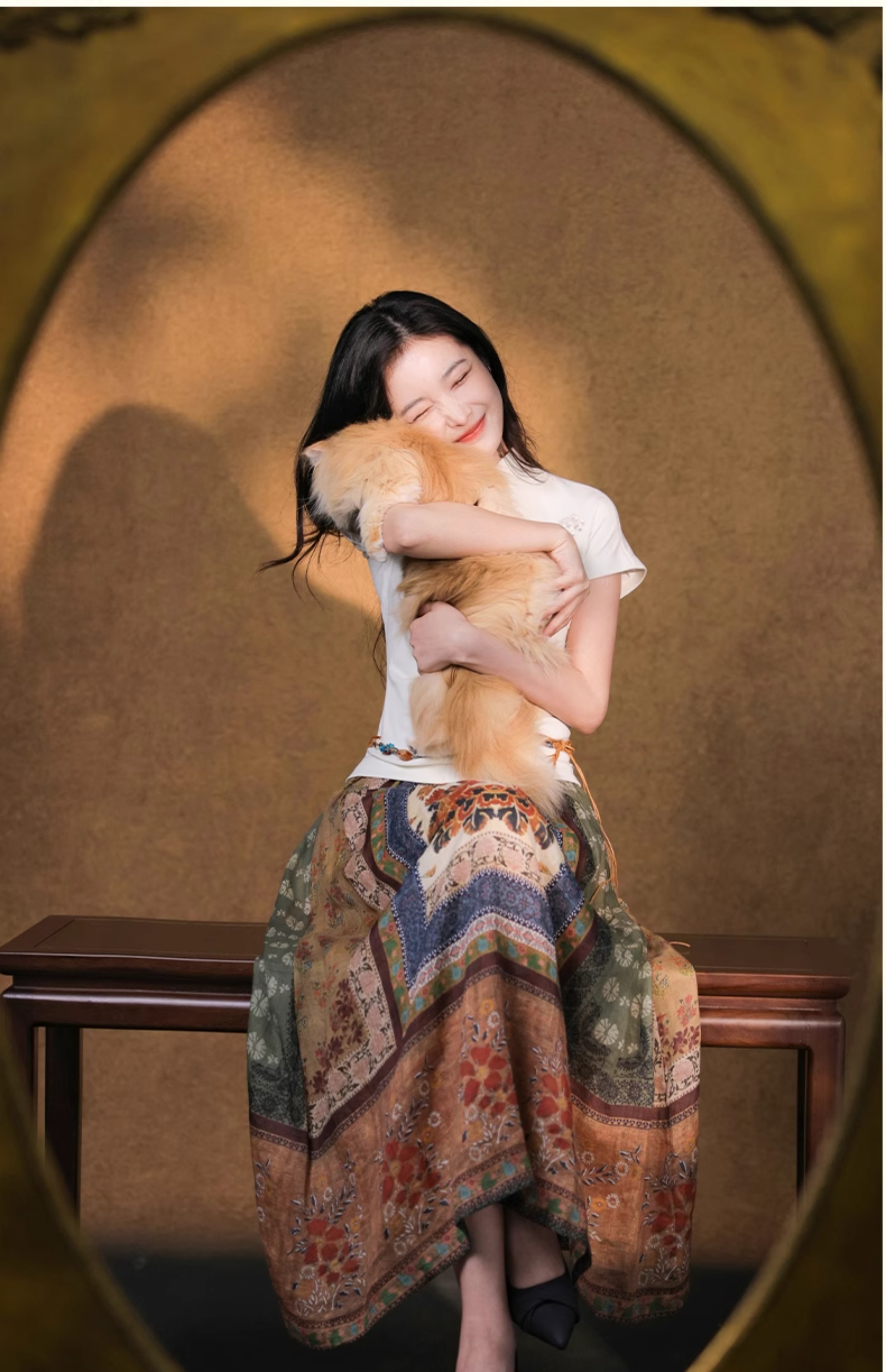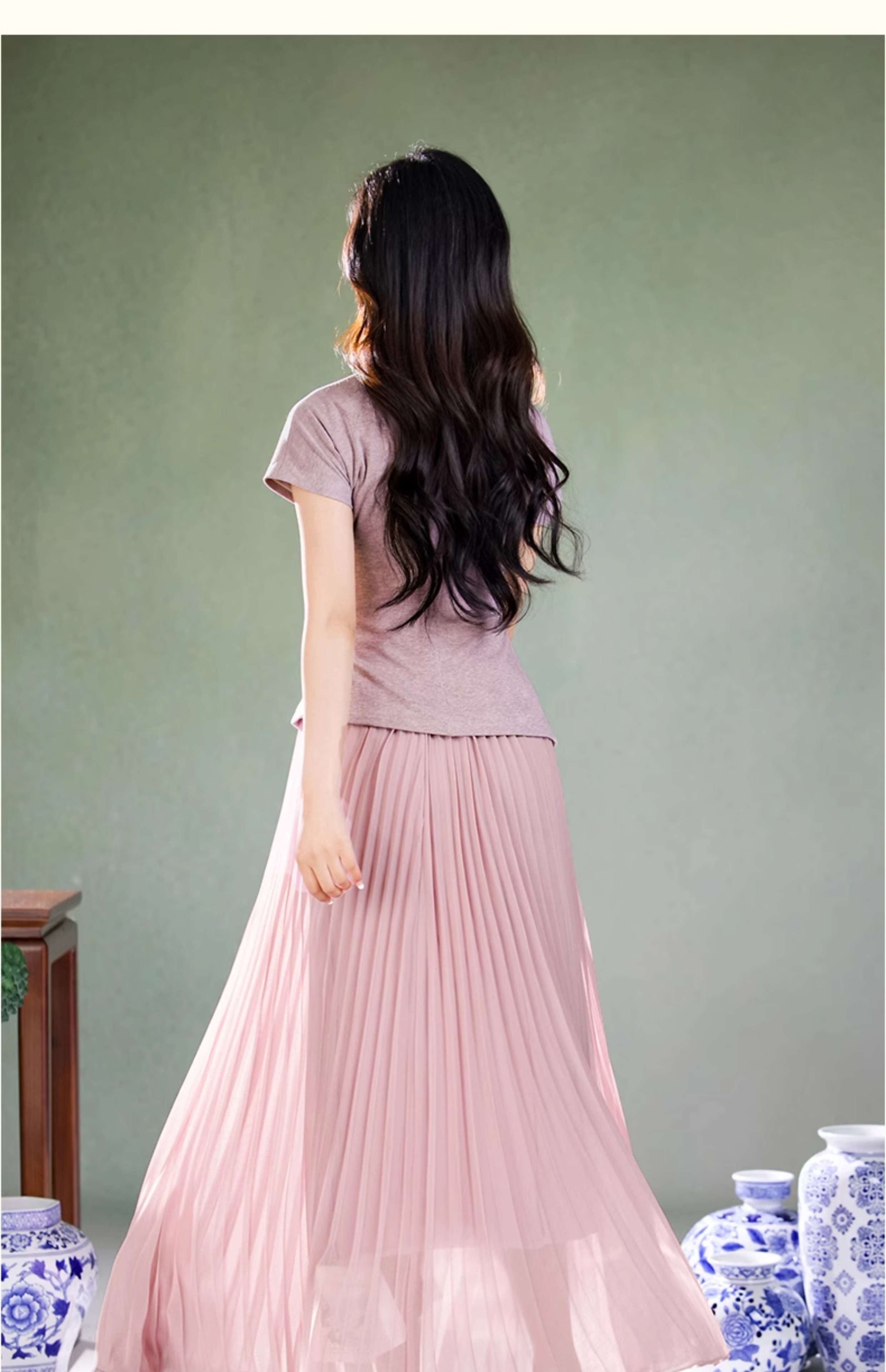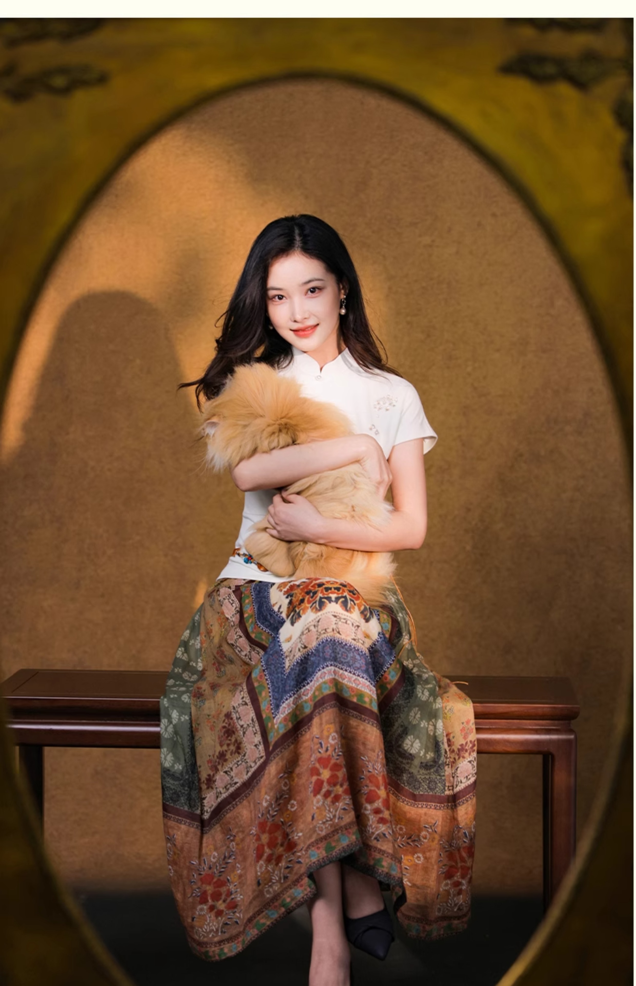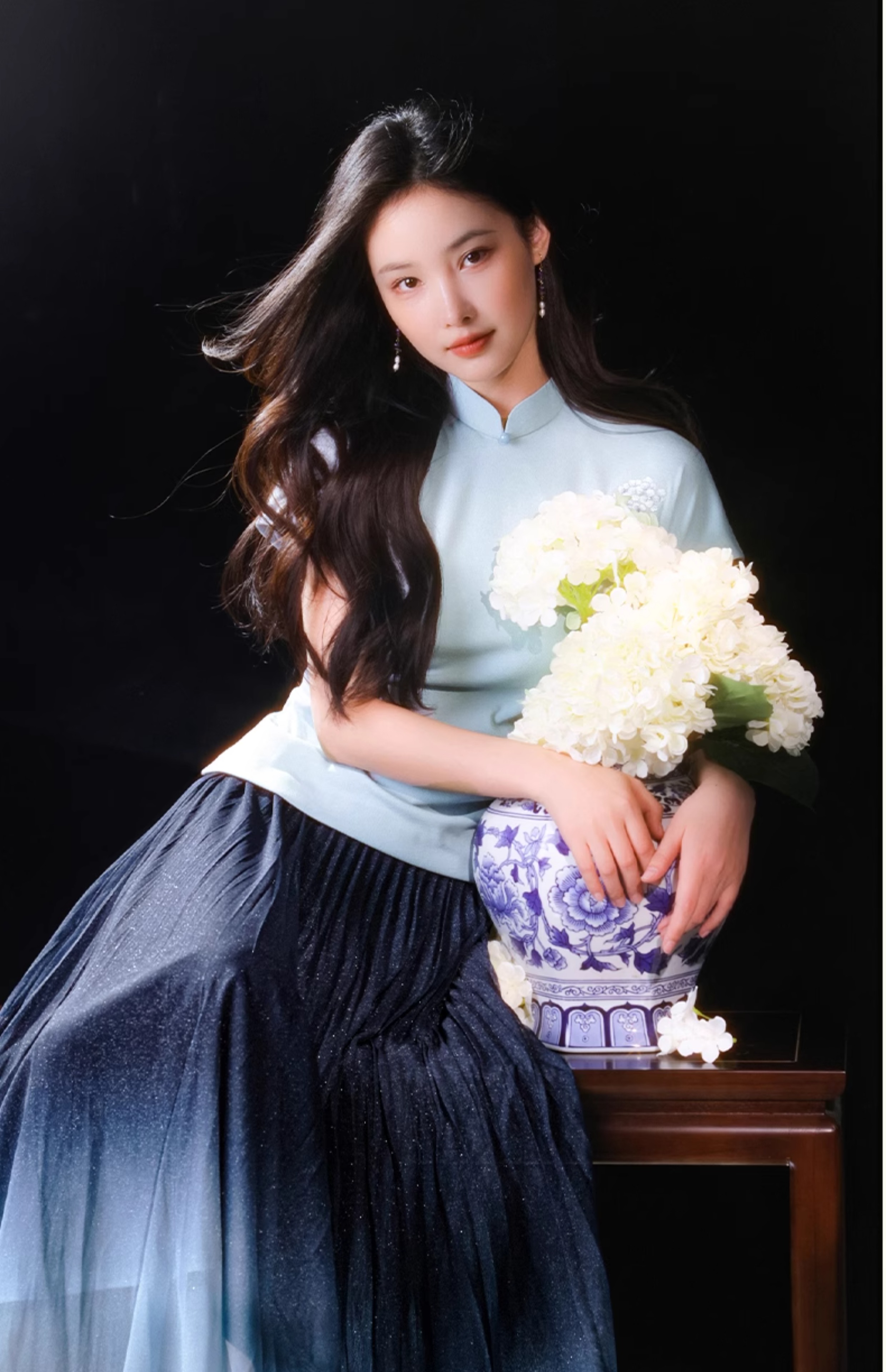 逸红颜琇苒2025夏新款不对称抽褶凉感弹力针织新中式刺绣旗袍上衣
