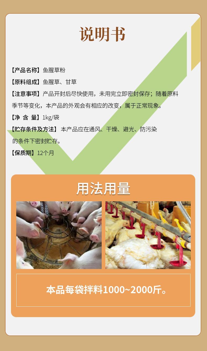 鱼腥草粉兽用消炎清热解毒猪牛羊开胃禽鸡鸭鹅用呼吸道饲料添加剂