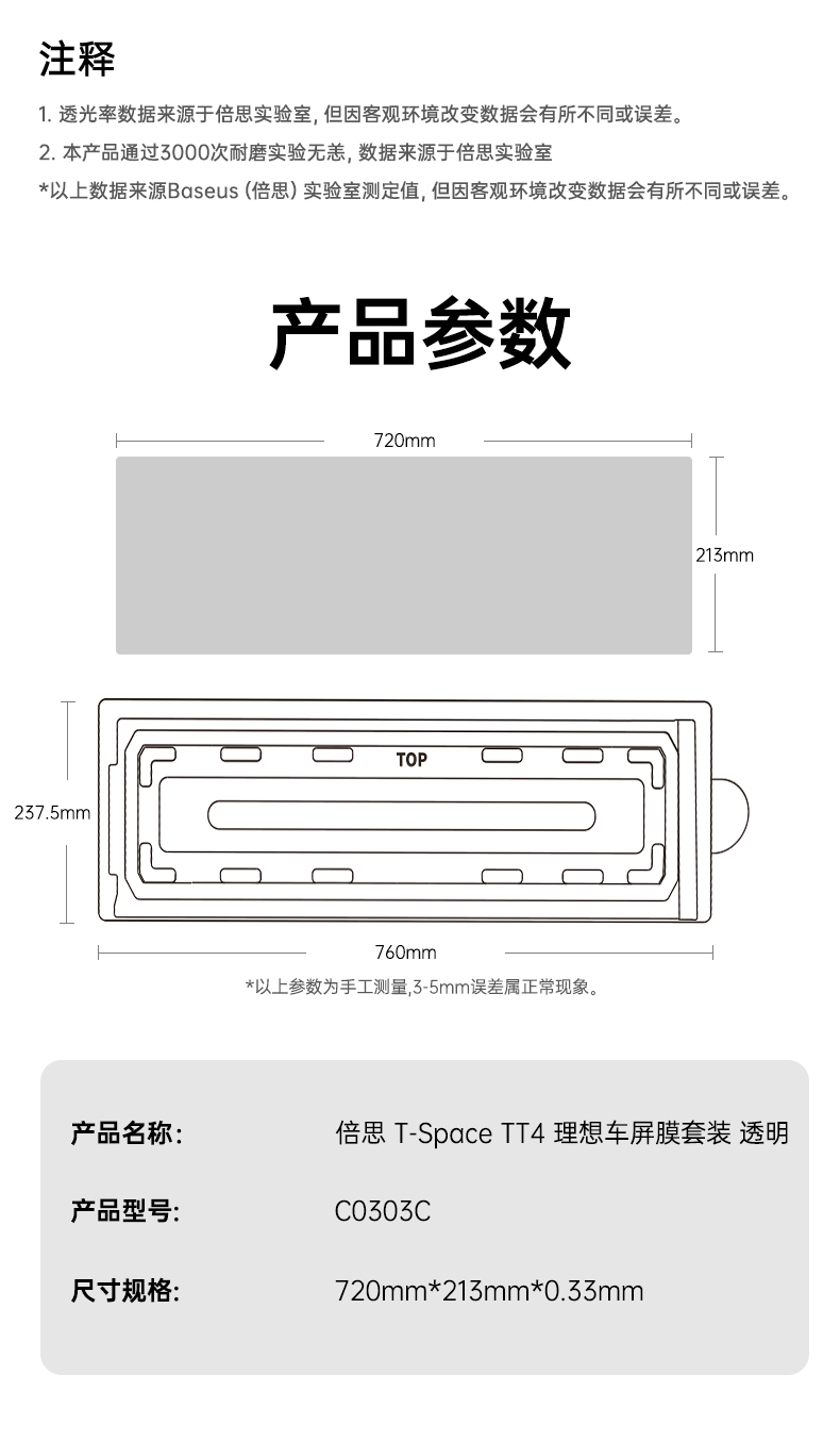 【十一专享】倍思 T-Space TT4 理想车屏膜套装 L6/7/8/9/MEGA车型