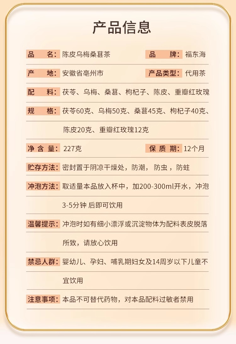 福东海 陈皮乌梅桑葚茶227g 山楂茯苓枸杞玫瑰养生茶食材酸梅汤
