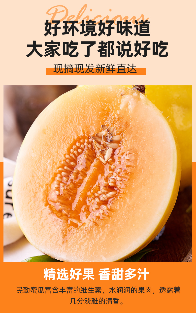 【宜昌助农馆】民勤蜜瓜 香甜多汁 当季新鲜金红宝黄皮蜜瓜