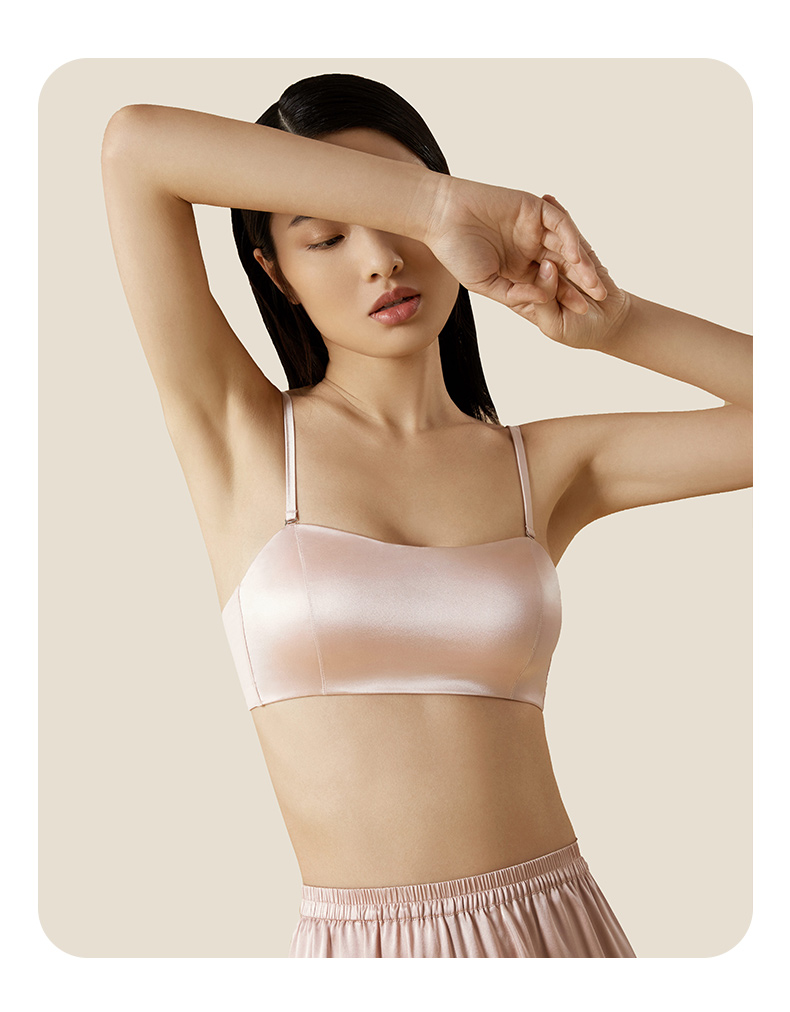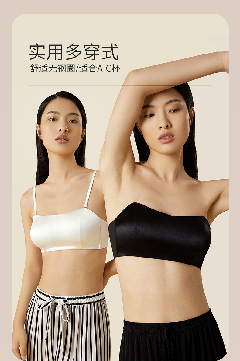金三塔真丝无肩带内衣女抹胸裹胸打底内搭防走光隐形文胸可拆卸吊带内衣(限价款) NZF8B307