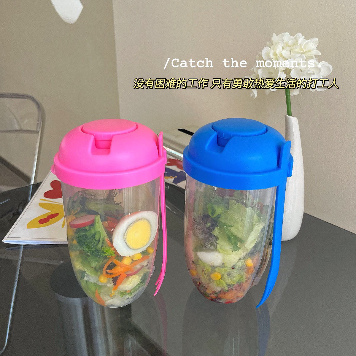 【网红减脂沙拉杯 教练推荐】小红书早餐沙拉杯梅森杯 带勺盖酸奶杯牛奶低脂健康杯