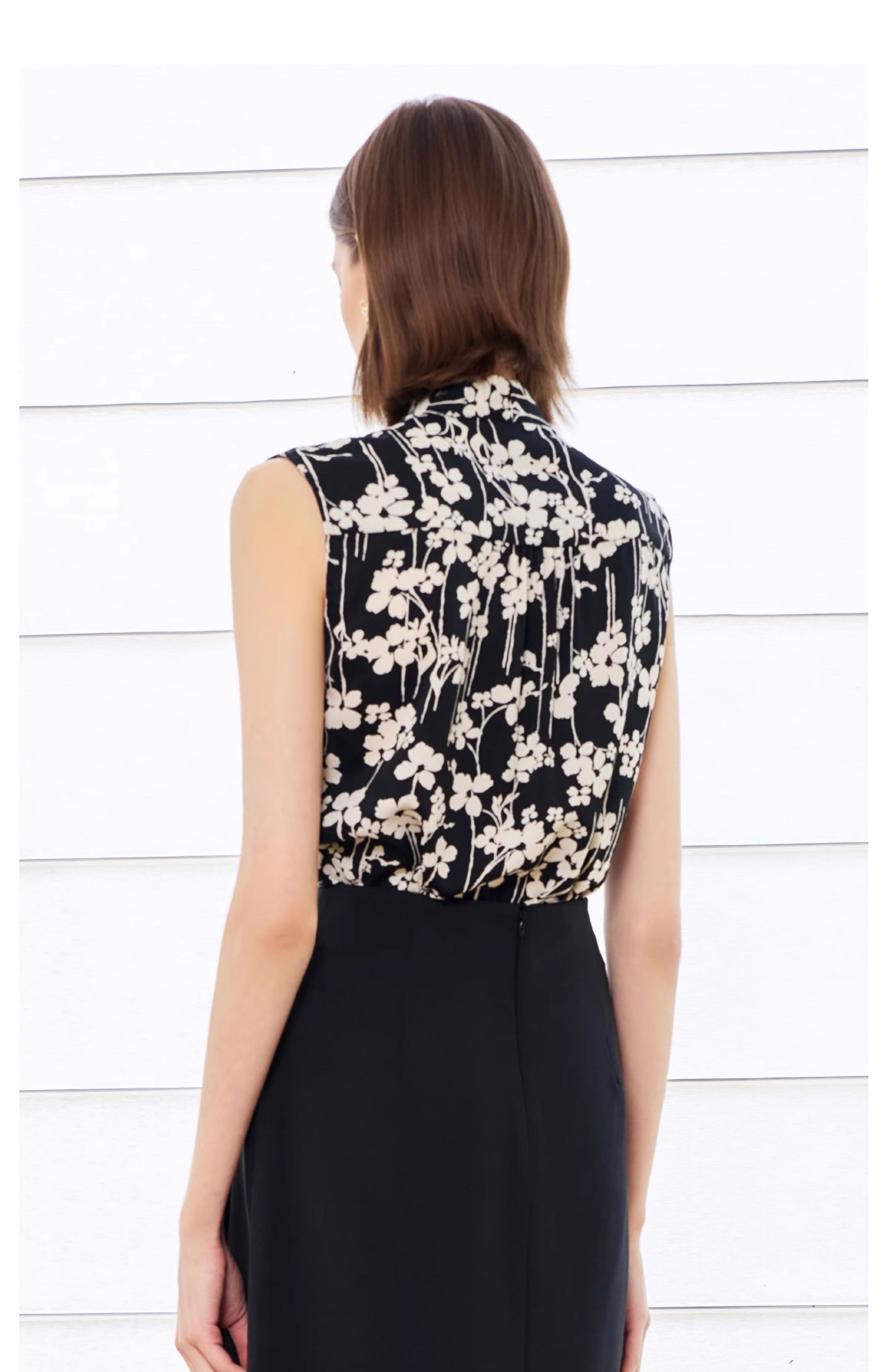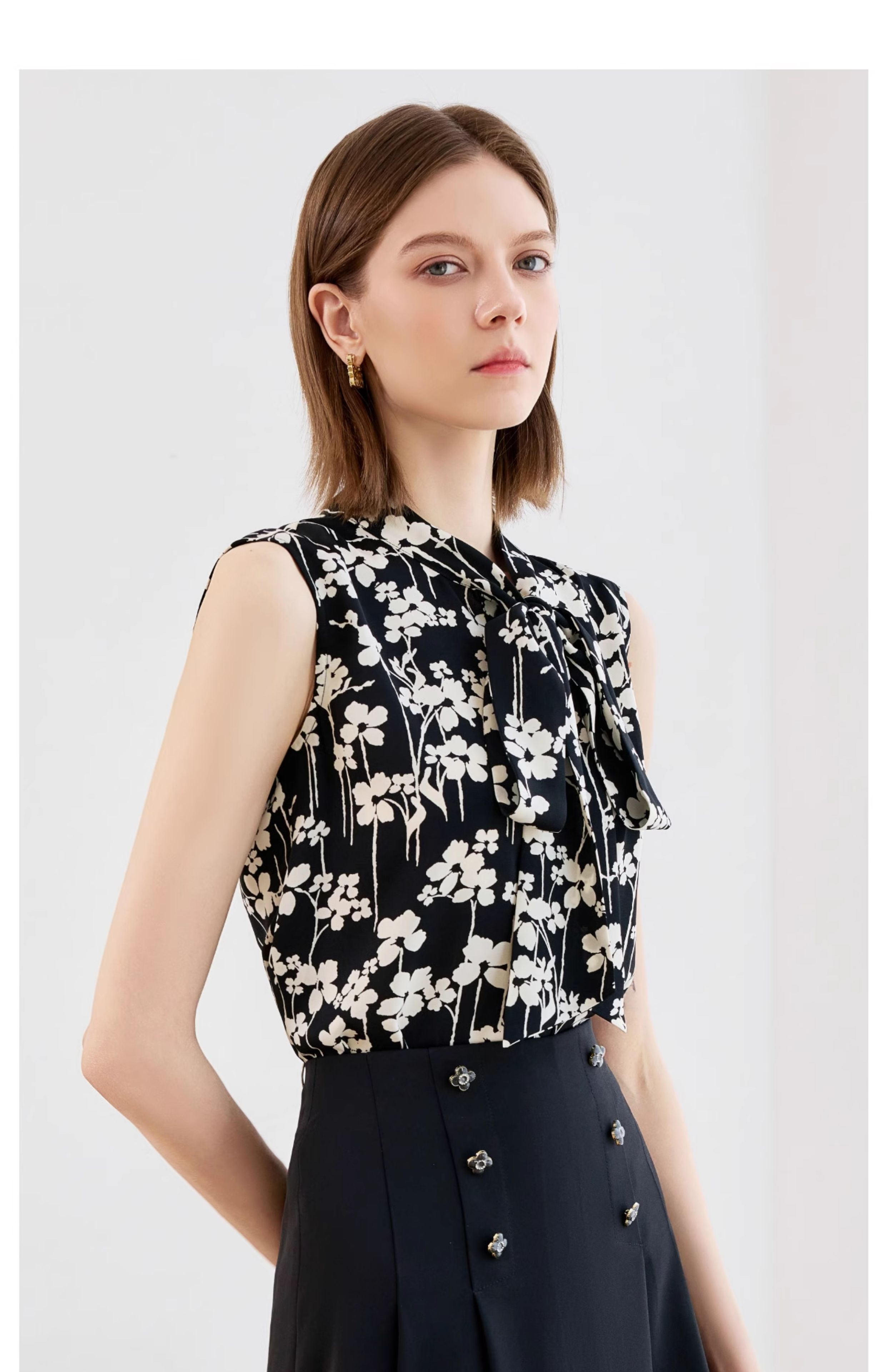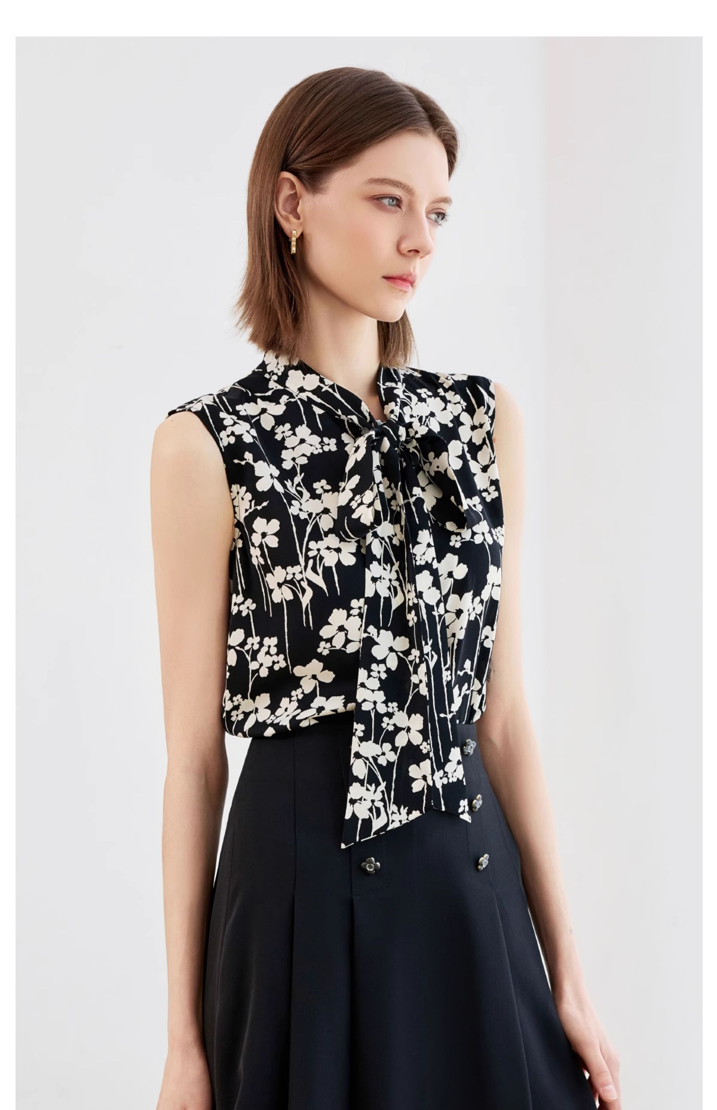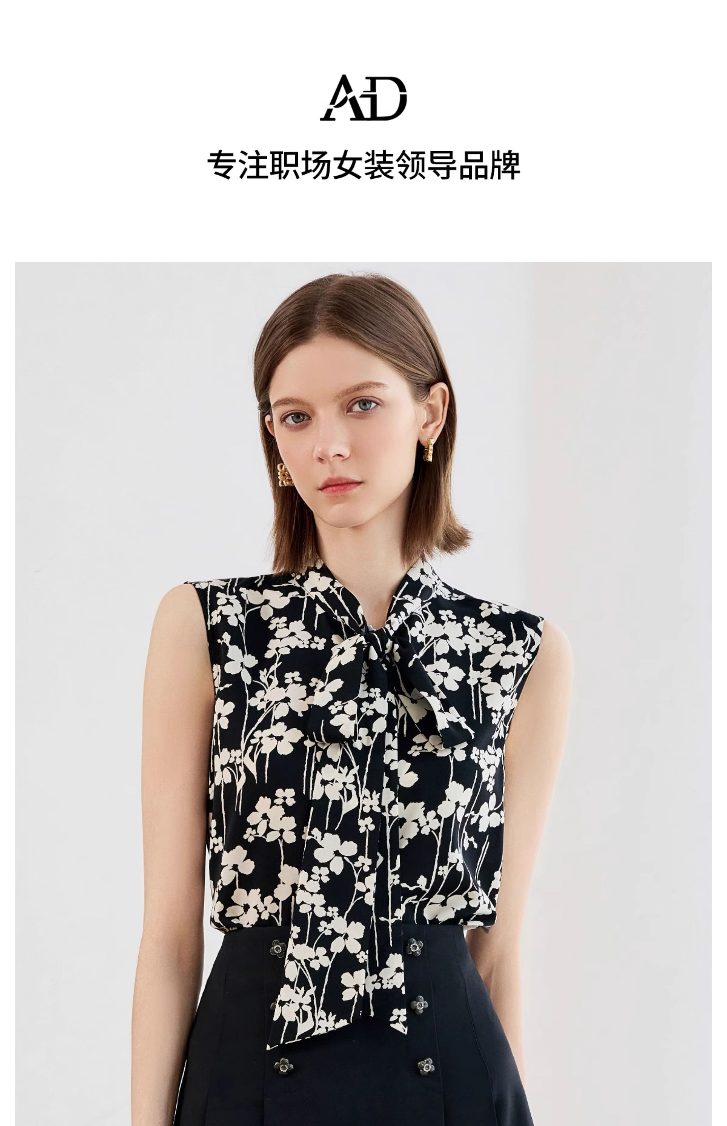 AD气质雪纺衬衣2025夏装新款女装时尚洋气撞色印花无袖套头衬衫