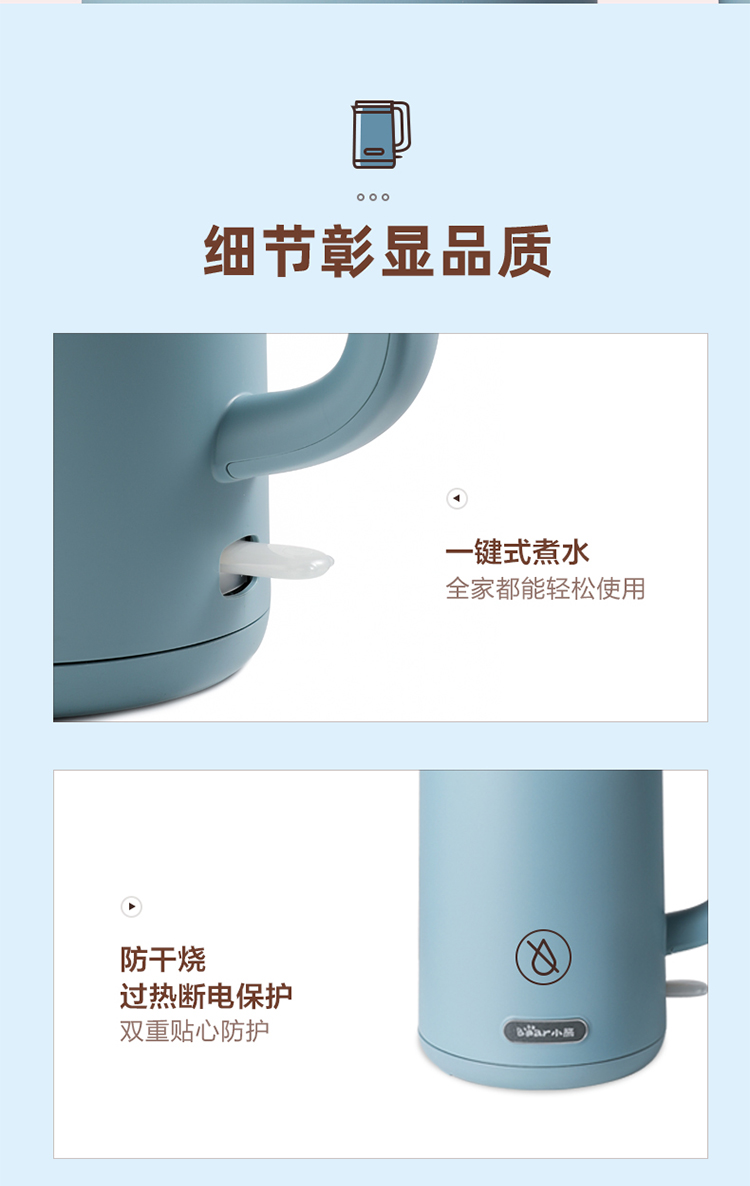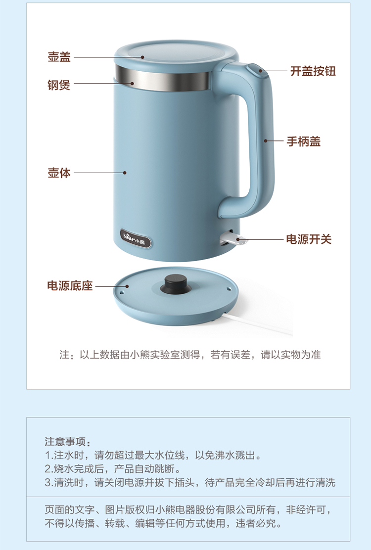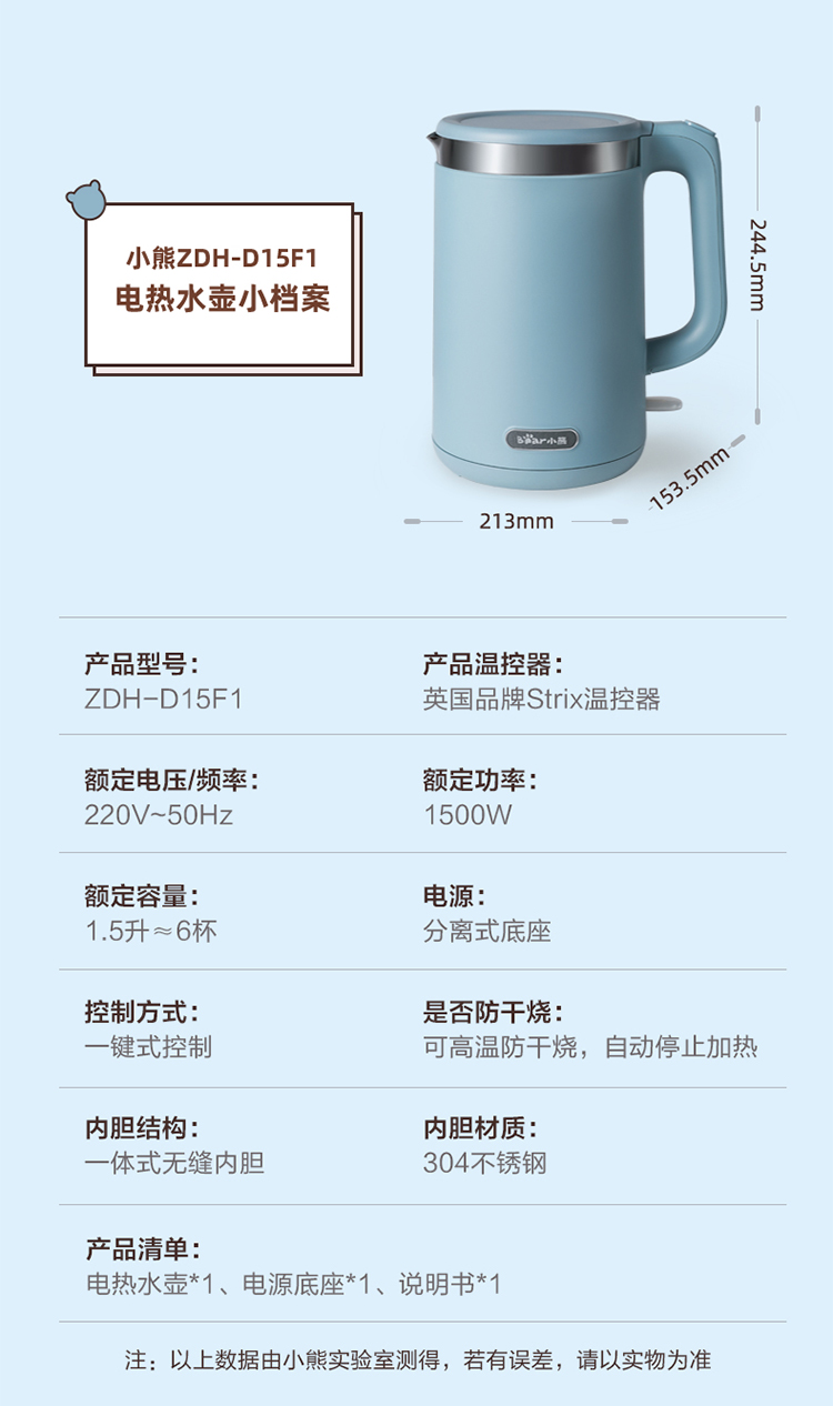 小熊电热水壶家用烧水壶全自动保温一体304不锈钢煮开水壶热水壶ZDH-D15F1