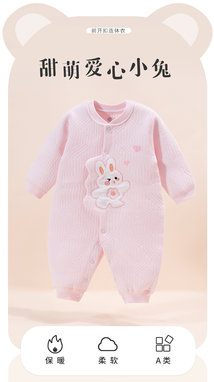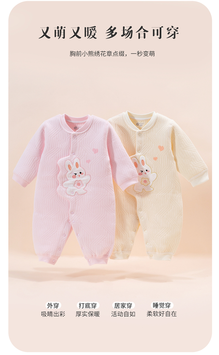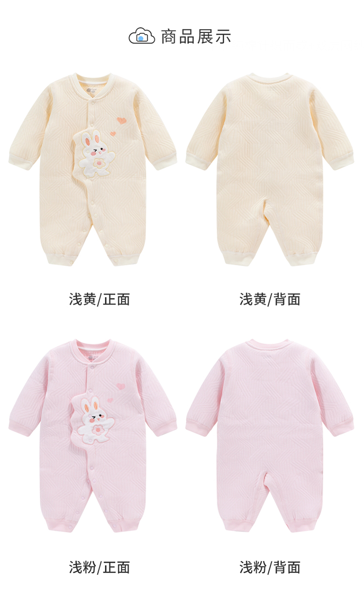 贝贝怡春秋婴儿连体衣新生儿满月百天服男女宝宝夹棉保暖哈衣爬服224L2024