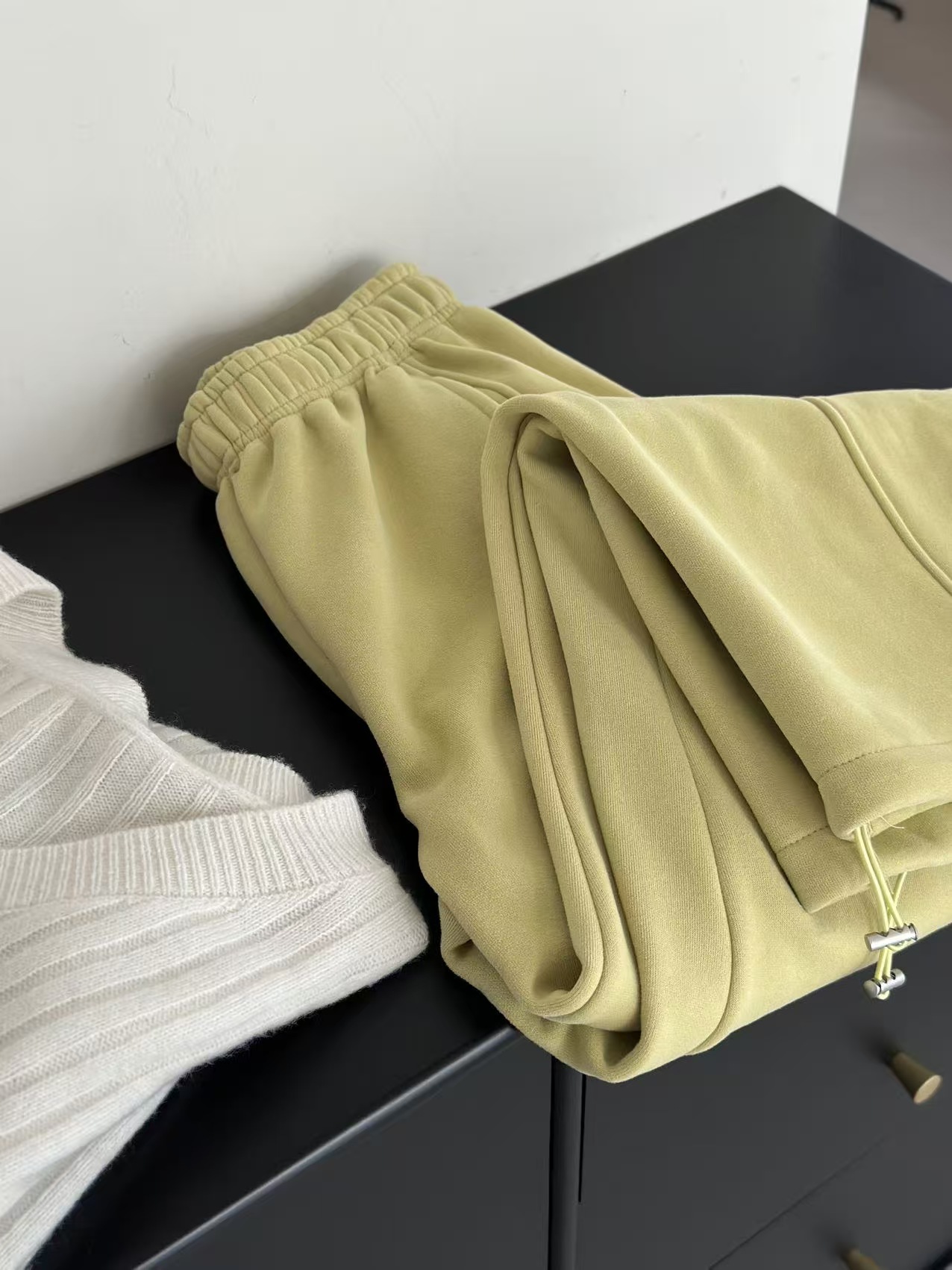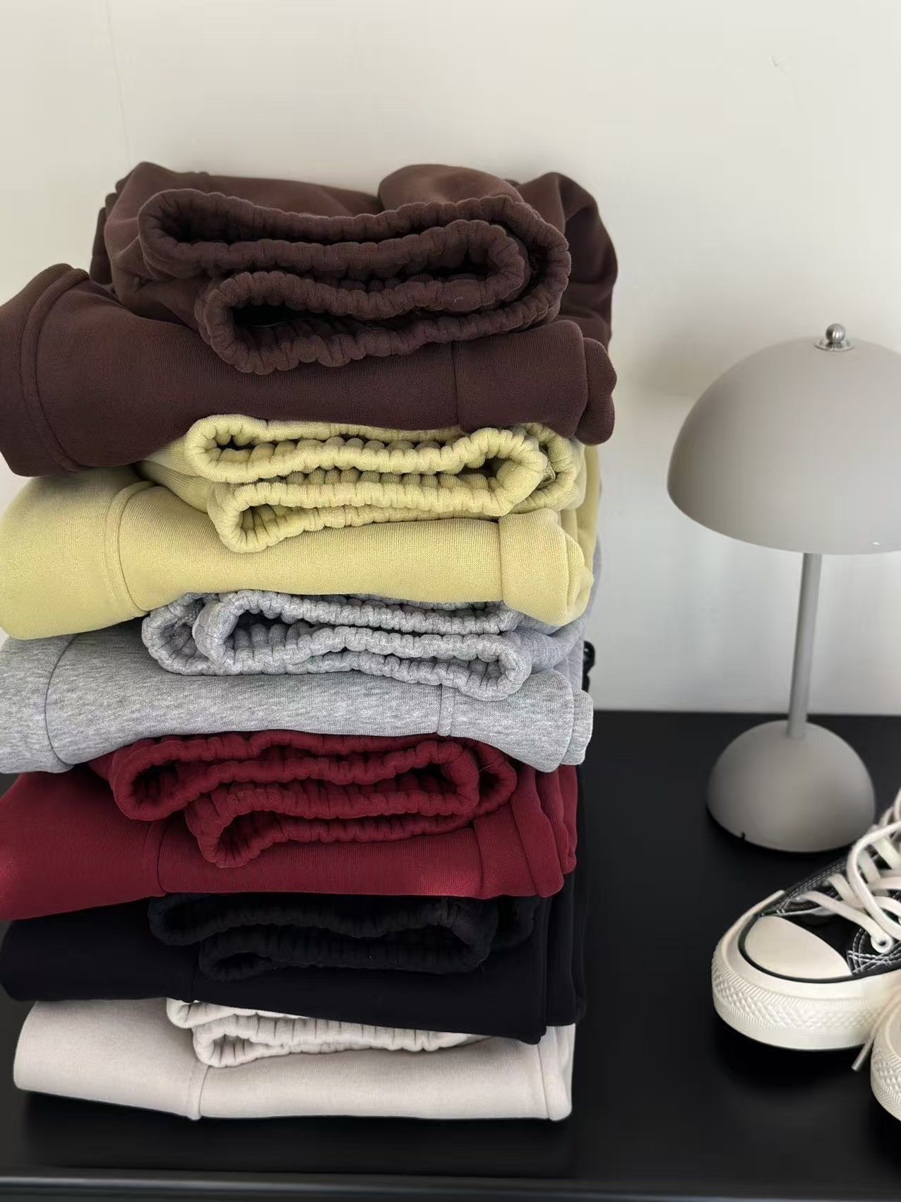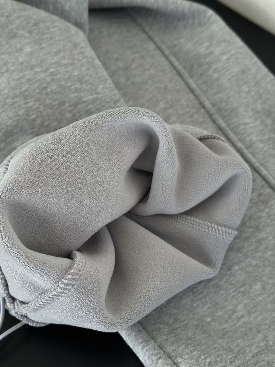 整条裤子将近一斤,厚度在同等克重下是普通卫裤的1.5倍,双倍保暖,