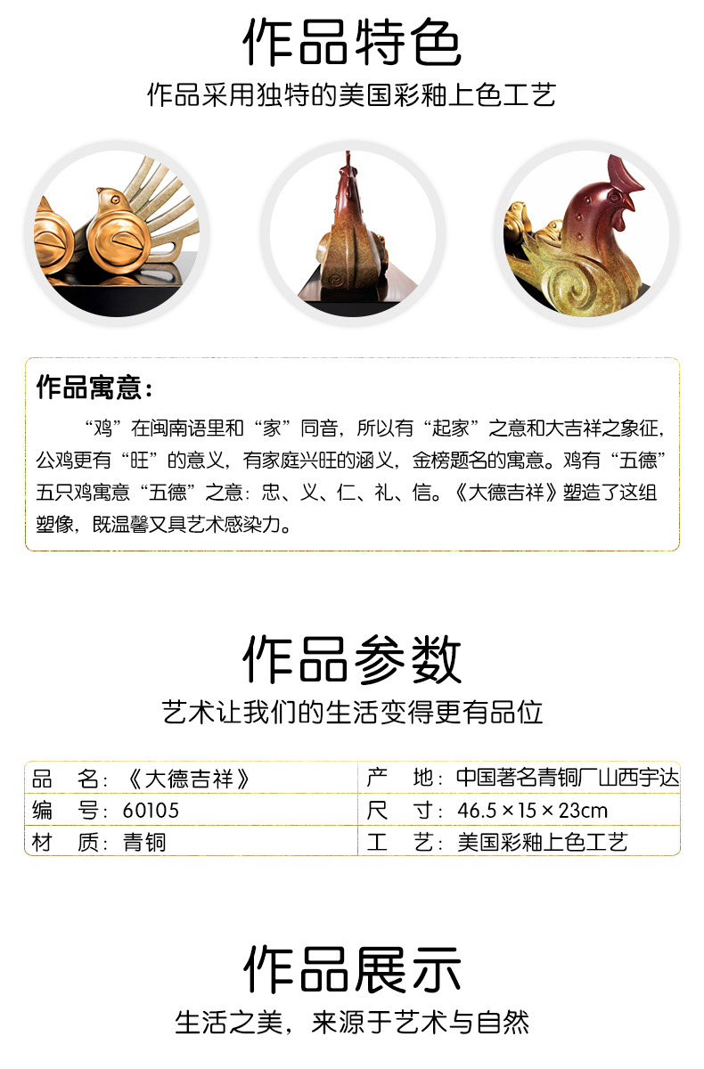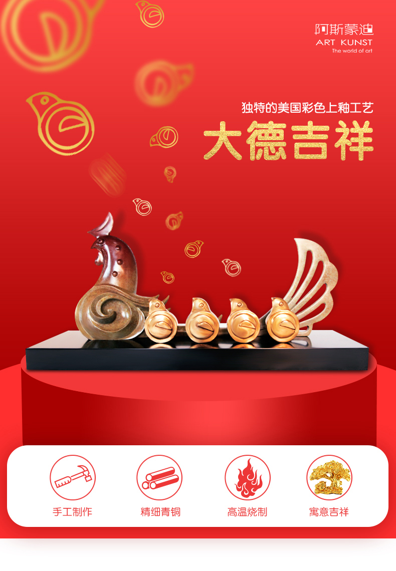【6F】阿斯蒙迪生肖鸡纯铜摆件母子艺术品办公桌面摆件创意礼品生日礼品