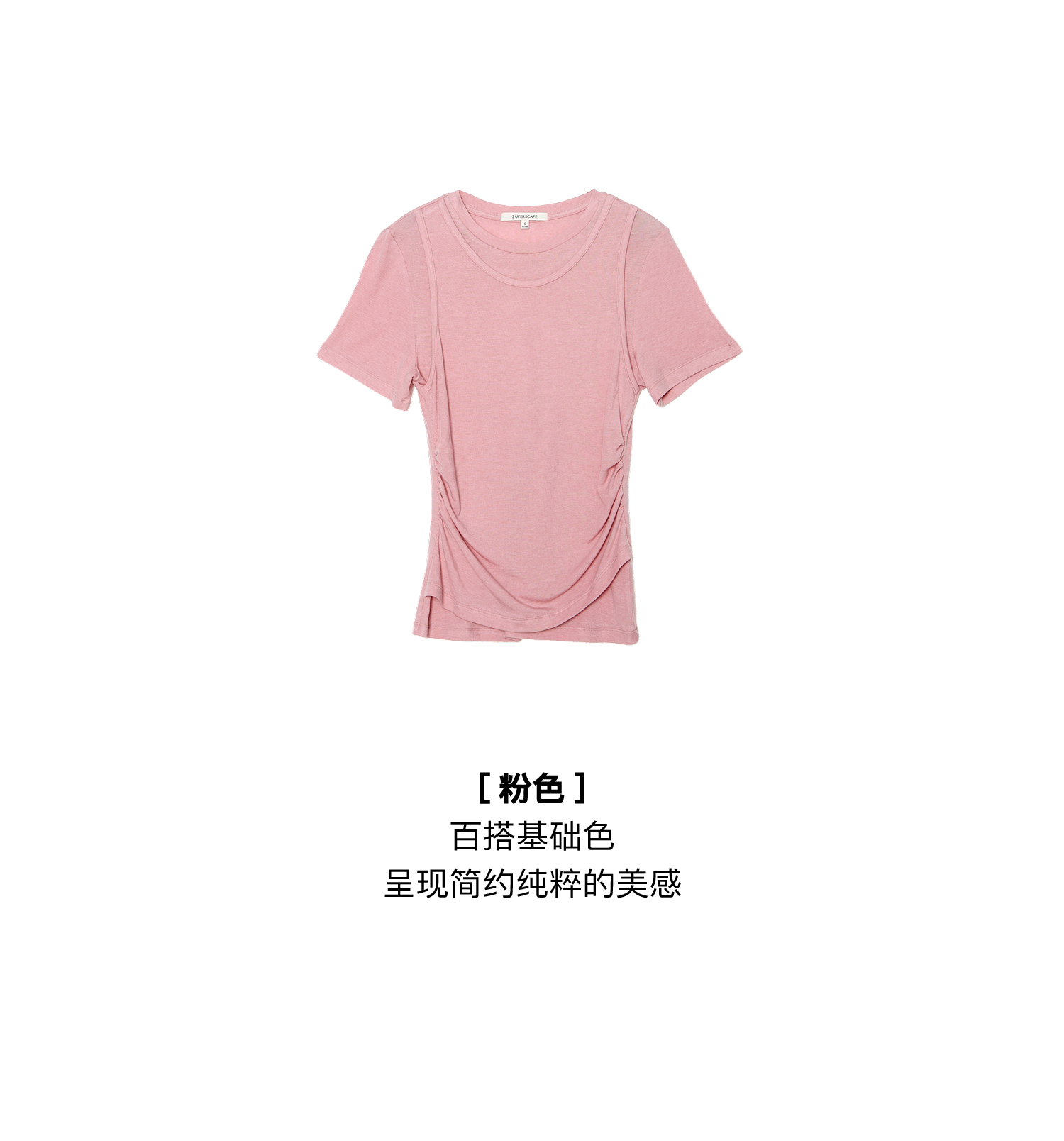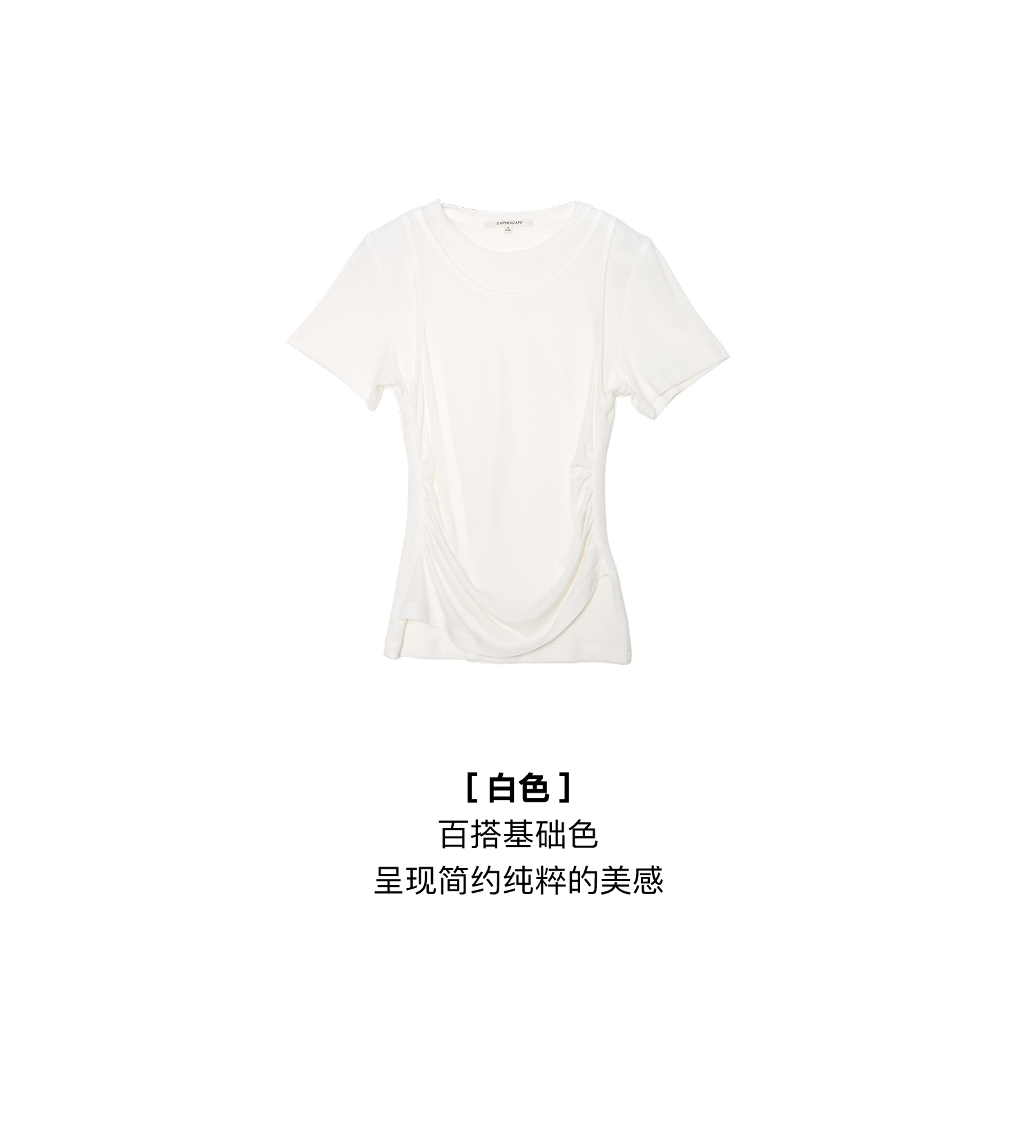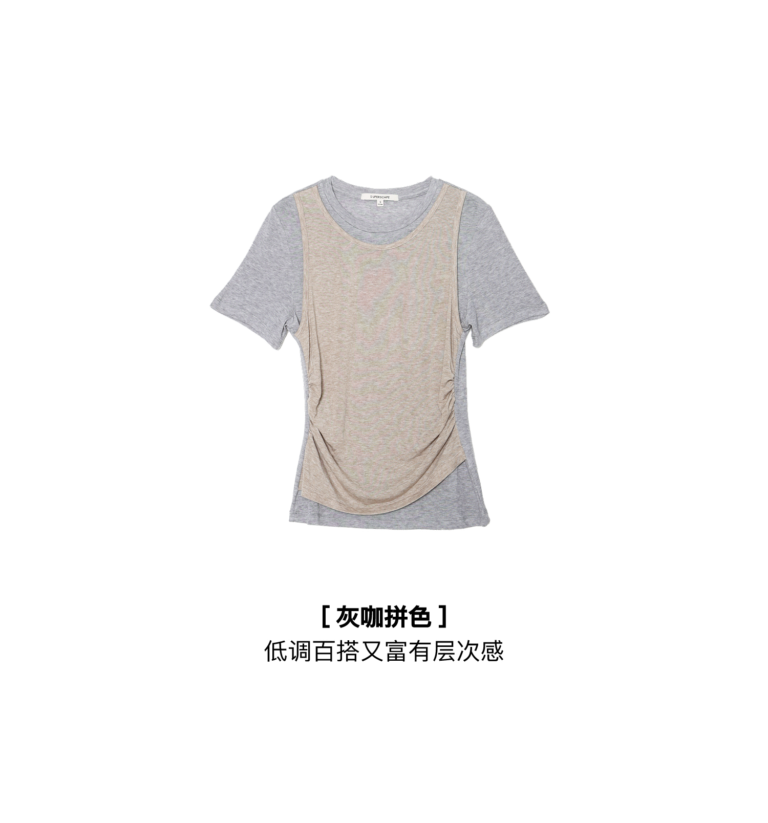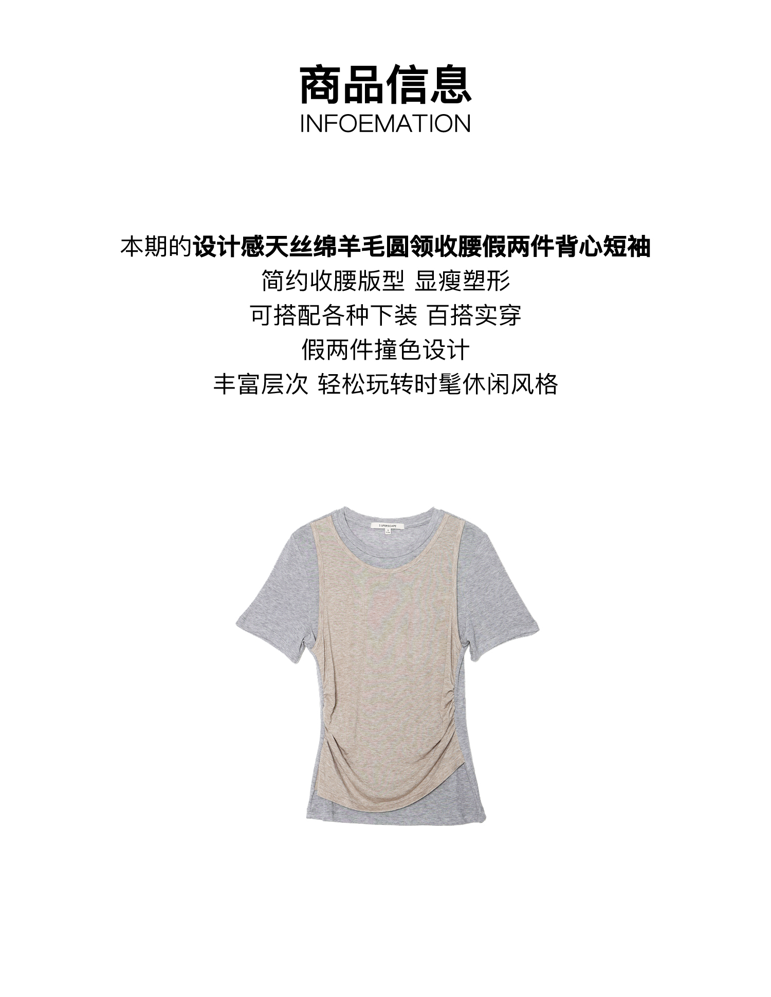 素舶 莱赛尔羊毛混纺柔软透气显瘦假两件短袖T恤SUPERSCAPE