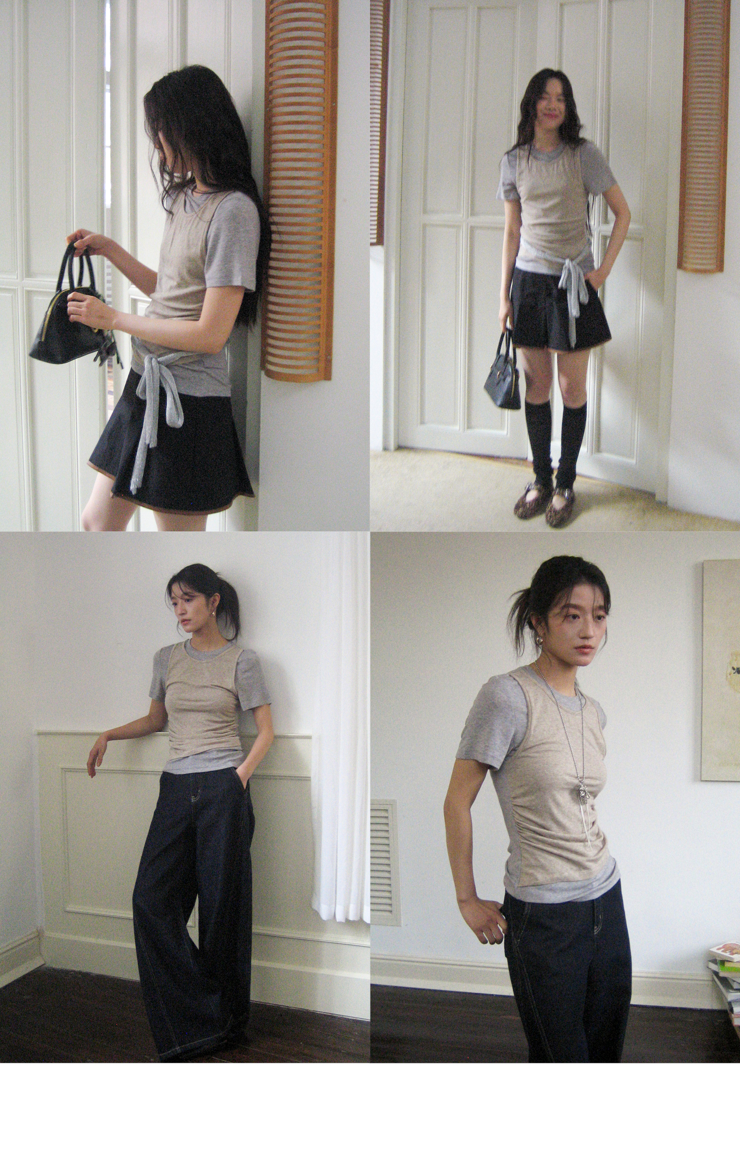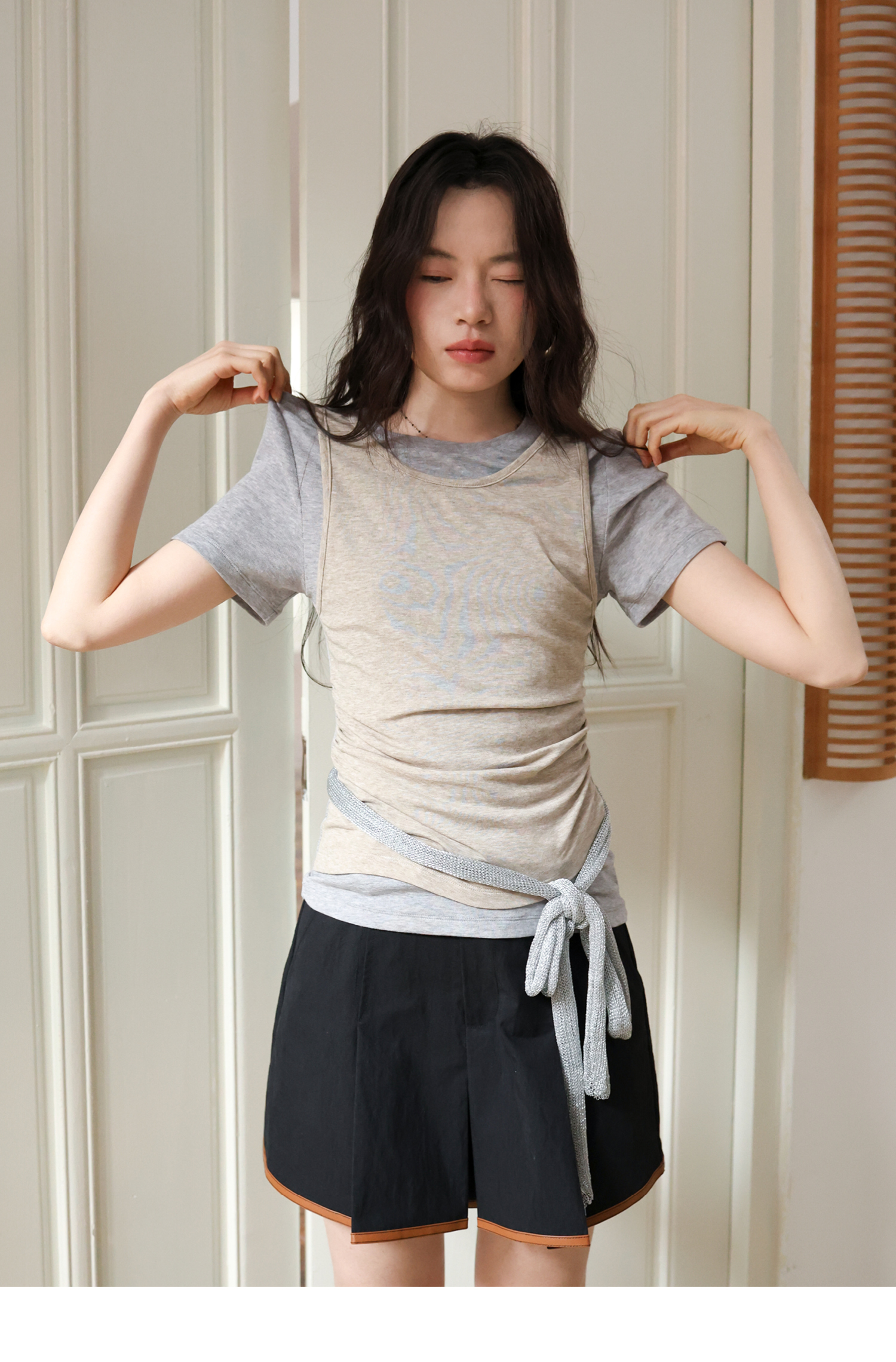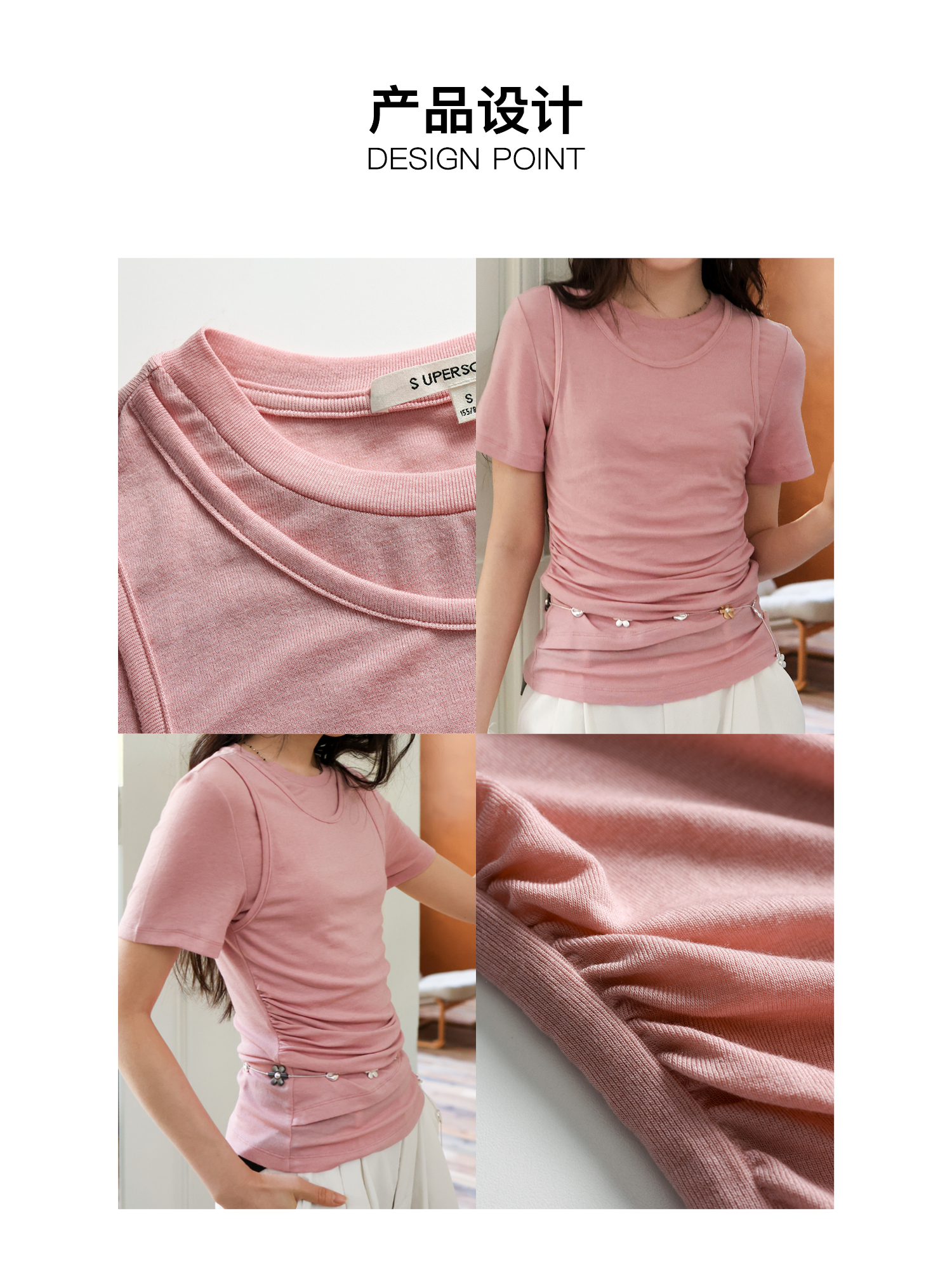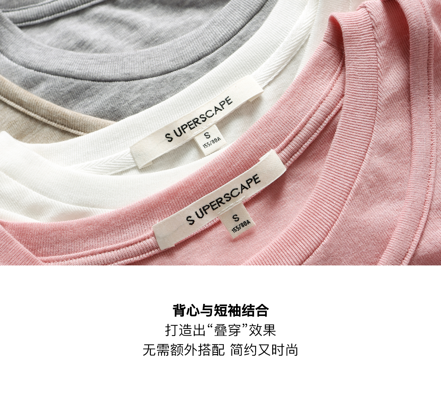素舶 莱赛尔羊毛混纺柔软透气显瘦假两件短袖T恤SUPERSCAPE