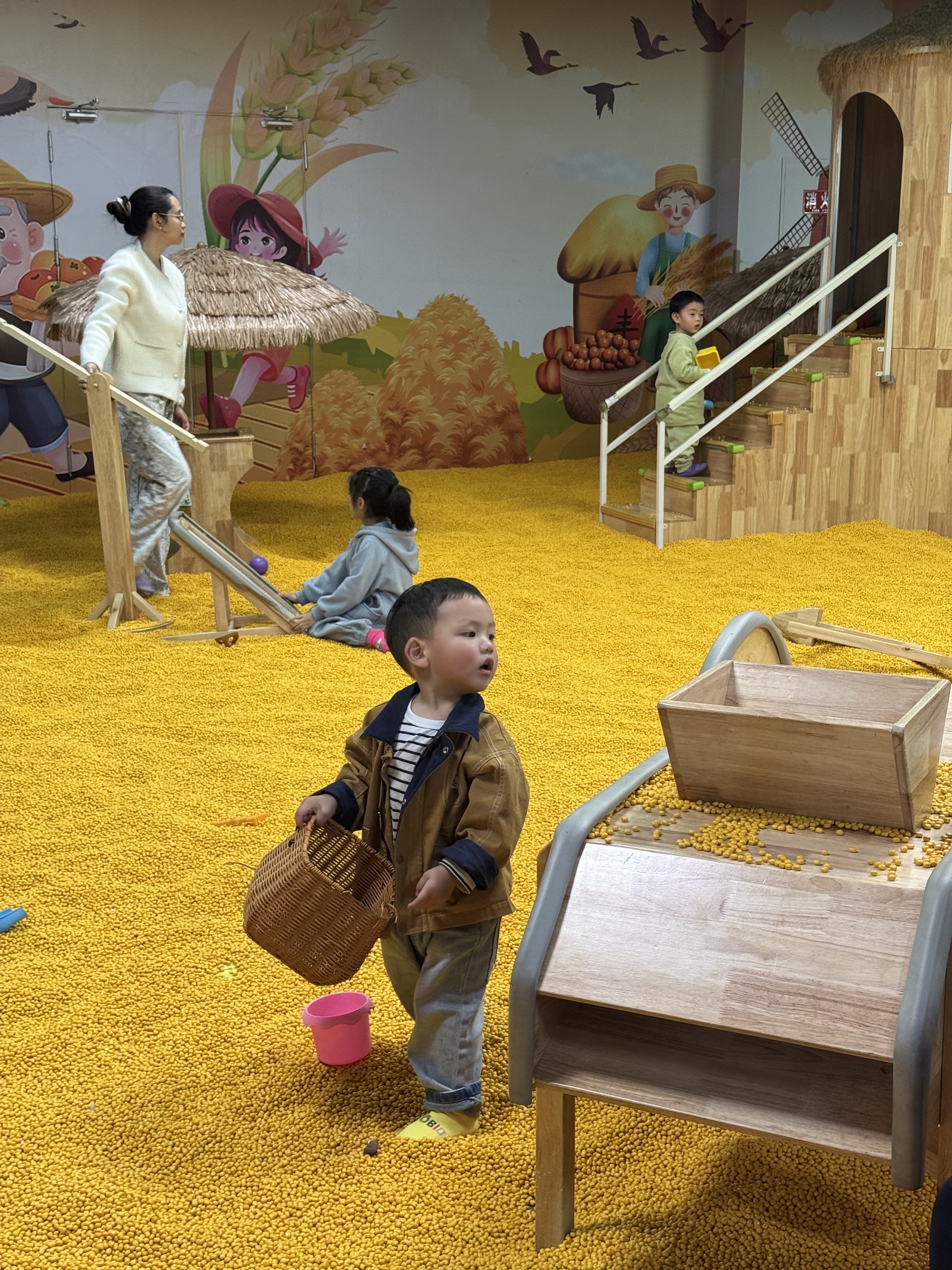 宝贝们可以化身小小农夫,提篮装车、探索田埂,