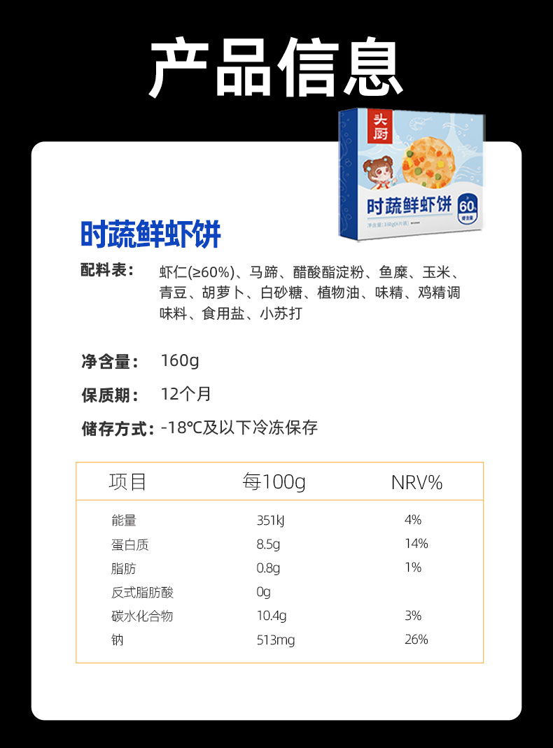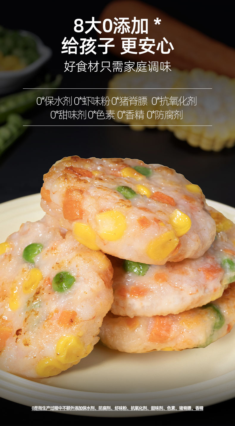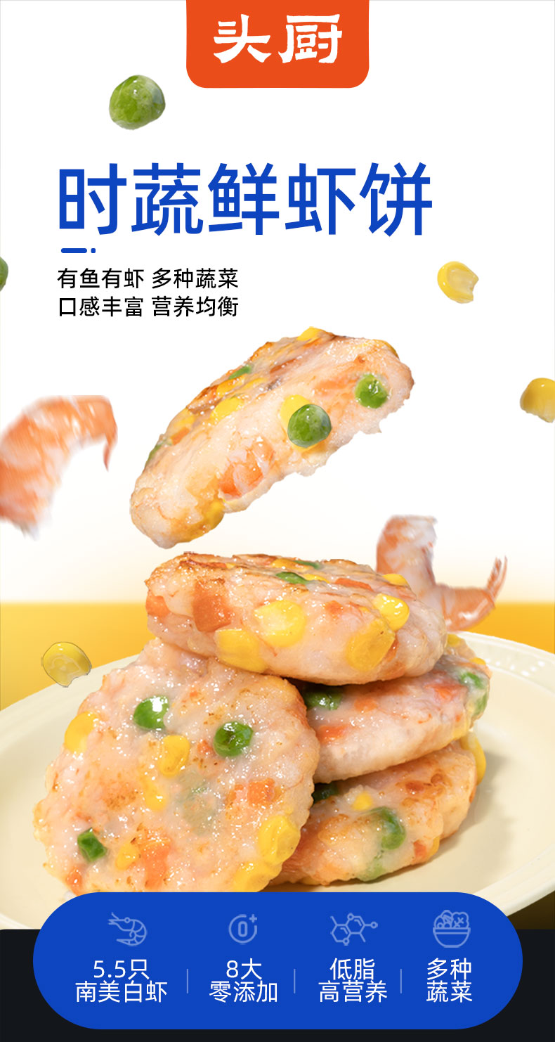 【头厨系列 时蔬鲜虾饼】口感丰富 肉质鲜甜 紧致q弹 低脂高营养 0添加 小孩放心吃