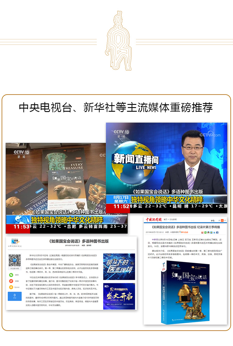 《如果国宝会说话》的同名系列图书,旨在原汁原味呈现纪录片的精彩图案和优美文案之外,还拓展了广度和深度,带领读者实现上下八千年、纵横两万里的文物纵览,能对基于文物的中华文明建立印象,同时又能深入了解某件具体文物的信息。本套书充分展现文物内涵以及历史背景,带领读者深入领略中国文物风采和中华文化精粹,具有很强的人文性、知识性和艺术性。适合读者沉心静气,细细品味中华民族的“根”与“魂”。