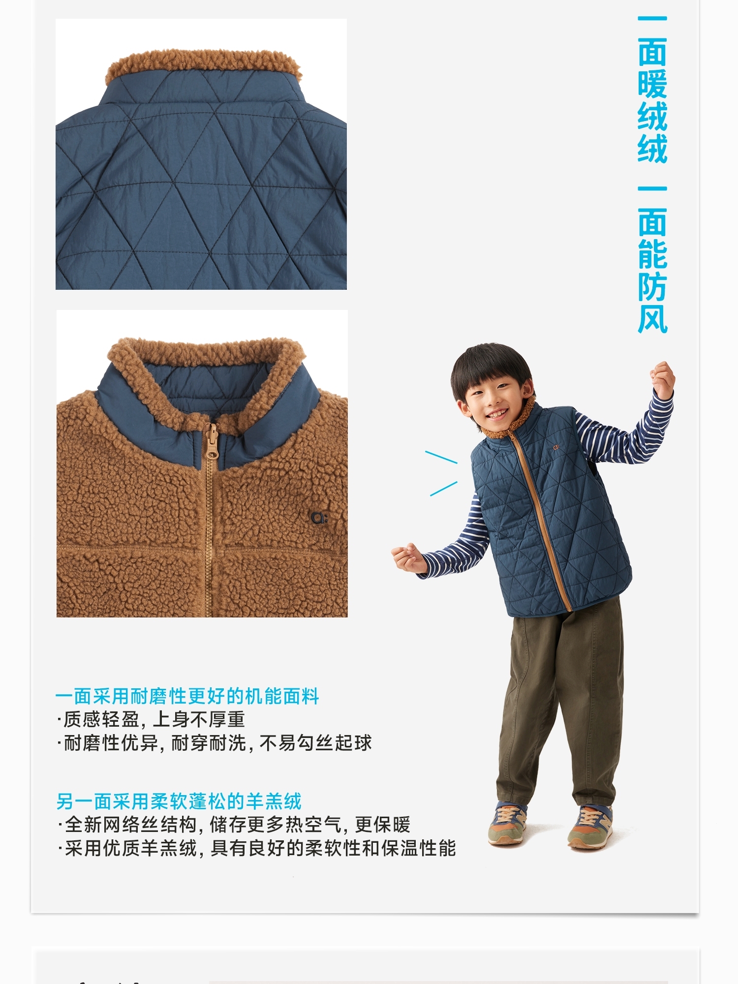 【秋Vol.5】幼岚童装羊羔绒两面穿马甲轻盈保暖耐穿24年秋新款儿童男女童马甲ZY