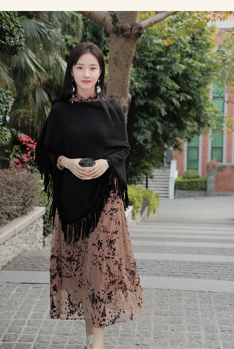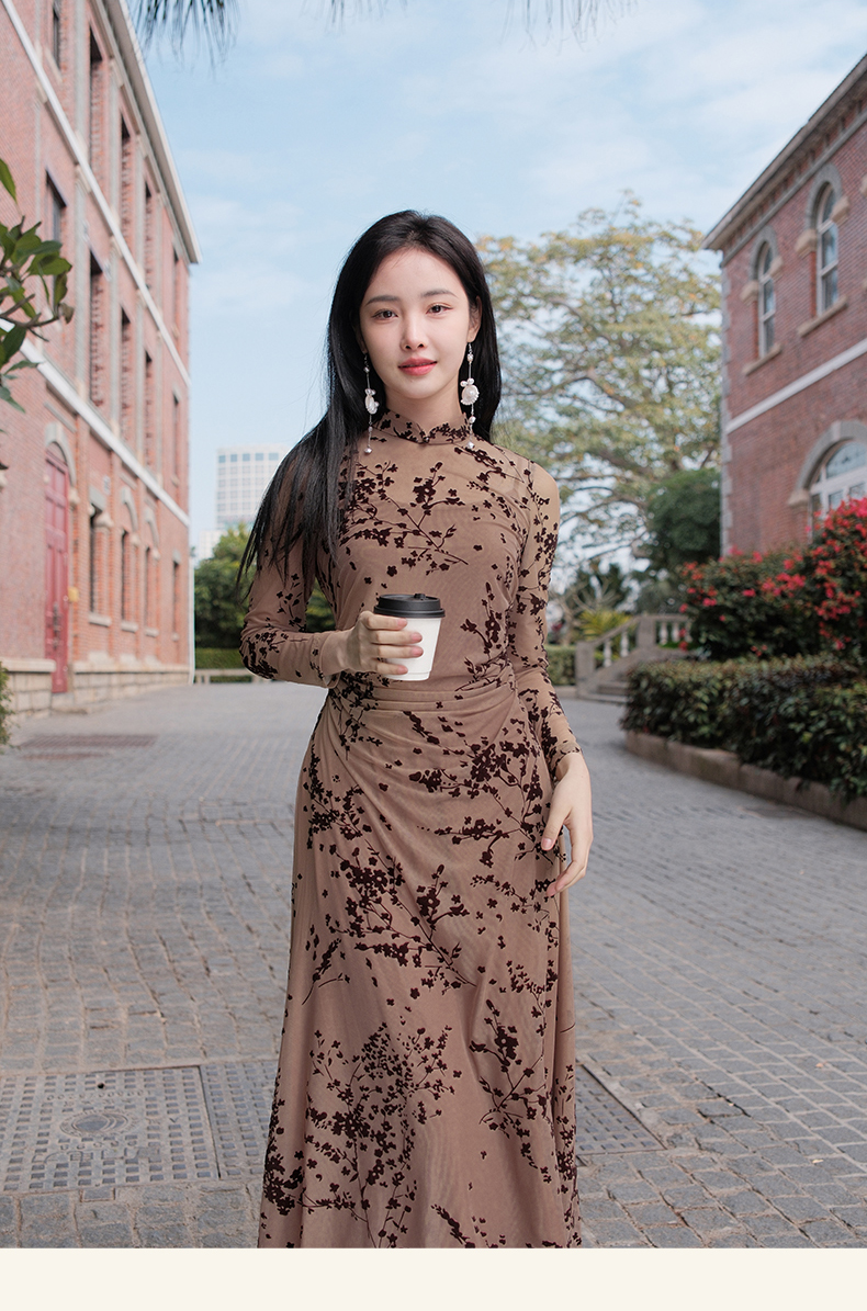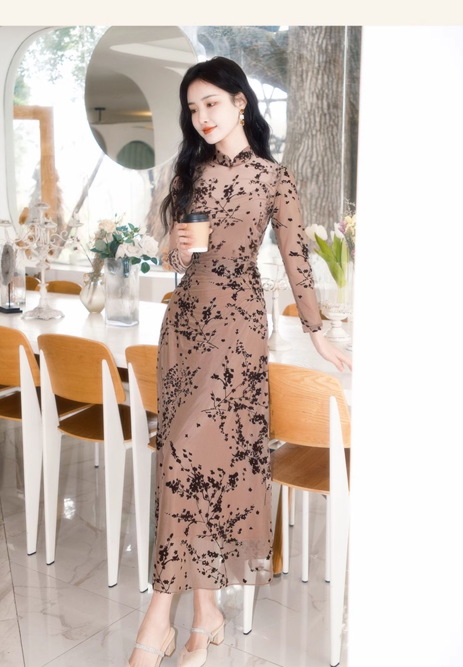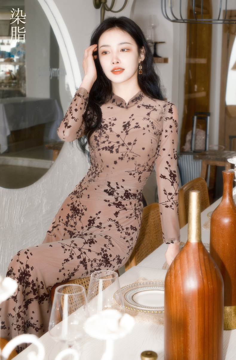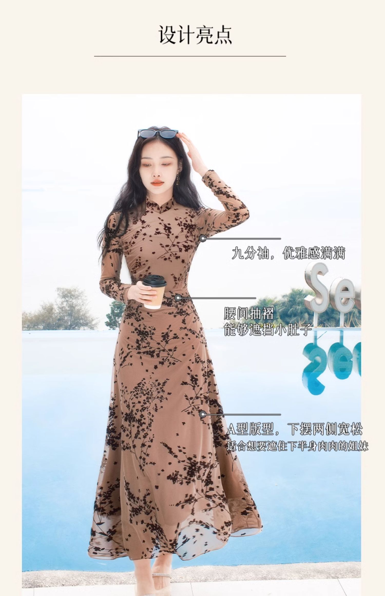 上海逸红颜染脂2025年春装新品弹力针织植绒旗袍改良版连衣裙女