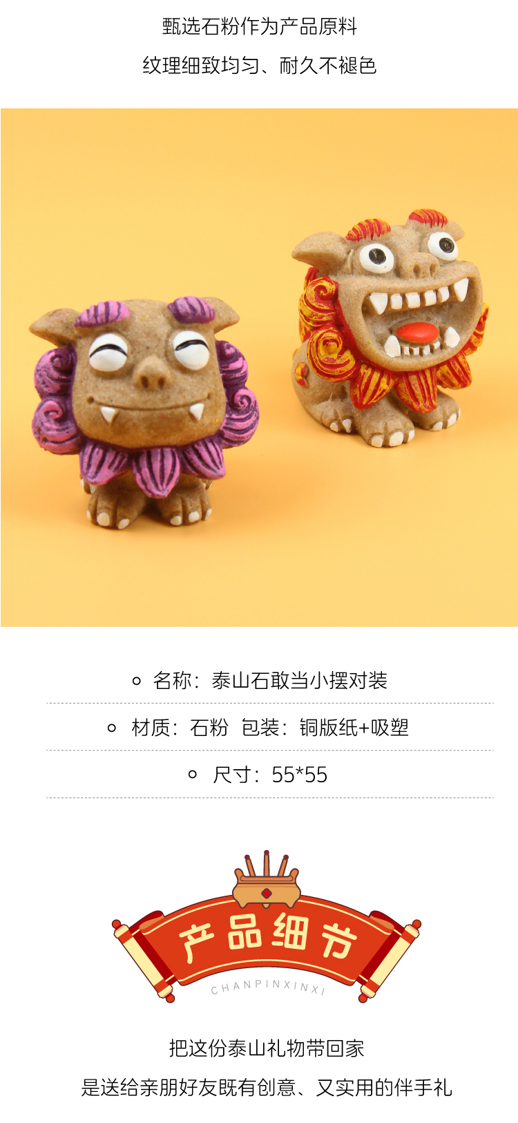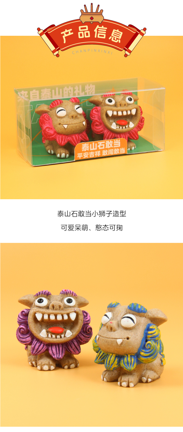 遇石记泰山石敢当国风摆件事事如意小狮子车摆一对