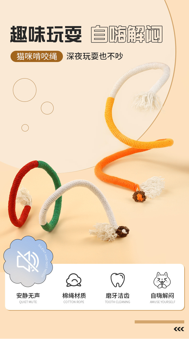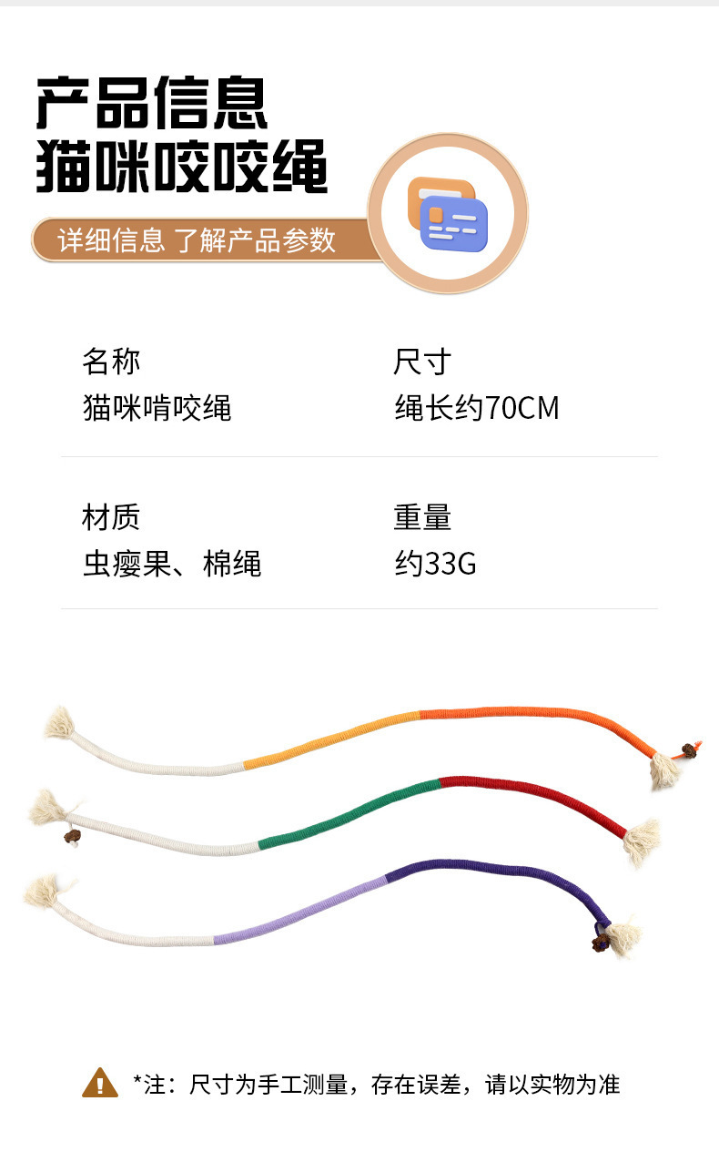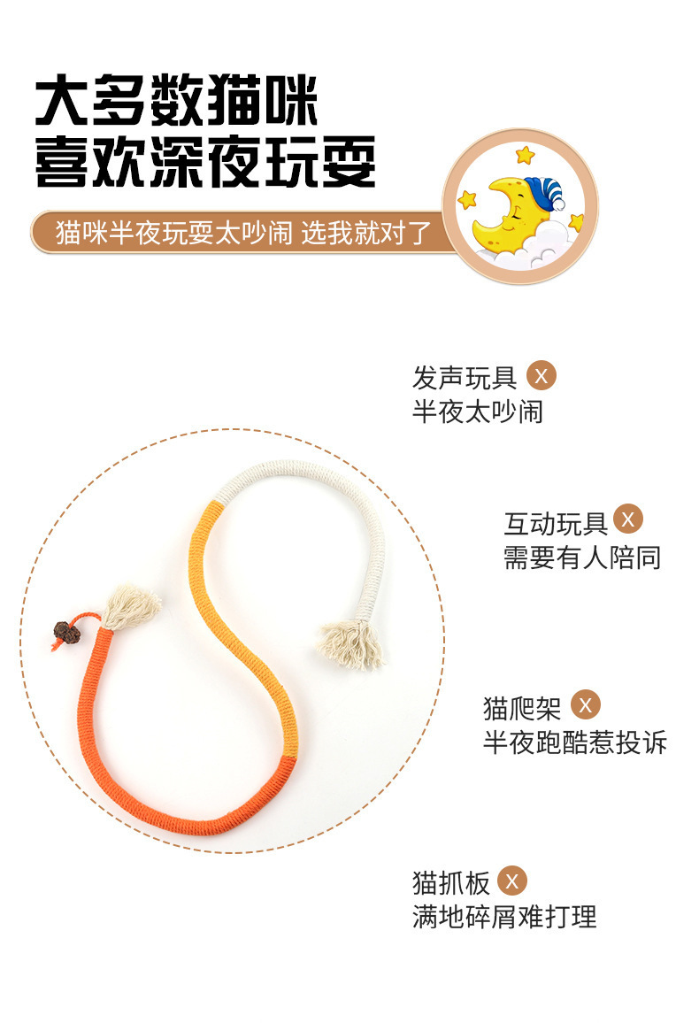 严选【猫咪咬咬绳万事橙大号70cm)自嗨解闷磨牙绳幼猫逗猫棒宠物玩具绳子1条