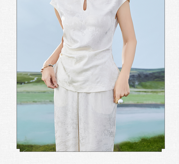 FUYAO扶摇 夏装搭配一整套高级感醋酸衬衫配阔腿裤新中式两件套女
