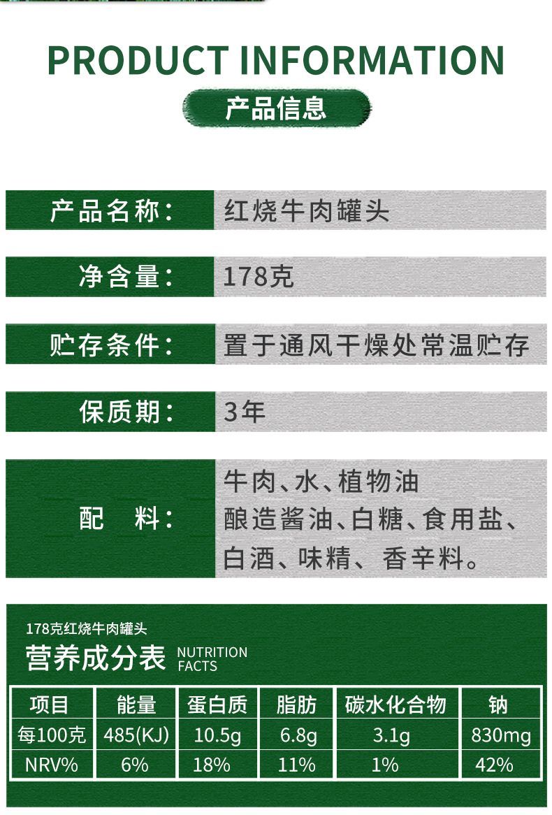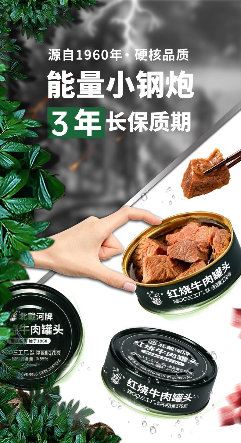 北戴河178g红烧牛肉罐头家庭应急长期储备食品